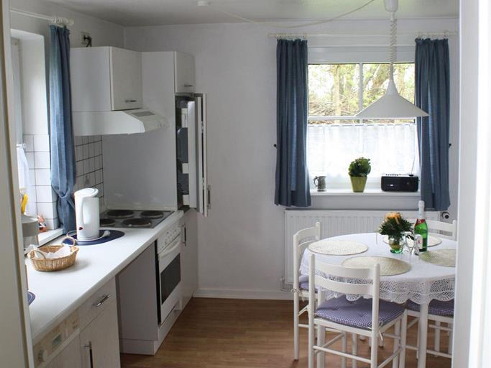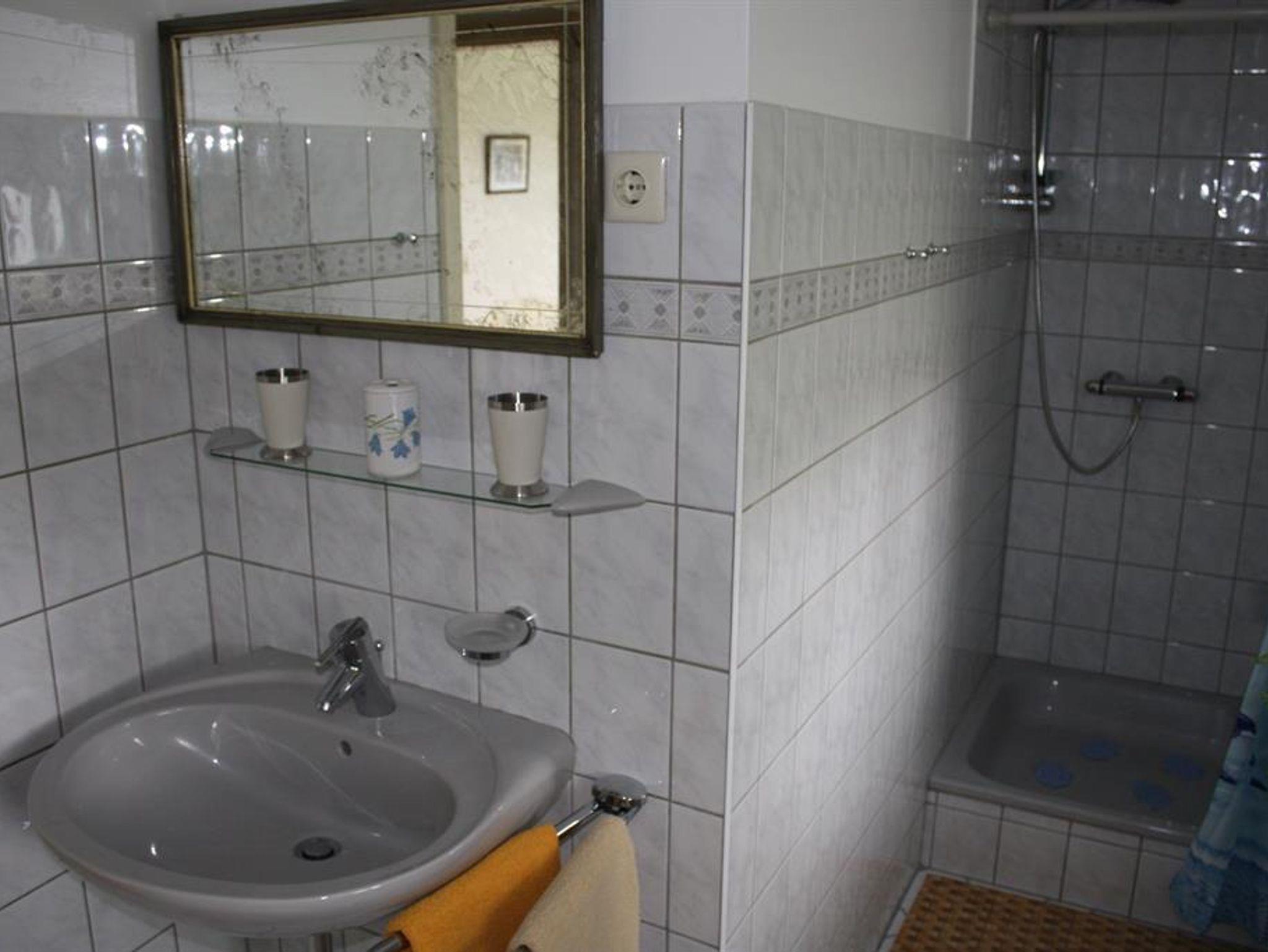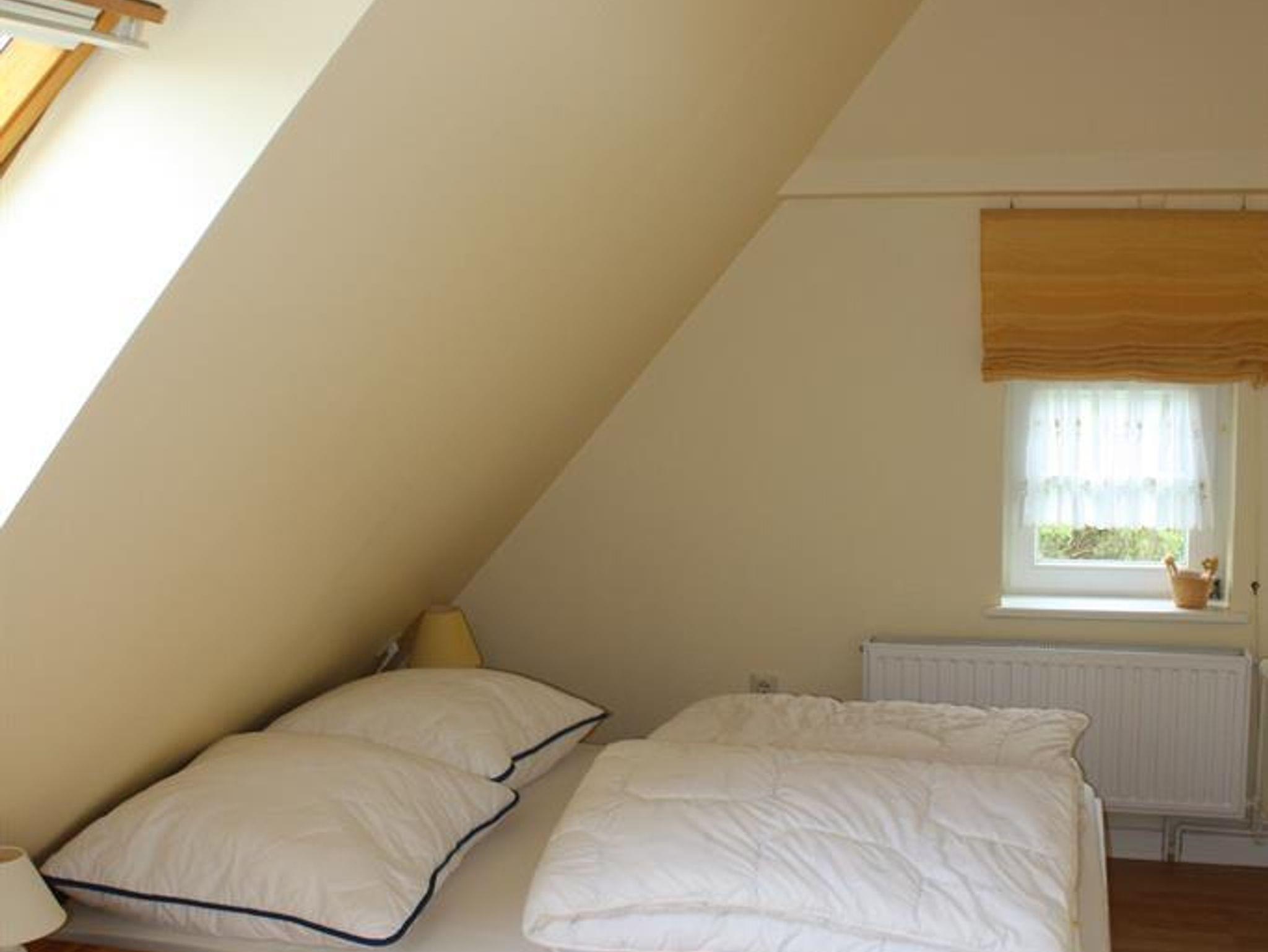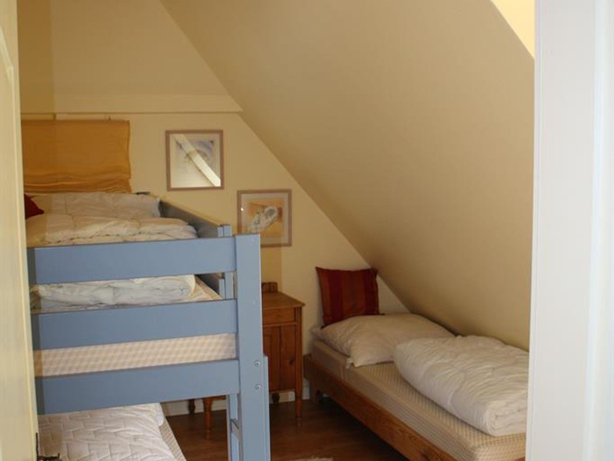 Liebevoll und komfortabel eingerichtete Ferienwohnung mit einer Größe von 85 qm, für bis zu 5 Personen. Wohnraum mit Sitzecke und SAT-TV. Einbauküche mit 4-Plattenherd und Geschirrspüler, Duschbad mit WC. Im Obergeschoss befinden sich ein Schlafraum mit Doppelbett und ein Schlafraum mit Etagebett und einem Einzelbett.