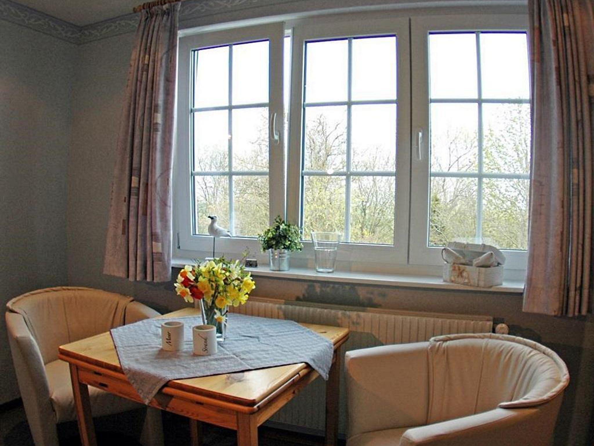 Die Wohnung Heisternest für 2 Personen befindet sich im Obergeschoß und ist ca. 35 qm groß. Der Wohnraum ist ausgestattet mit 2 Sesseln und einem Tisch, Flachbild-TV und Radio sowie großer Schlafnische mit einem Doppelbett. Die separate Küche beinhaltet Toaster, Kaffeemaschine, Mixer, Mikrowelle sowie Herd mit Backofen und Ceranfeld. Die Wohnung verfügt über ein neues Duschbad. Zum Sonnen und Faulenzen gibt es separate, idyllisch gelegene Terrassen mit Strandkörben und Gartenmöbeln im großen, gepflegten Garten.