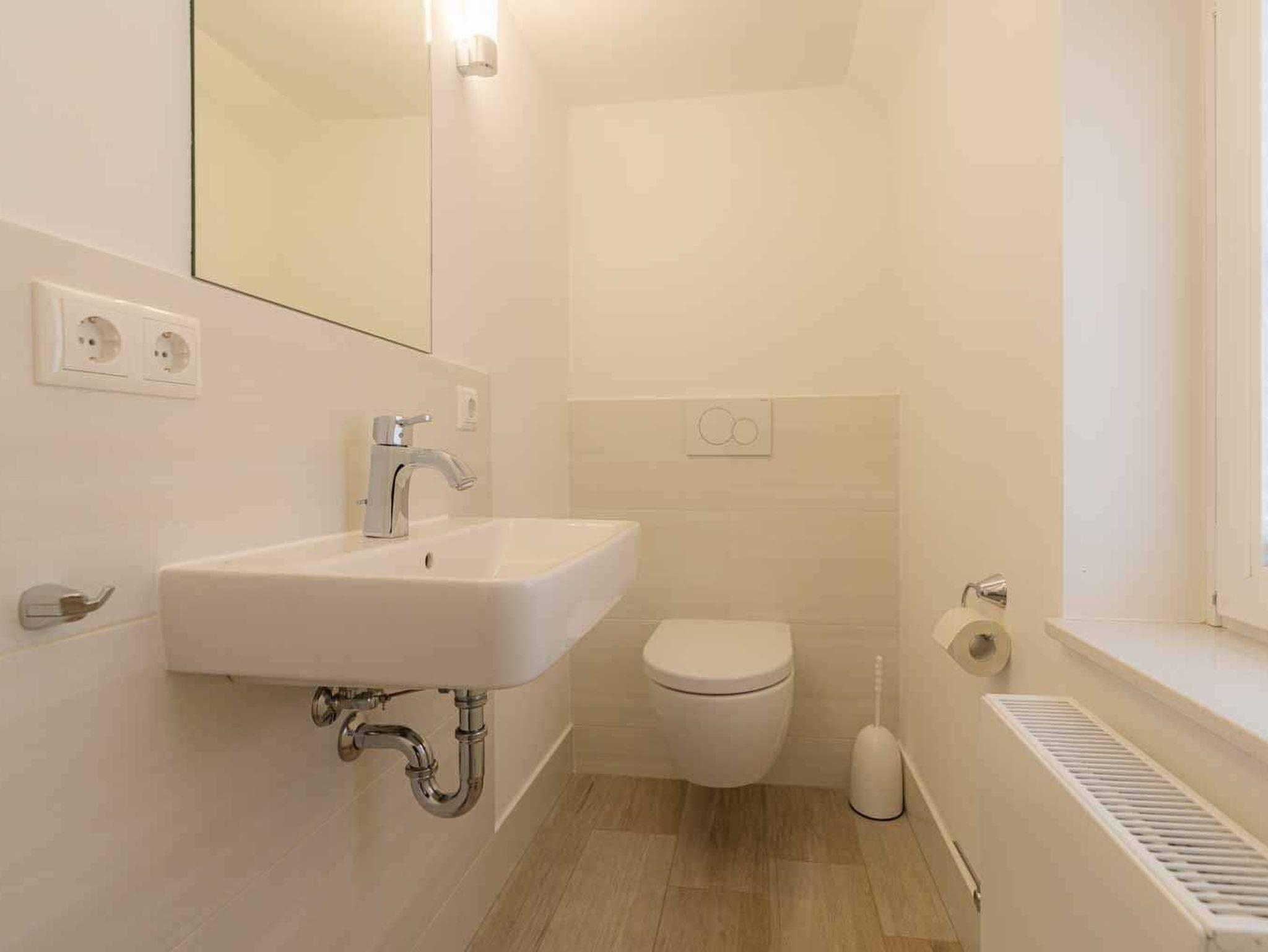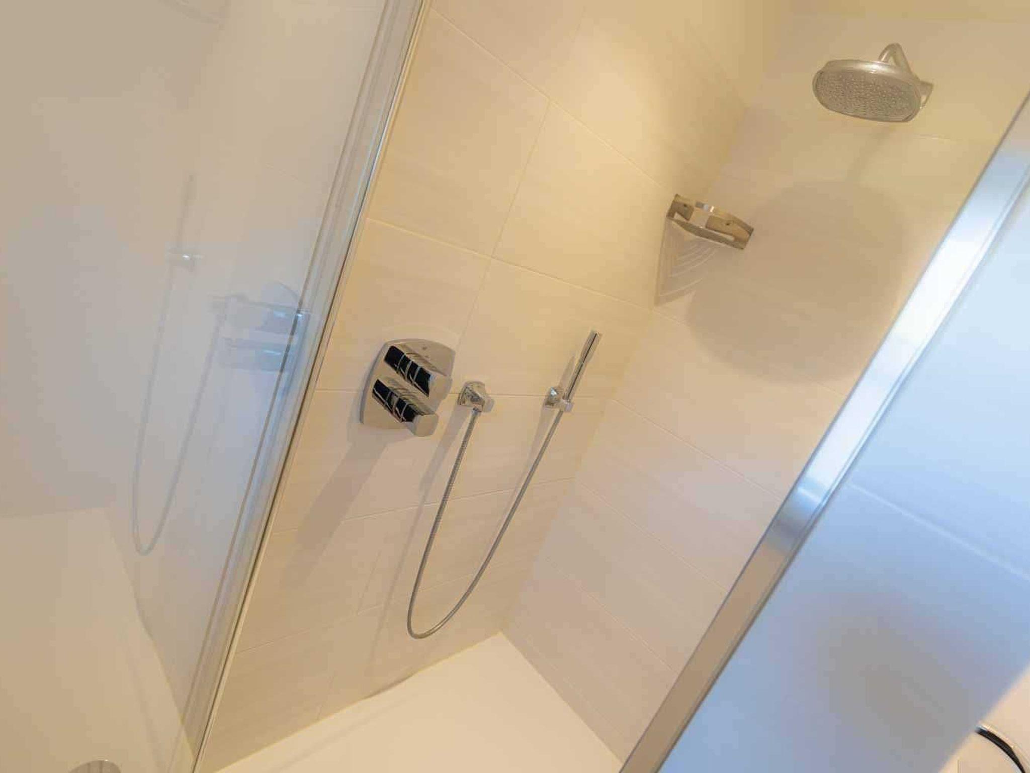 1. Badezimmer (Duschbad) mit Regen-Dusche, WC und Tageslicht.