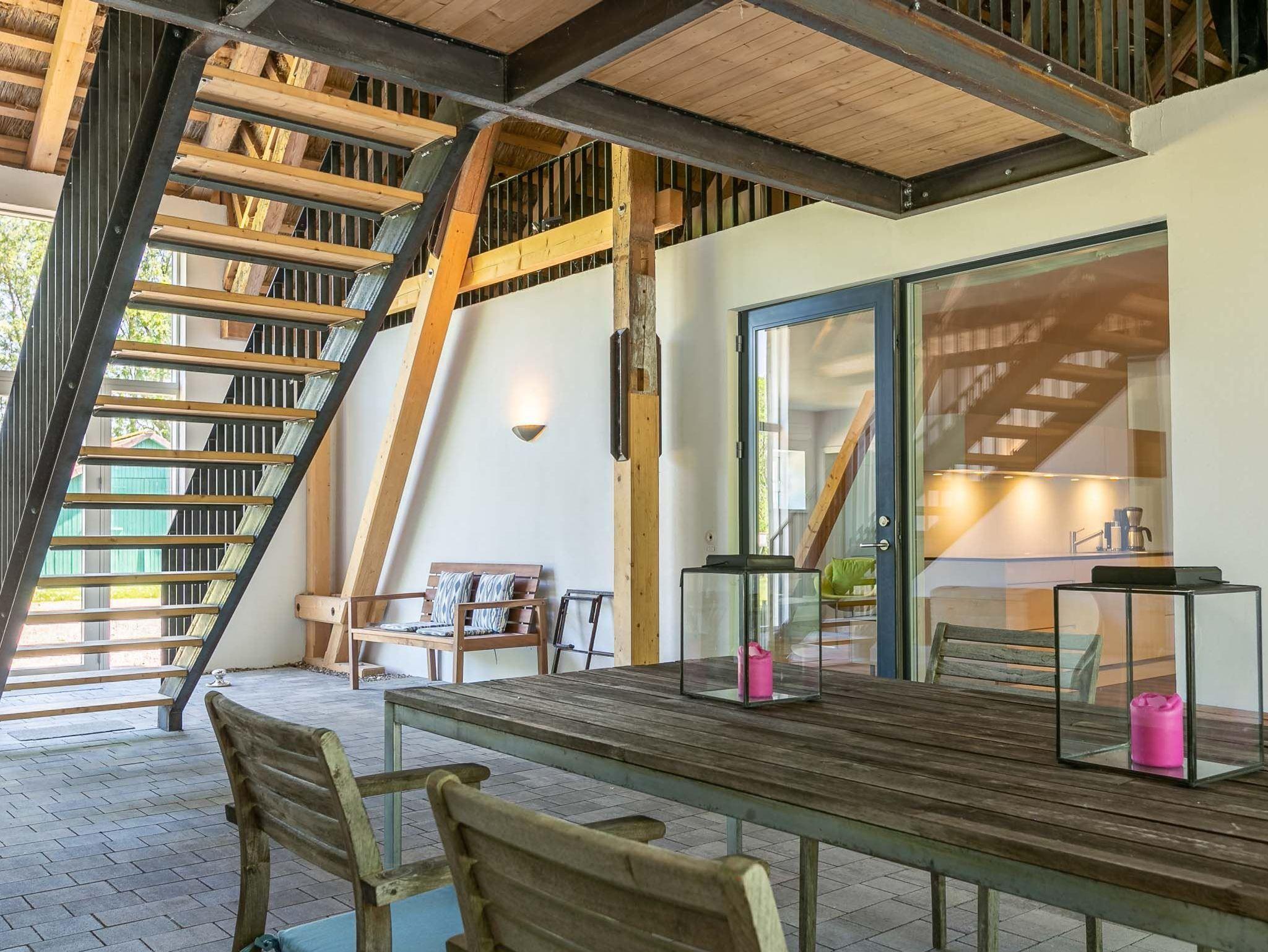 Pkw-Stellplatz, Fahrradschuppen für eBikes und gemeinschaftliche Lohdiele. Kostenloser Kinderhochstuhl vorhanden (in der Lohdiele). Gemeinschaftliche Waschmaschine und Trockner vorhanden. Sonnige, möblierte Gartenterrasse nach Westen mit Strandkorb, Zugang über die Lohdiele. Kostenloses WLAN.