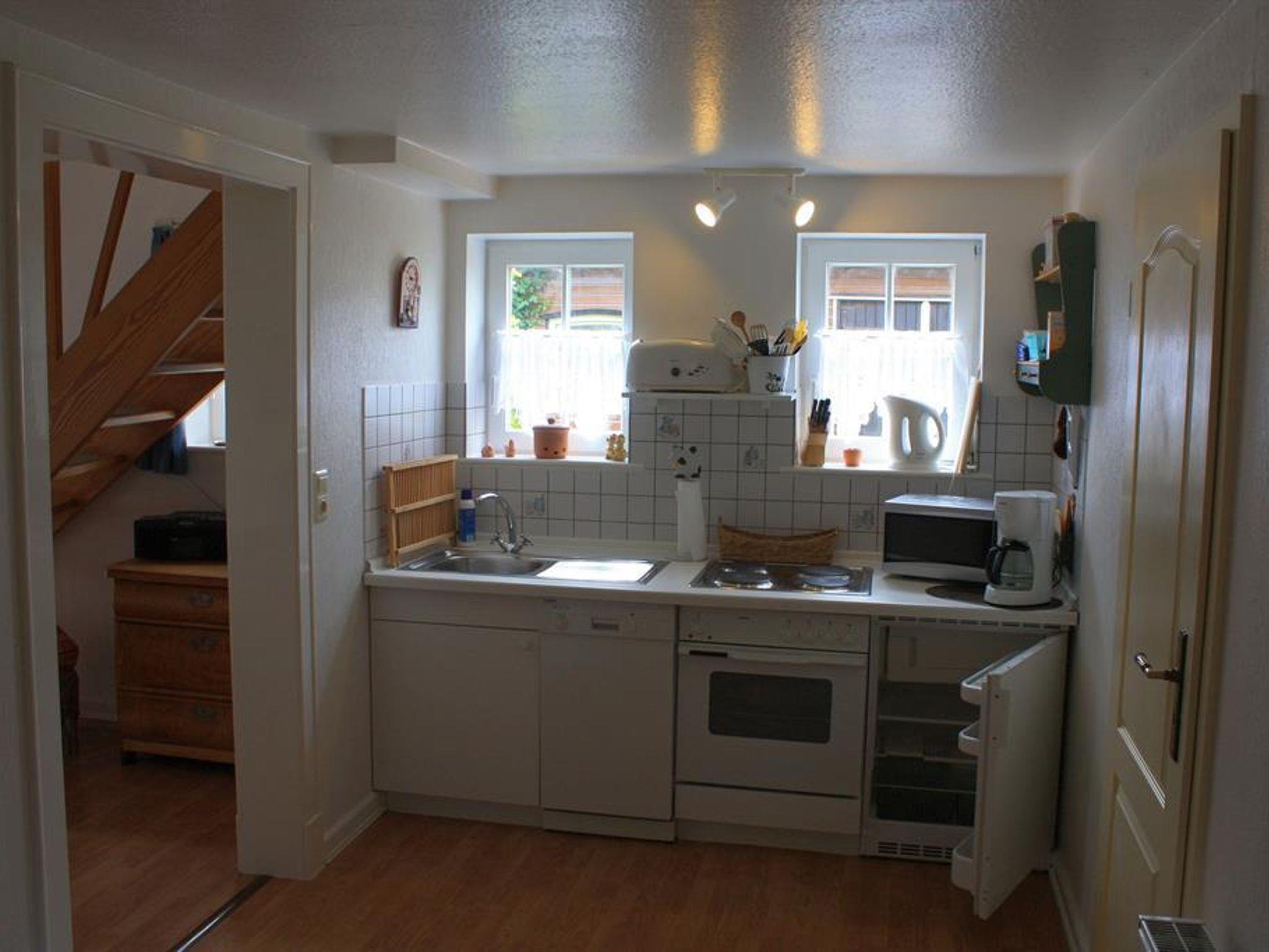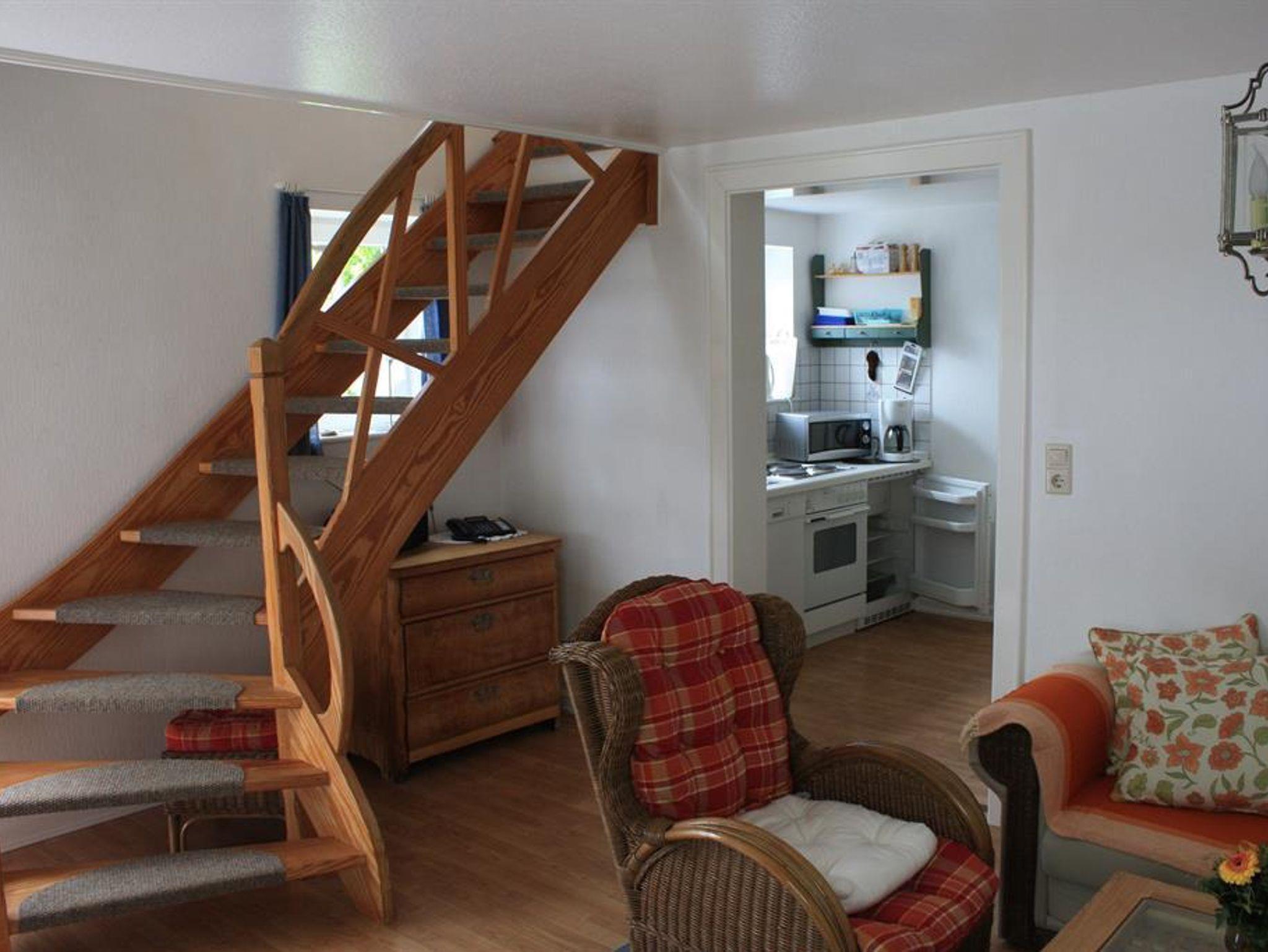 Liebevoll und komfortabel eingerichtete Ferienwohnung mit einer Größe von 65 qm, für bis zu 4 Personen. Wohnraum mit Sitzecke und SAT-TV. Einbauküche mit 4-Plattenherd und Geschirrspüler, Duschbad mit WC. Im Obergeschoss befinden sich ein Schlafraum mit Doppelbett und ein Schlafraum mit zwei Einzelbetten.