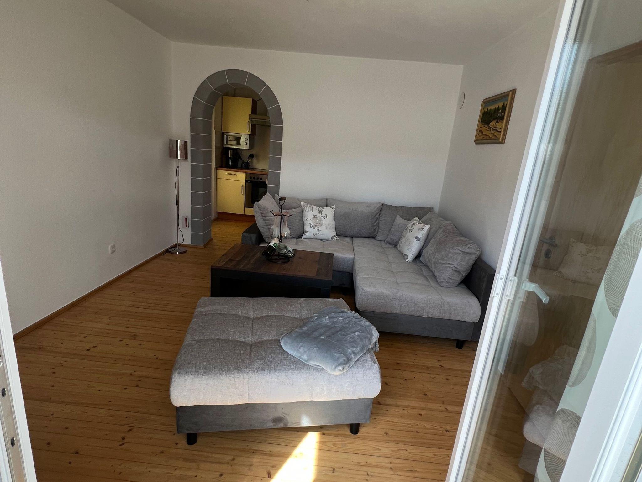 Im Wohnzimmer befindet sich eine Couchlandschaft mit kleinem Couchtisch. Fernseher und Wlan ist natürlich auch vorhanden.