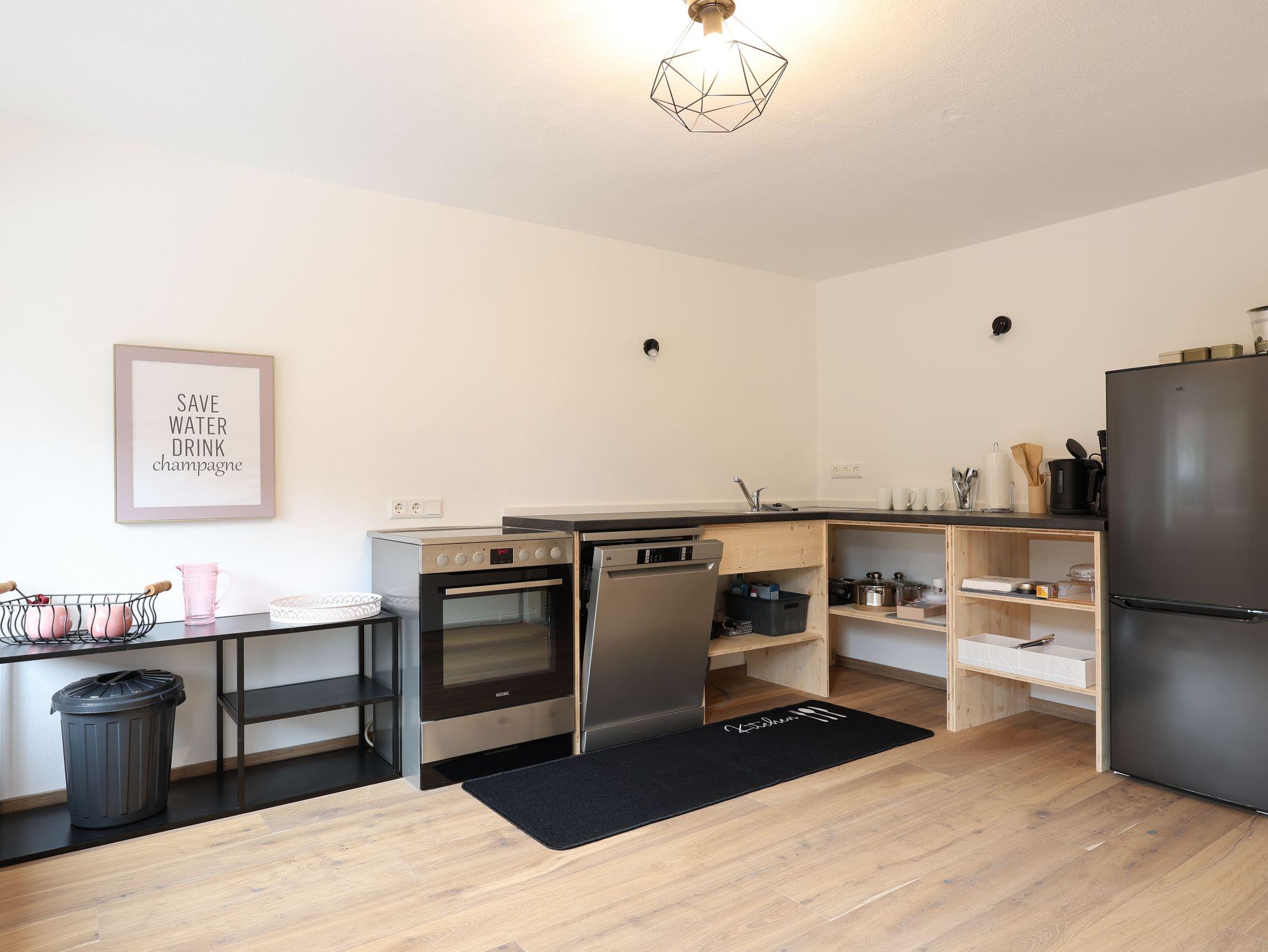 Das exklusive 140 m² große Burg-Apartment im OG bietet höchsten Komfort mit einer Sonnenterrasse, einer voll ausgestatteten Küche, einem großzügigen Ess- und Wohnbereich sowie zwei Schlafzimmern. Ein modernes Bad mit Dusche und Toilette sowie ein komplett eingerichtetes Kinderzimmer machen das Apartment zum idealen Rückzugsort für Familien oder Gruppen.