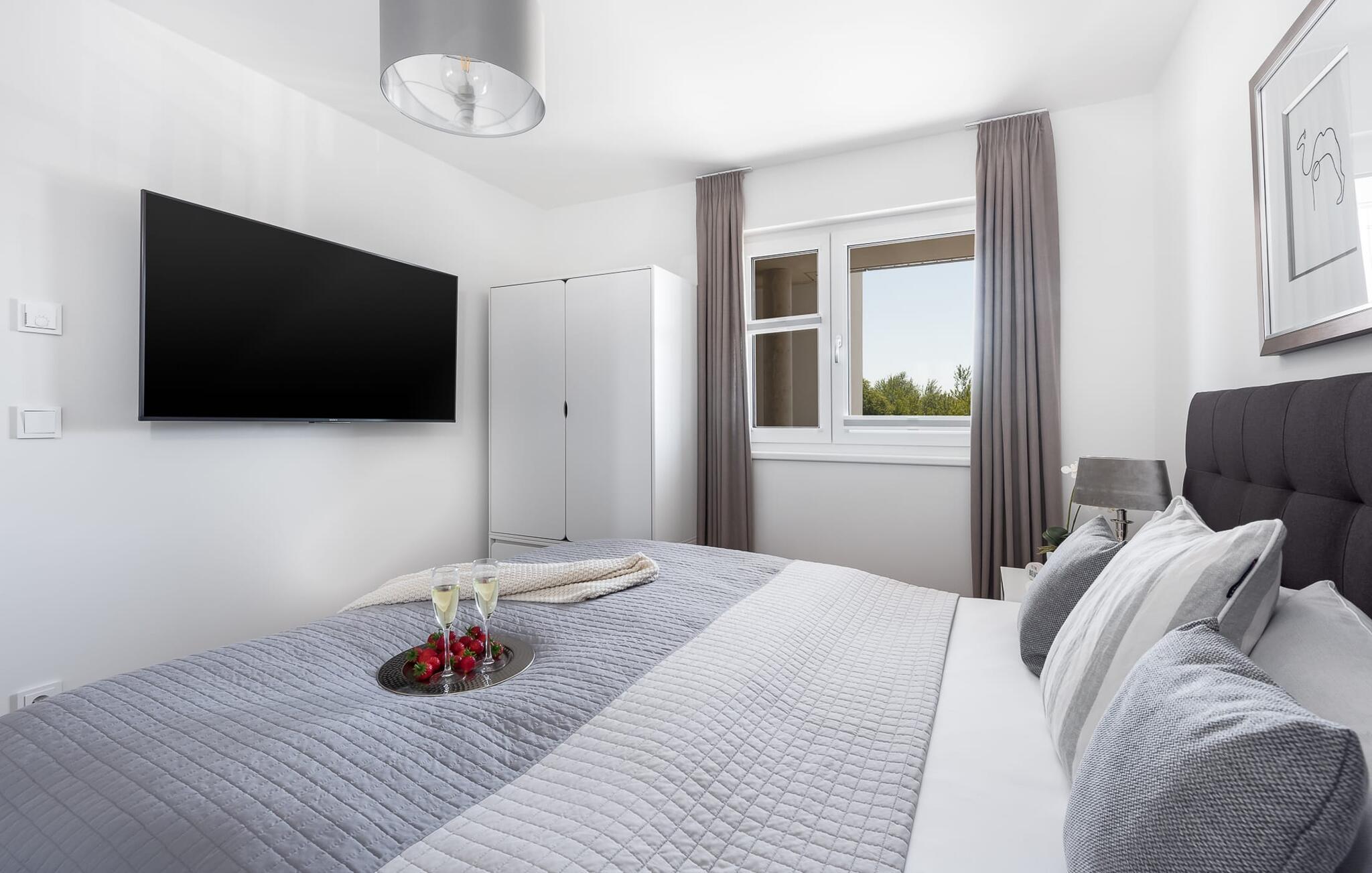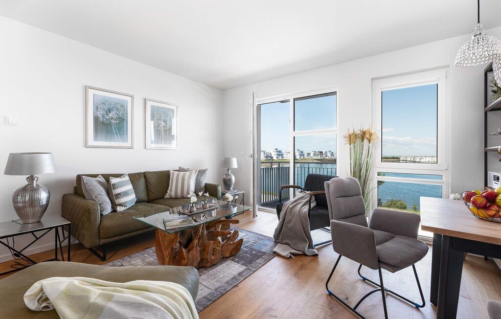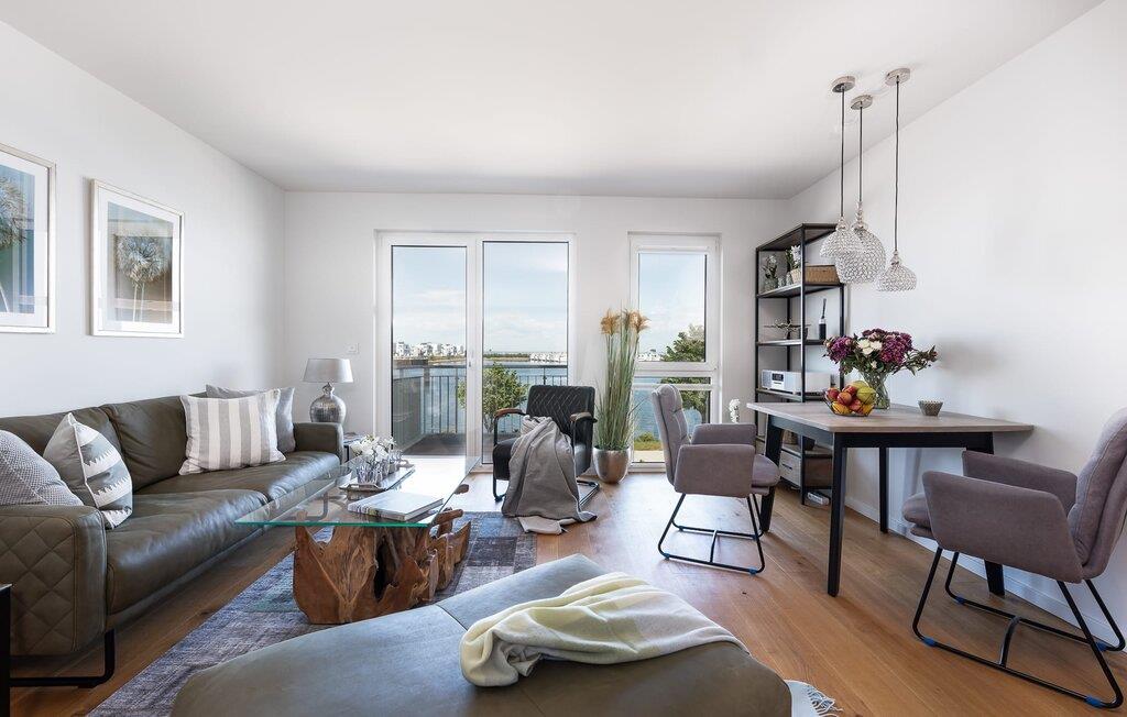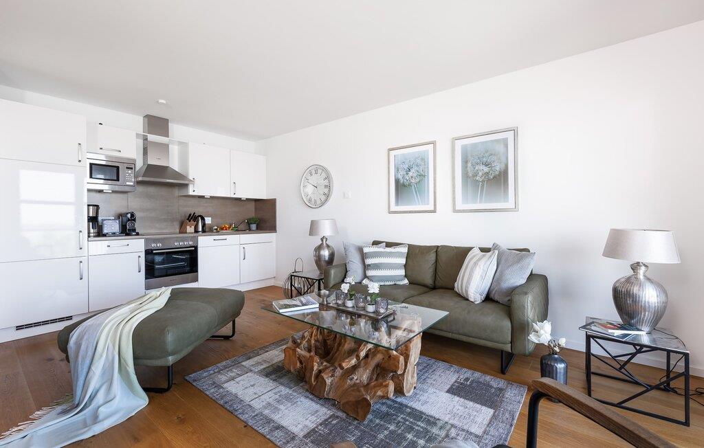 Leder I efter en ferielejlighed til to personer, der ligger centralt og roligt? Sætter I også pris på eksklusiv og stilfuld indretning? Så er denne Take FIVE lige ved havnepromenaden lige noget for dig! Den åbne stue/spisestue byder jer velkommen i lyse, varme toner parret med træ og læder. Et perfekt udstyret tekøkken, en moderne spiseplads til to og et opholdsområde med fjernsyn, lædersofa og lænestol inviterer jer til at føle jer godt tilpas med det samme. Men det er ikke alt! Træder I ud på den tilstødende altan, bliver I overvældet. I vil blive præsenteret for en fænomenal udsigt over sejl- og lystbådshavnen foran dig, de flydende huse og Sleien. Virkelig fantastisk! Og hvis vejret ikke tillader jer at sidde udenfor, kan I også nyde havnebiografen indefra takket være vinduerne fra gulv til loft. Denne komfortable ferielejlighed byder på et soveværelse med en dobbeltseng af høj kvalitet og et ekstra fjernsyn. Bruserummet med bruser i gulvniveau er lige så behageligt som parkeringspladsen på stedet, elevatoren og cykelskuret. Placeret over tingene, kan sejlskibe ses passere fra hele opholds-/spiseområdet og balkonen. Idyllen i landskabsbeskyttelsesområdet Slien byder på nærhed til naturen og et afbræk fra hverdagen. Den nye havnepromenade ligger under ferielejligheden og indbyder til slentretur med dets voksende tilbud. Der er virkelig intet tilbage at ønske for en absolut afslappende ferie i Take FIVE. Vores favoritsted: At sidde på balkonen ved solnedgang og bare nyde... Dette er en ferielejlighed på første sal. Bemærk venligst: OstseeResort Olpenitz er meget populært, og der bygges fortsat i parken. Ikke desto mindre kan I se frem til en 5-stjernet standard og et førsteklasses ophold. Byggeaktiviteterne kommer ikke til at forstyrre jer på ferien, og derfor gives der ikke yderligere afslag i prisen.