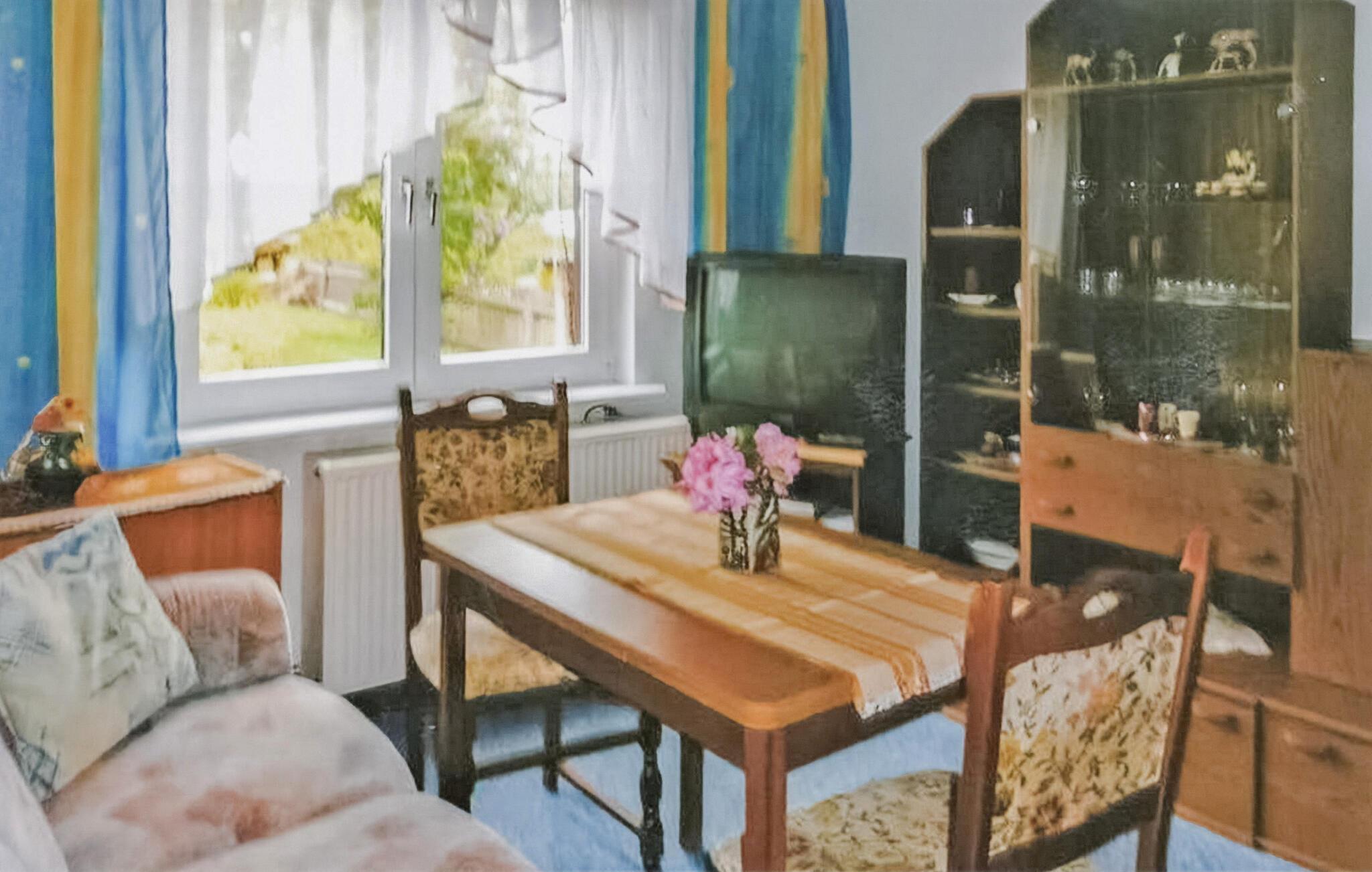 Sommerhuset ligger særskilt på ejerens beboelsesejendom i udkanten af skoven. Den er enkelt udstyret med: stue (polstrede møbler, TV, radio), soveværelse (dobbeltseng), køkken (elkomfur med ovn, køleskab med fryser, mikroovn, diverse køkkenmaskiner), bad/toilet, vaskemaskine, central. opvarmning. Tilgængelig: siddeplads i 500 kvadratmeter friareal, grill, cykelkælder og parkeringsplads. Den samlede pris inkluderer sengelinned, håndklæder, vand, energi og slutrengøring. Betales på stedet: turistskat. Kæledyr: En hund er tilladt i denne ejendom op til en maksimal højde på 40 cm. Tambach Dietharz er en lille by omgivet af skov i Gotha-distriktet på den nordlige skråning af Thüringer Wald. Adskillige floder og bjergvande med klart vand løber gennem byen Takket være en veludviklet turistinfrastruktur og gode vintersportsforhold med 25 km langrendsløjper, kælkebakker og skiløjper har byen udviklet sig til en populær ferie areal.