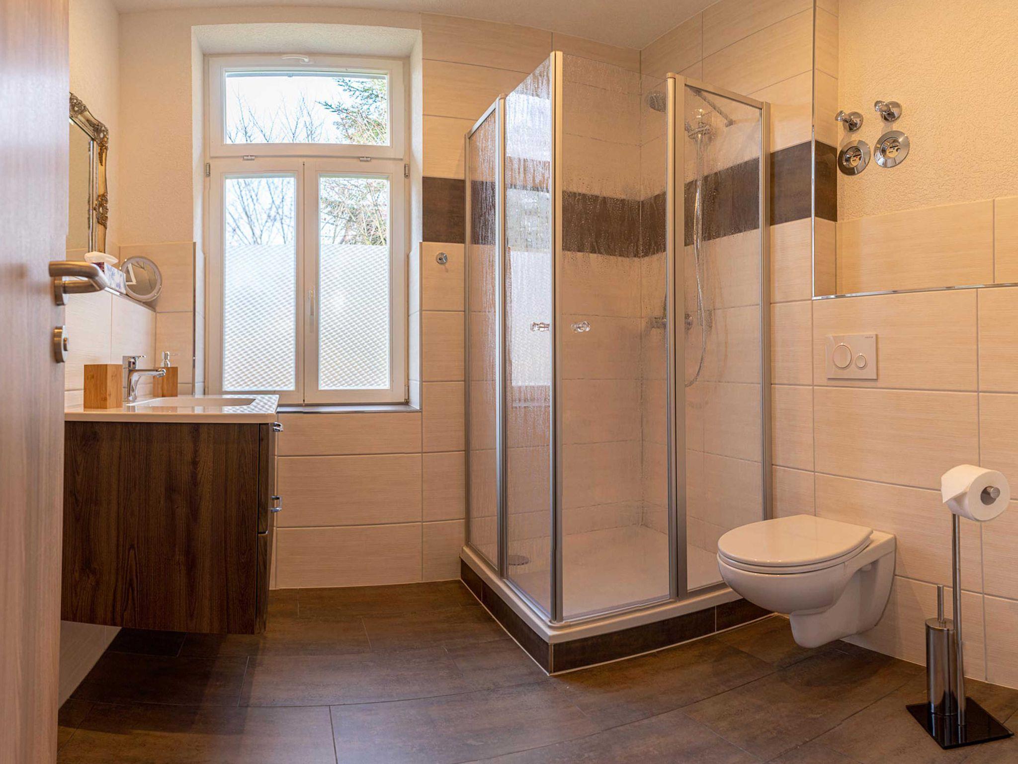 - Bad mit WC/Dusche, Föhn, Handseife und Toilettenpapier