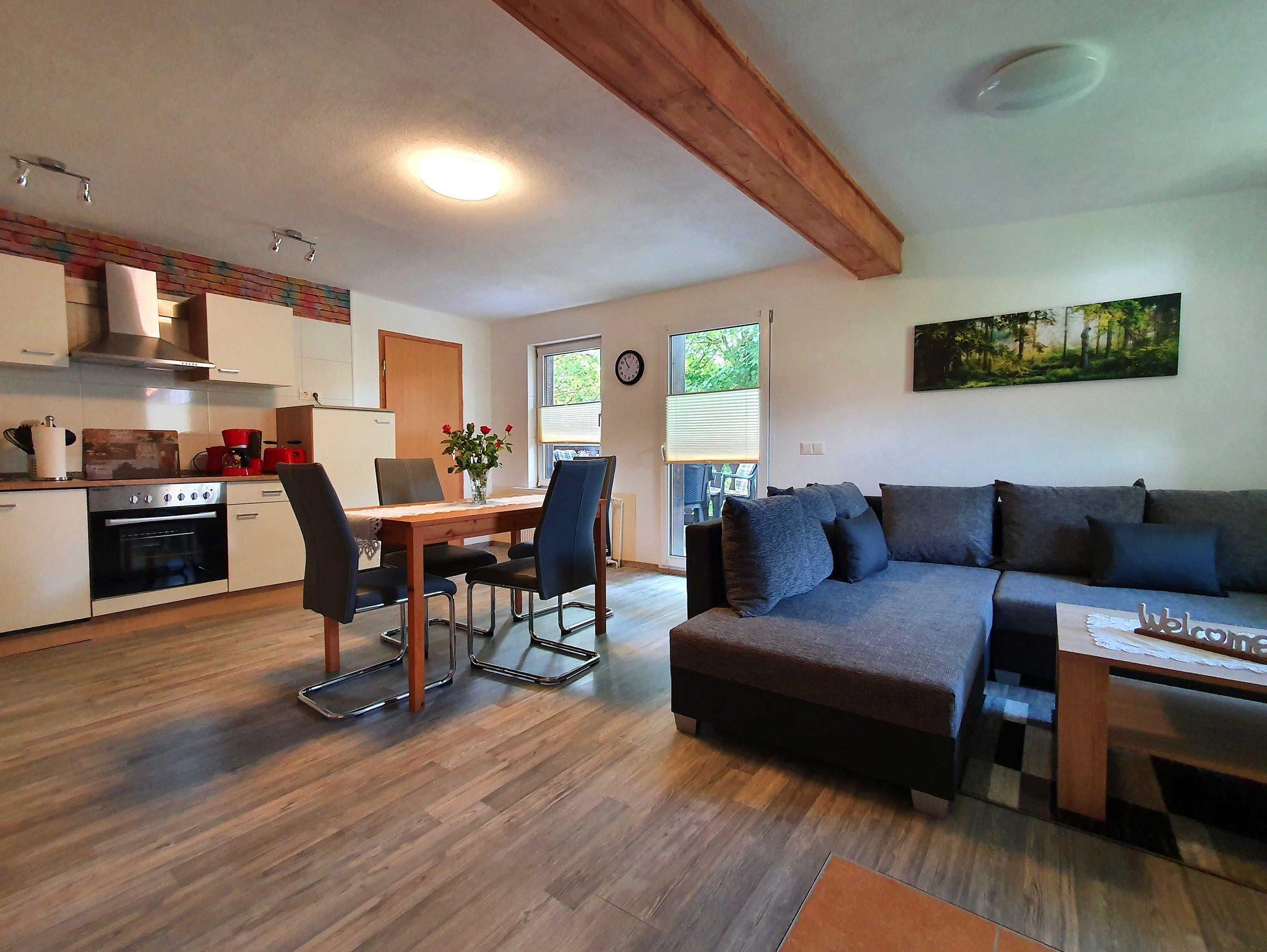 In der separat zugänglichen Ferienwohnung, welche in den Jahren 2016 und 2021 umfassend renoviert wurde, heißt man Sie auf einer Wohnfläche von 45 m² willkommen! Die Wohnung bietet Platz für bis zu 3 Personen, die sich in ein großzügiges Schlafzimmer, ein gemütliches Wohnzimmer mit Schlafcouch, für die dritte Person mit integriertem Küchenbereich und ein Tageslichtduschbad unterteilt. Das Schlafzimmer schenkt Ihnen einen komfortablen Schlaf in einem großzügigen Doppelbett, das von zwei beidseitigen Nachttischen mit Leselampen umgeben ist. Zusätzlich finden Sie zur Verstauung Ihres Reisegepäcks einen Kleiderschrank im Schlafzimmer. Zur Wohnung gehört eine mit Gartenmöbeln möblierte Terrasse inmitten des Gartens an. Hier genießen Sie eine Mahlzeit im Freien. Nutzen Sie den Grill zu einem gemeinsamen Grillabend. Ein Parkplatz steht Ihnen auf dem Grundstück zur Verfügung. Ihr Haustier ist in dieser Wohnung herzlich willkommen!
