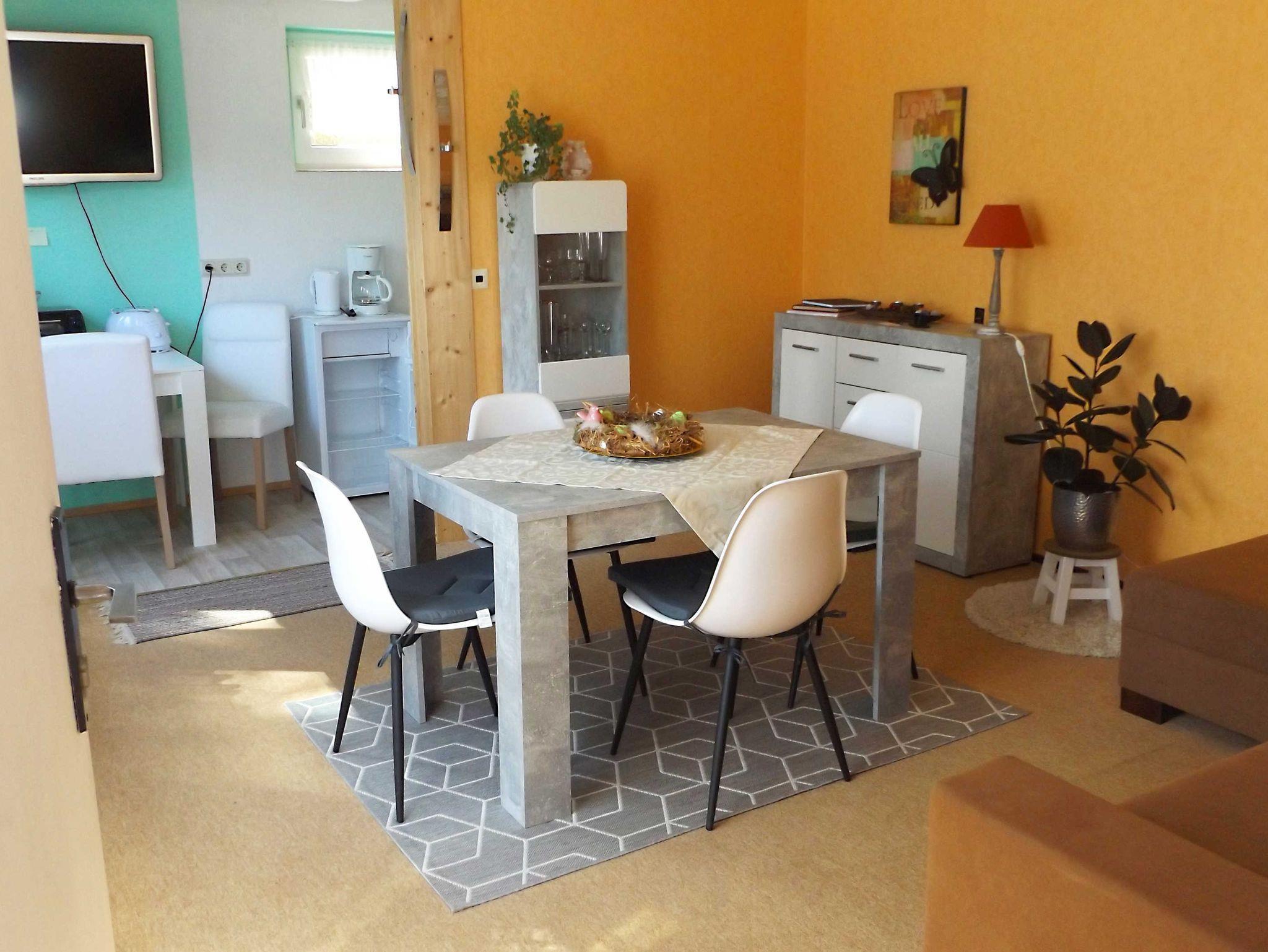 Ruhig gelegene, gemütliche Nichtraucherwohnung mit Terrasse, Küche, Wohnzimmer, Schlafzimmer, Dusche/WC. Die kleine separate Küche ist mit Herd ausgestattet. Im Wohnzimmer befindet sich eine Couch mit Schlaffunktion. Im Garten befindet sich eine gemütliche Sitzecke mit Grillmöglichkeit.