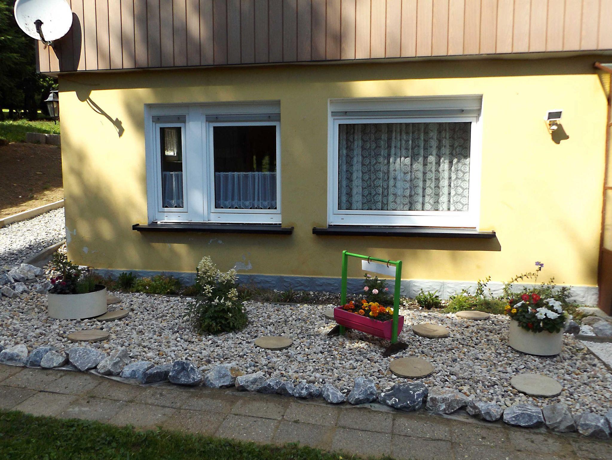 Gepflegtes Grundstück mit Einliegerwohnung und separatem Eingang. Aussstattung: Küche mit Herd, Wohnzimmer mit Schlafcouch, Ferseher und Radio, Schlafzimmer, Bad mit Dusche/WC, großer Parkplatz am Haus, gemütliche Terrasse mit Grillmöglichkeit. Nichtraucherwohnung. Die Ferienwohnung bietet Platz für bis zu 4 Personen. Ein Kleinkind ist zusätzlich möglich.