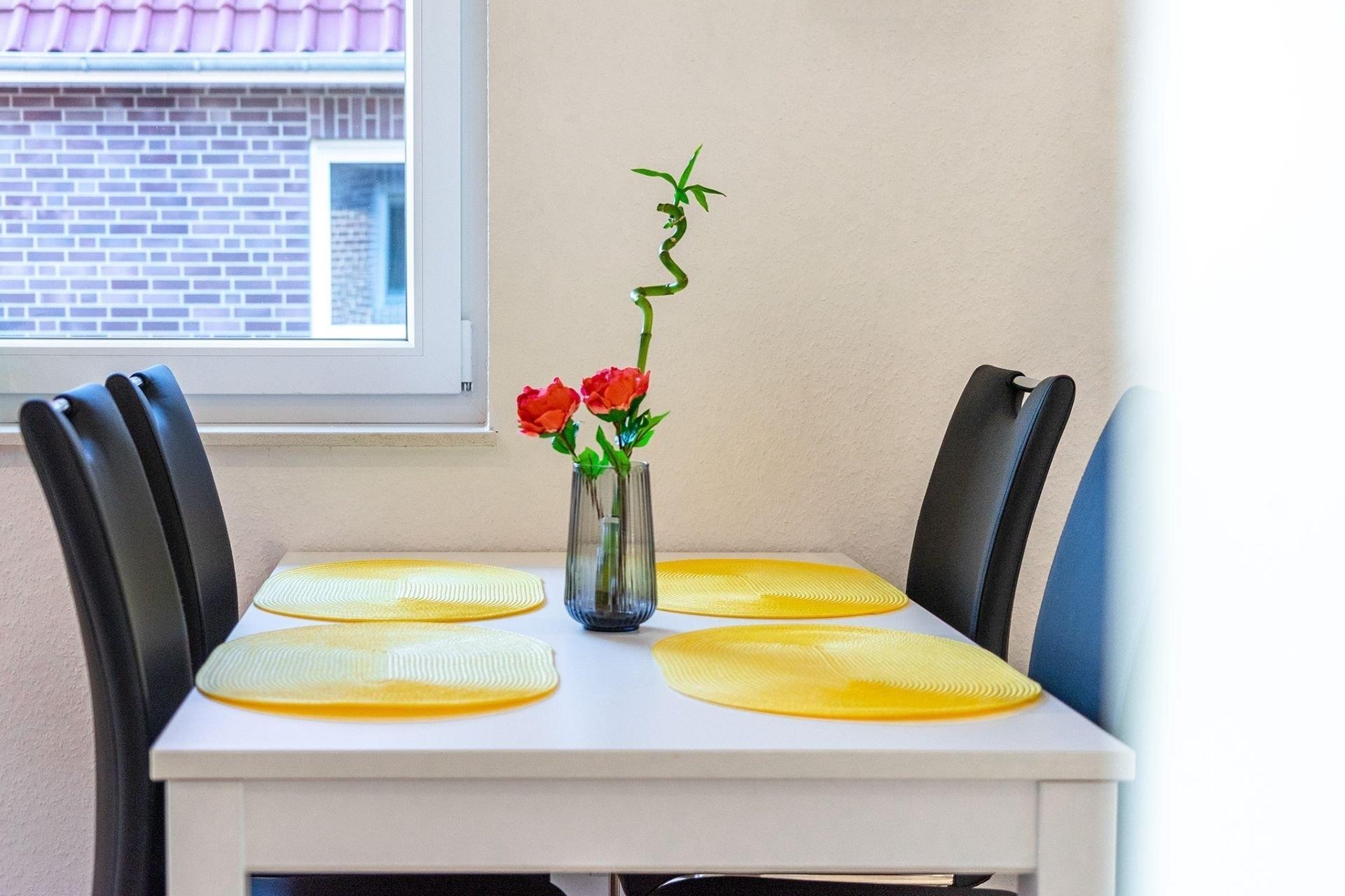 Doppelhaus direkt am Badesee Aurich-Tannenhausen.Das modern und liebevoll eingerichtete Doppelhaus Nitschke - FeWo Flut bietet die Möglichkeit, im Herzen Ostfrieslands Ihren Urlaub zu genießen. Die Ferienwohnung in einer unserer beiden in 2022 neu gebauten Doppelhäusern liegt direkt am idyllischen Badesee in Aurich-Tannenhausen. Jede Doppelhaushälfte verfügt über ~60 m² Wohnfläche und bietet Platz für bis zu vier Personen. Das offengestaltete Erdgeschoss mit Koch-/ Wohn- und Essbereich sowie die daran anschließende Terrasse laden zum Wohlfühlen ein. Im Obergeschoss befinden sich zwei gemütliche Schlafzimmer und ein großes Tageslichtbad mit begehbarer Dusche, Waschbecken und WC. Parkplatz für PKW ist direkt am Haus. Größere Familien dürfen gerne beide Doppelhaushälften zusammen reservieren.