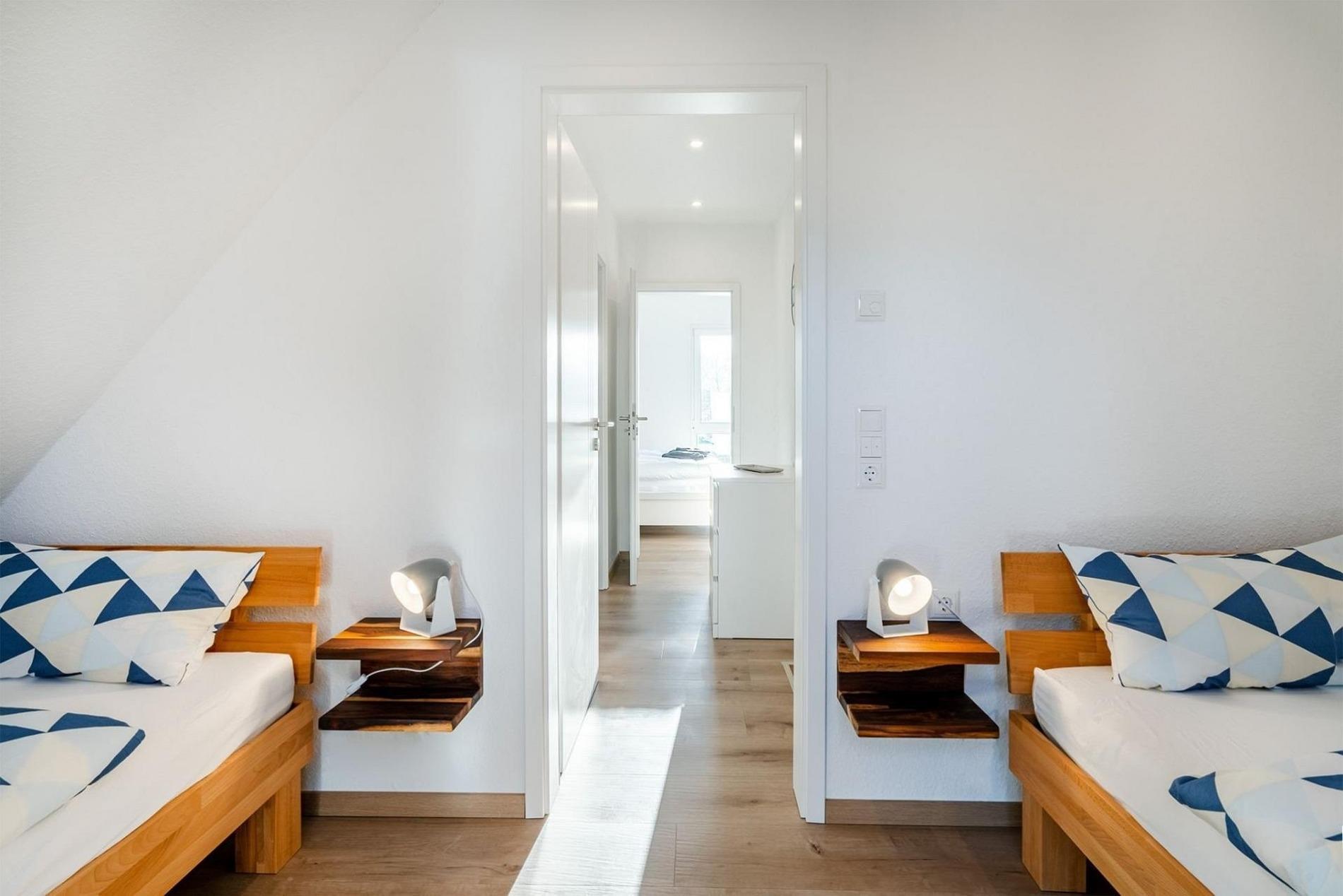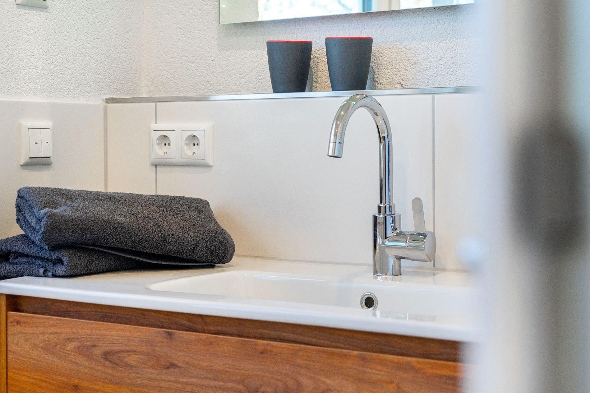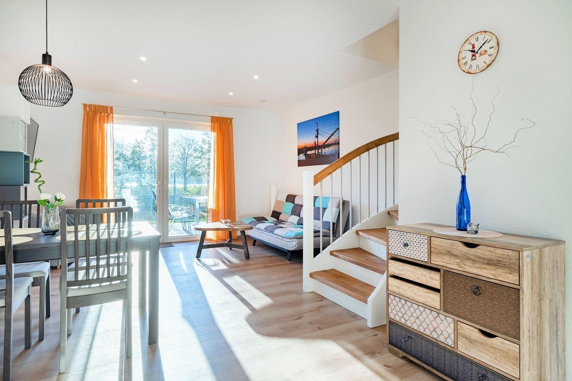 Doppelhaus direkt am Badesee Aurich-Tannenhausen.Das modern und liebevoll eingerichtete Doppelhaus Nitschke - FeWo Watt bietet die Möglichkeit, im Herzen Ostfrieslands Ihren Urlaub zu genießen. Die Ferienwohnung in einer unserer beiden in 2022 neu gebauten Doppelhäusern liegt direkt am idyllischen Badesee in Aurich-Tannenhausen. Jede Doppelhaushälfte verfügt über ~60 m² Wohnfläche und bietet Platz für bis zu vier Personen. Das offengestaltete Erdgeschoss mit Koch-/ Wohn- und Essbereich sowie die daran anschließende Terrasse mit direktem Seeblick laden zum Wohlfühlen ein. Im Obergeschoss befinden sich zwei gemütliche Schlafzimmer und ein großes Tageslichtbad mit begehbarer Dusche, Waschbecken und WC. Parkplatz für PKW ist direkt am Haus. Größere Familien dürfen gerne beide Doppelhaushälften zusammen reservieren.