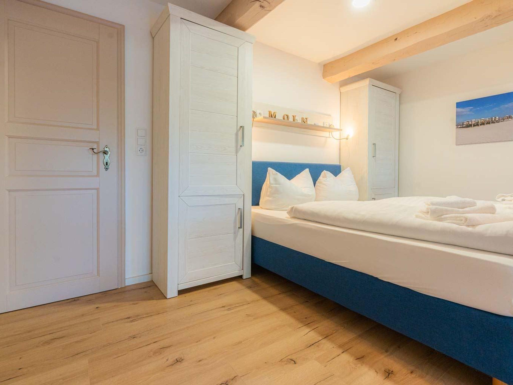 Schlafzimmer mit 2 Einzelbetten (je 80x200cm) und Kleiderschrank.