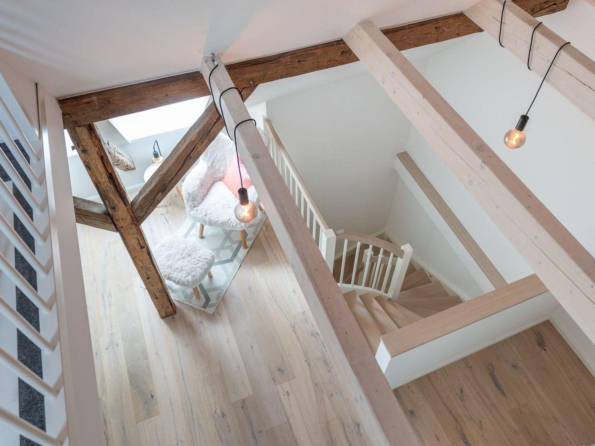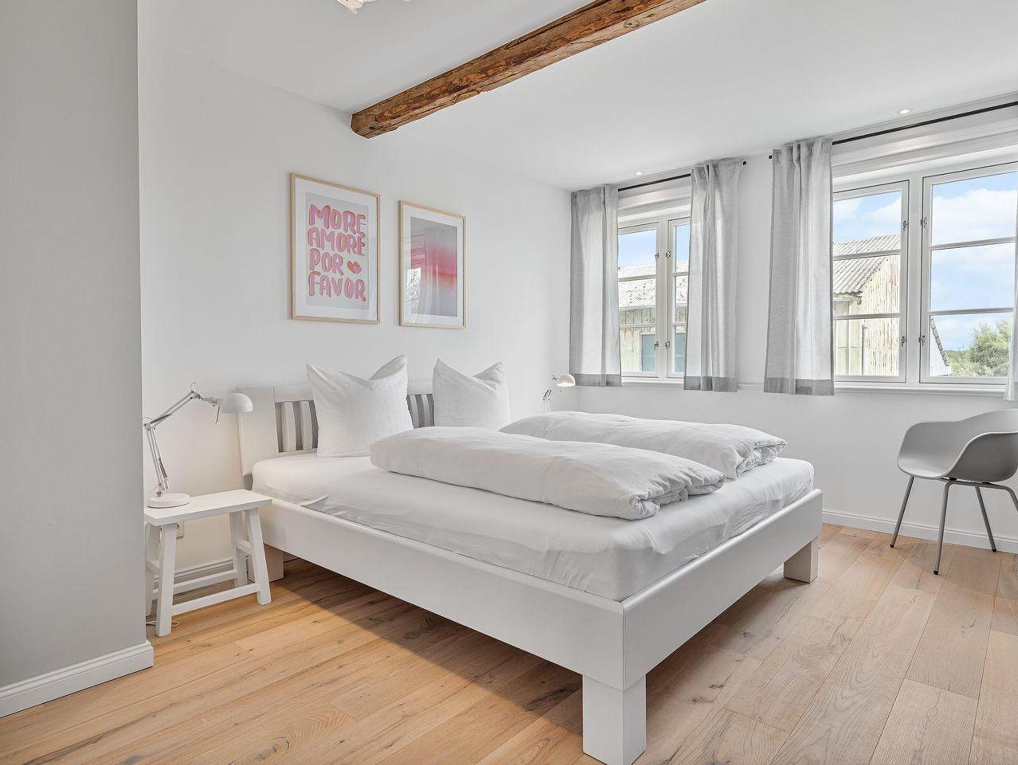 Über eine wunderschöne Einbautreppe gelangt man in das Obergeschoss. Die beiden Schlafzimmer mit je einem Doppelbett bieten jeden Komfort. Ein geräumiges Bad mit Dusche und großem Waschtisch runden jeden Luxus ab.