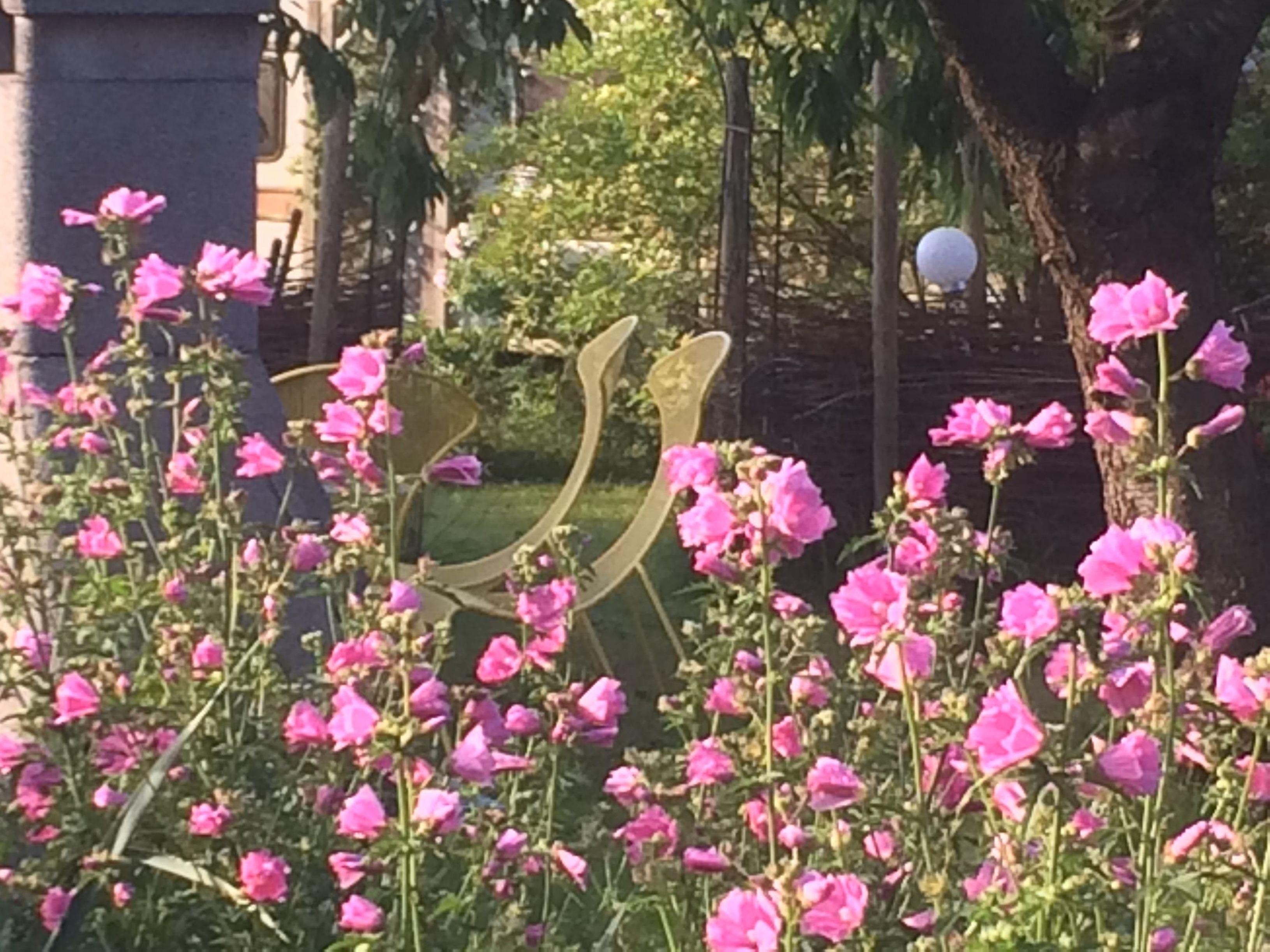 Im großen Garten stehen diverse Sitzmöglichkeiten zur Verfügung. Auf dem großen Rasen darf gespielt werden. Fahrräder können im Garten abgestellt werden.