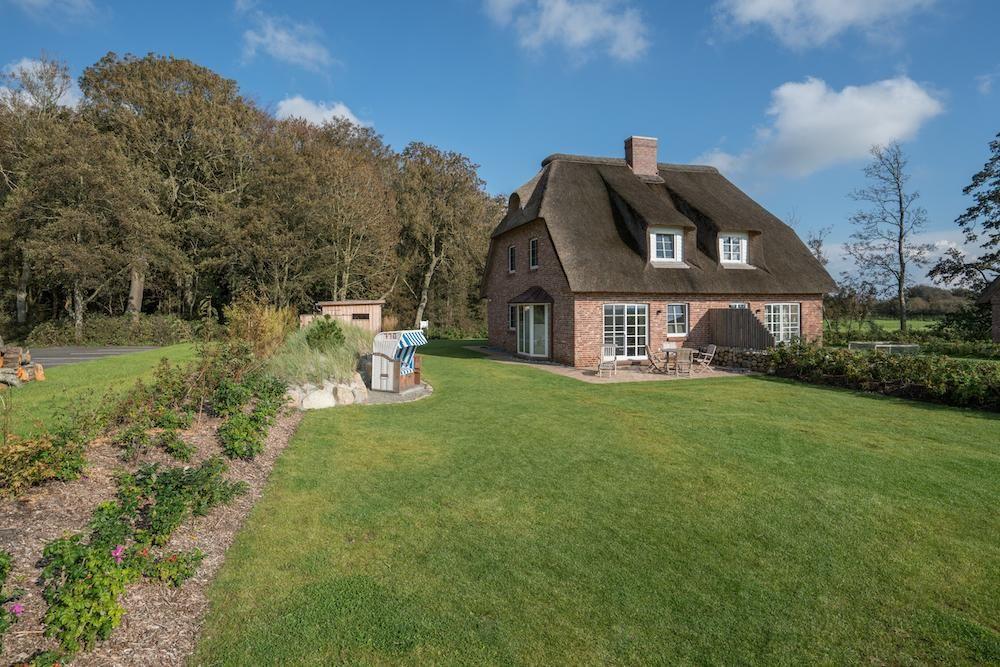 Meer, Strand, Dünen, Wellen, Wind und diese unglaubliche Weite - nur eine Windböe entfernt von St. Peter-Ording, umgeben von Bäumen und Wiesen, lädt das ruhig gelegene Reetdachhaus ein - zum Entspannen, Spielen, die Natur entdecken oder einfach mal die Seele baumeln lassen! Die lichtdurchflutete Haushälfte mit ca. 85 m² Wohnfläche und Platz für bis zu 5 Personen bietet neben viel Gemütlichkeit und ein mit viel Liebe ausgewähltes Design, einen Kamin, eine Aussensauna, eine Düne mit Strandkorb und einen sehr großen eigenen Garten.
