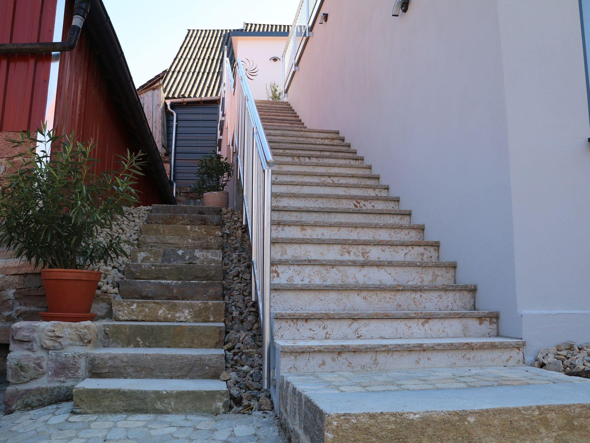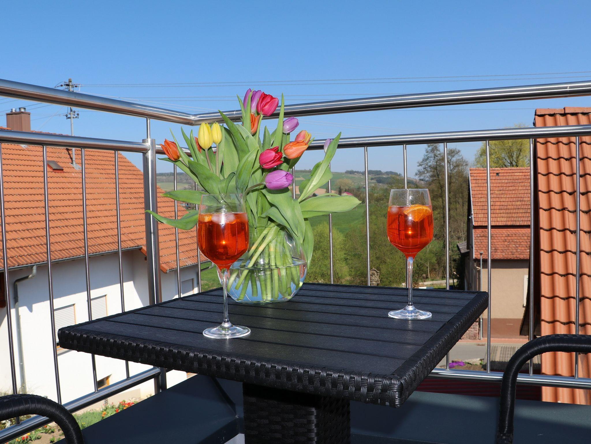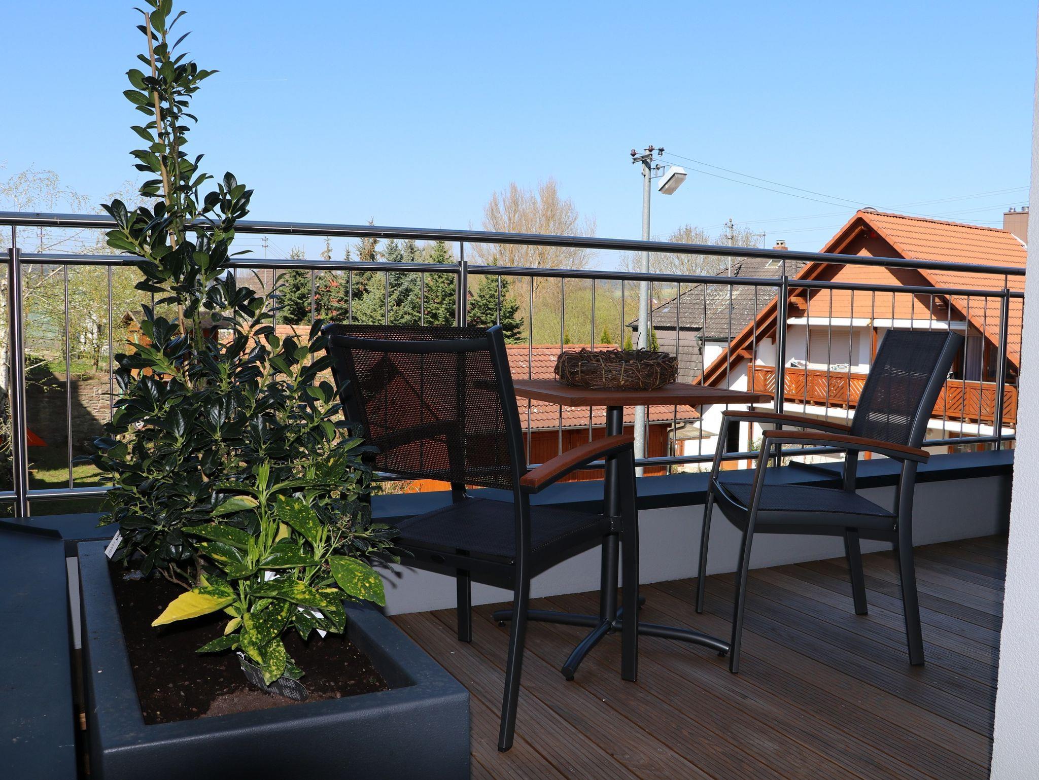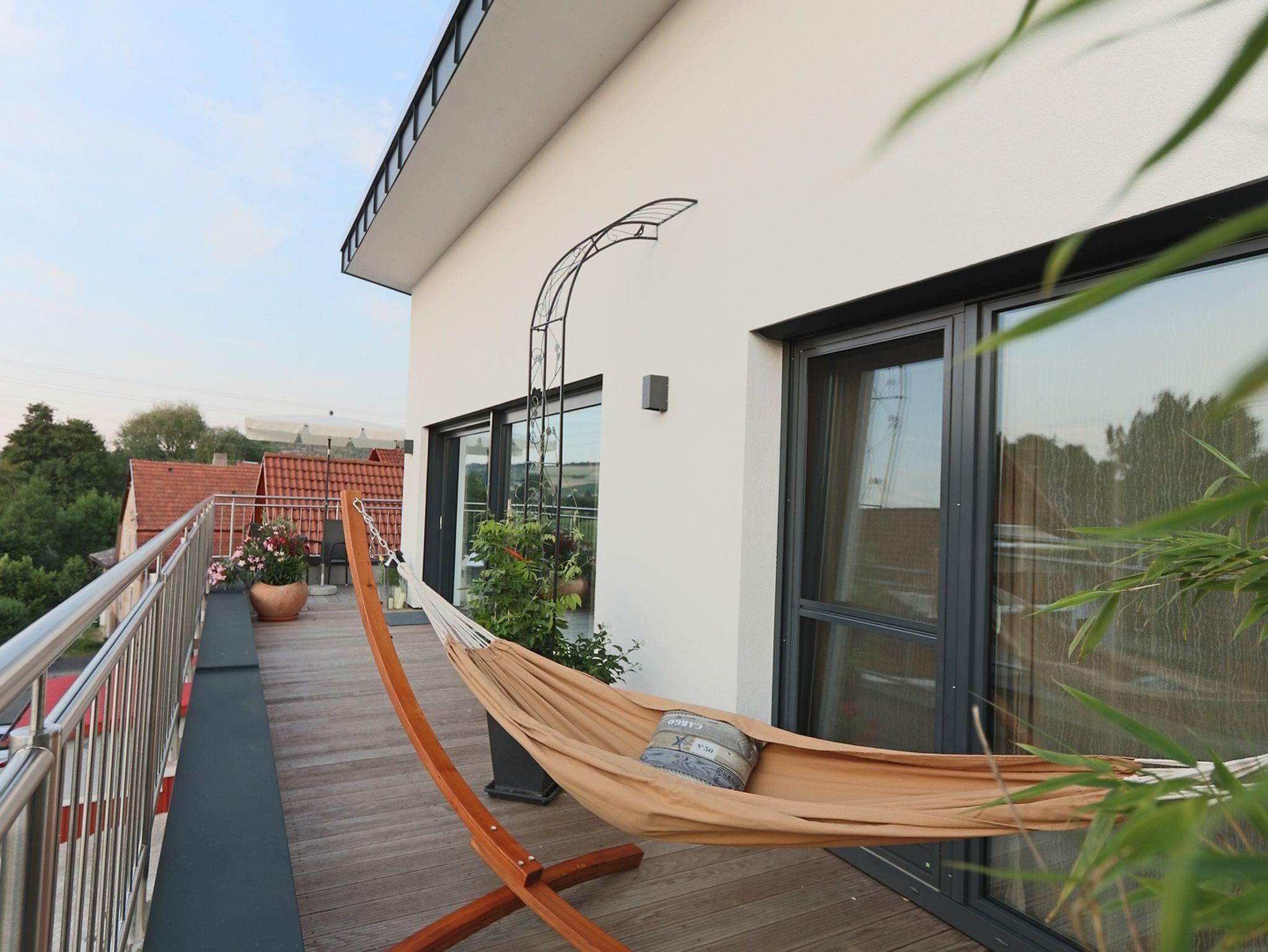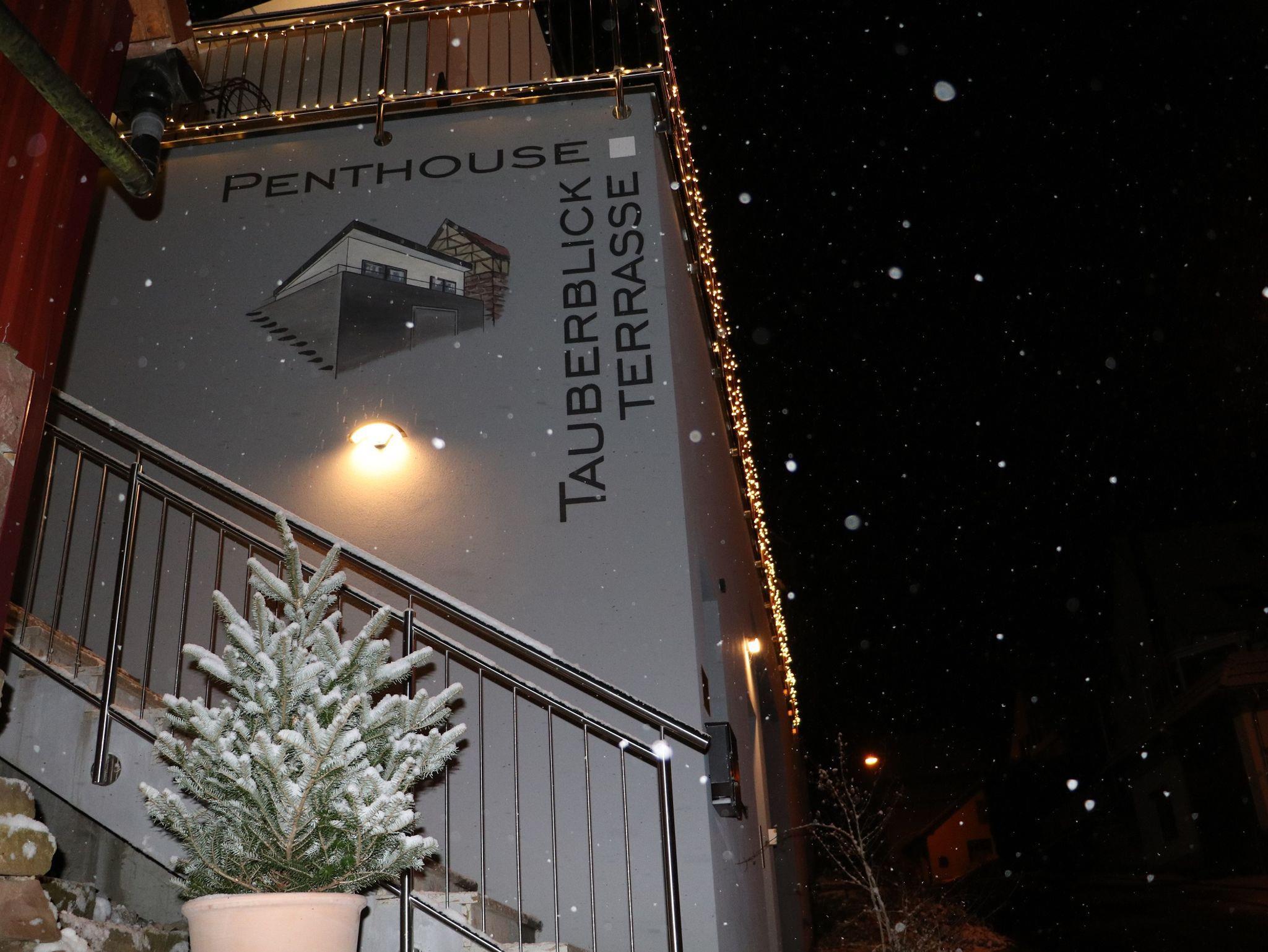 Das Penthouse Tauberblick Terrasse ist ein frei stehendes Haus, das auf dem Dach einer Garage erbaut wurde (erreichbar über eine Treppe mit 30 Stufen).
