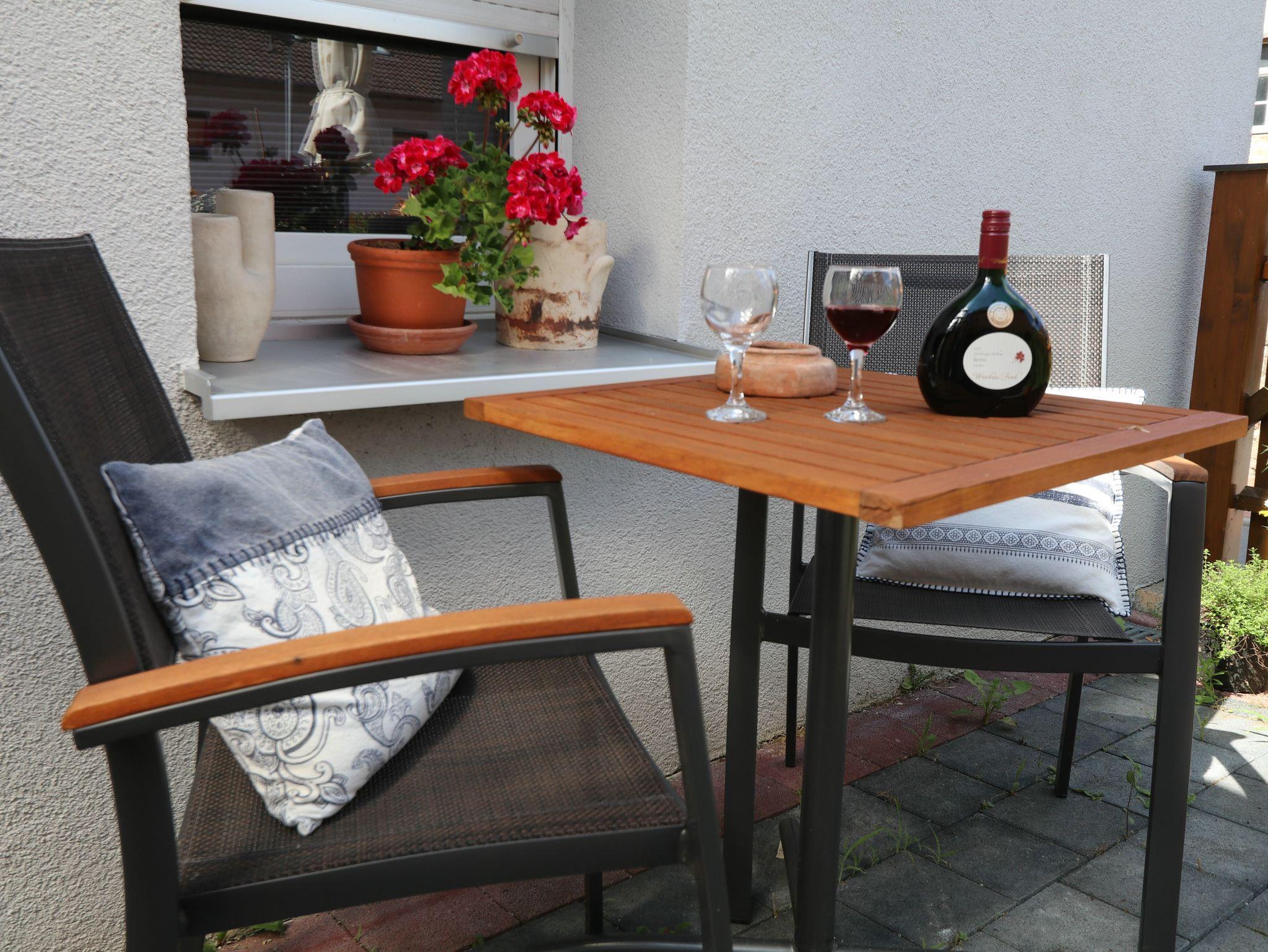 Die gemütliche und modern eingerichtete Ferienwohnung befindet sich direkt am Radweg und hat eine große umzäunte Terrasse.