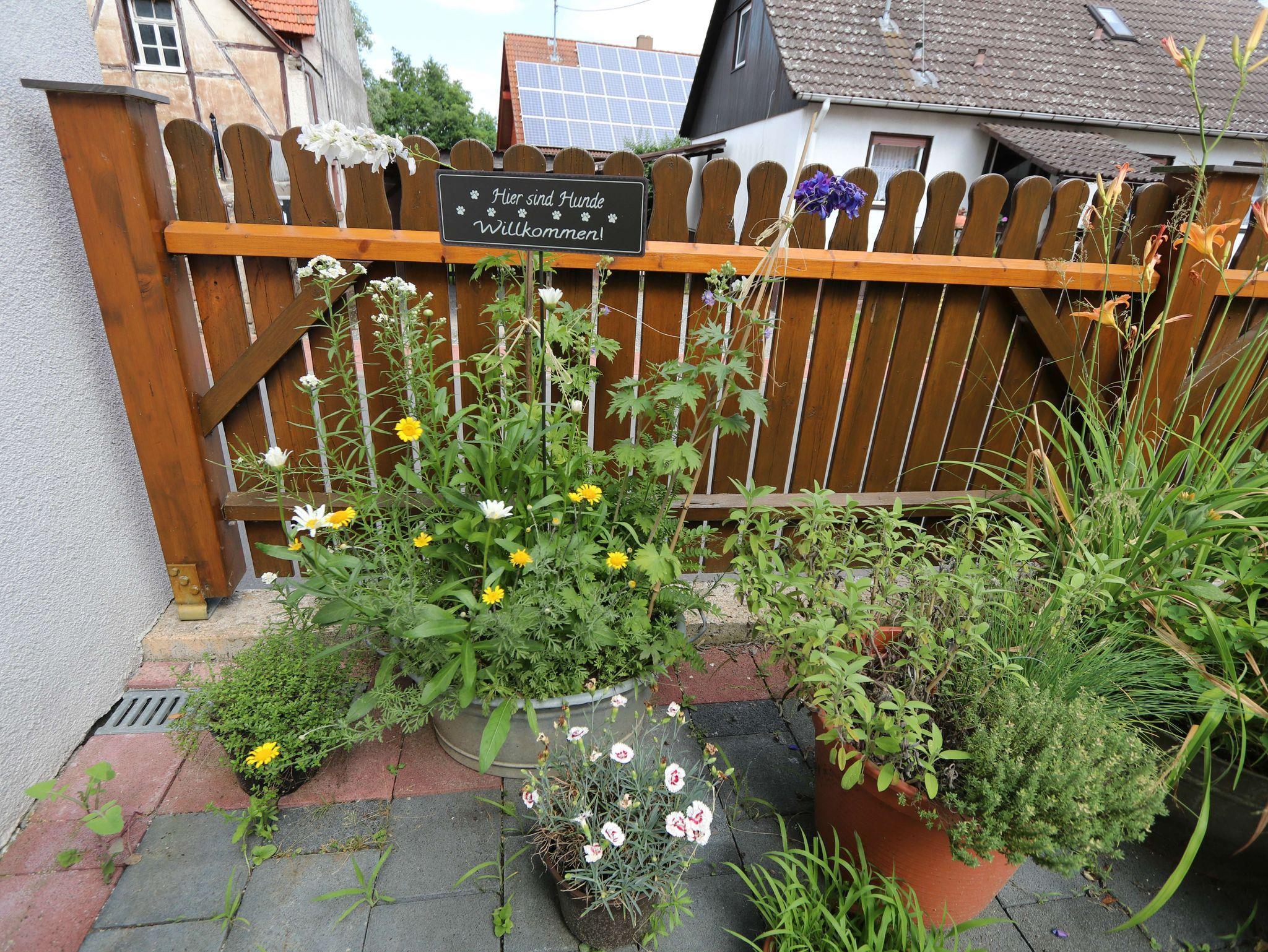 Die Terrasse ist umzäunt und somit der ideale Auslauf für mitreisende Hunde.