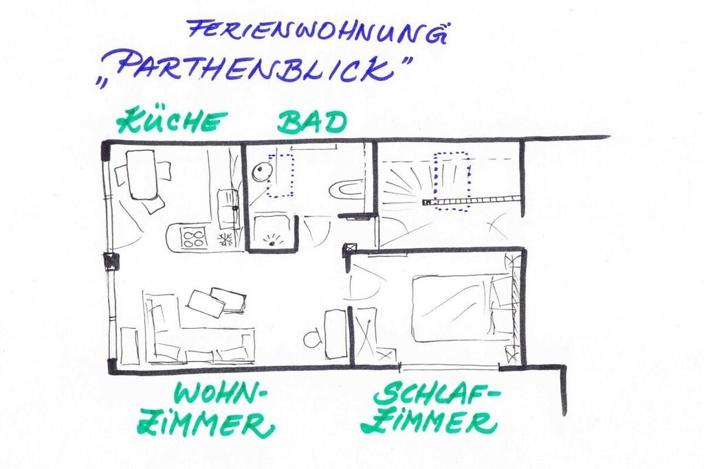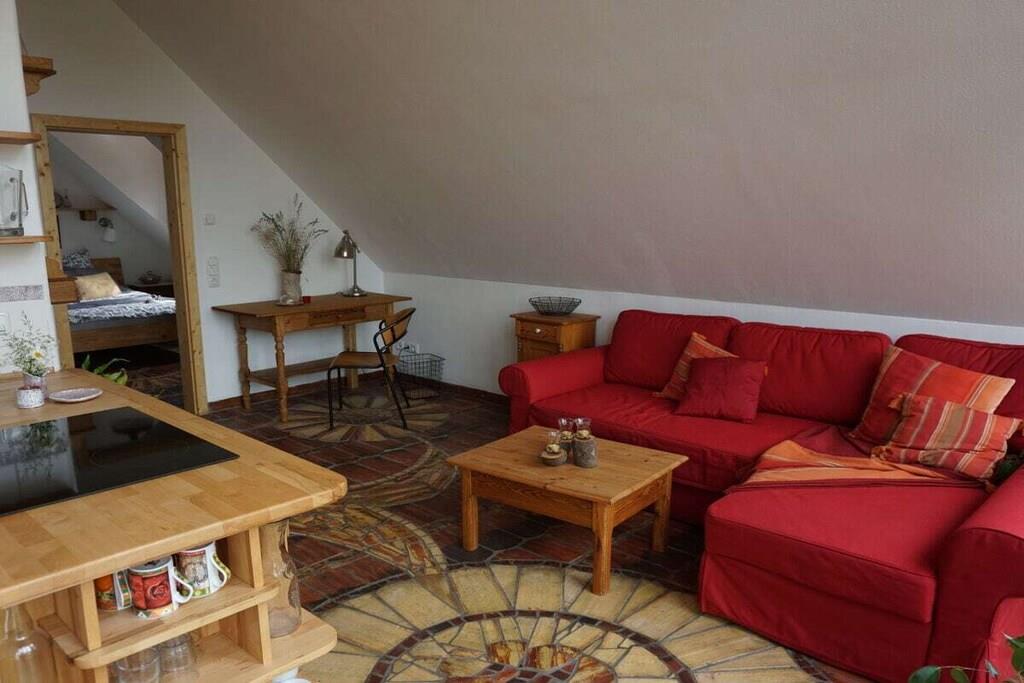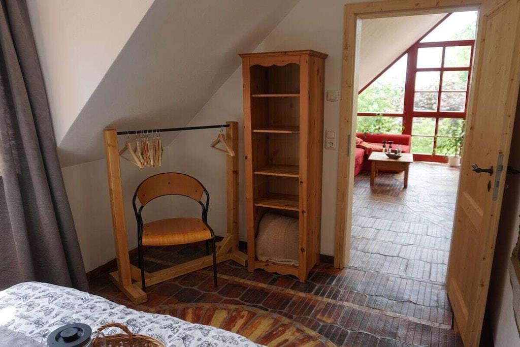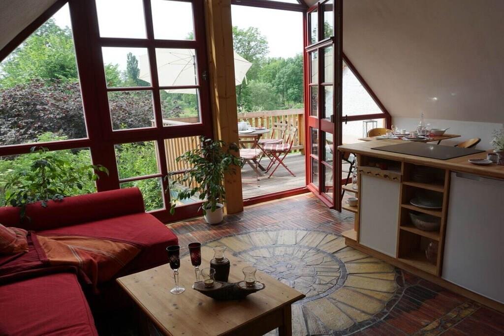 Lejligheden "Partheblick" i den nyrenoverede "Bee Stable" i Dewitz præstegård har en overvældende udsigt over Parthe-engene. Du kan nyde udsigten fra sofaen og spisebordet gennem det store gavlvindue eller fra altanen. Bihuset er en gammel lerbygning. Ved grundrenoveringen i 2020/21 fik lervæggene nyt loft og omdannet til et ideelt sommerhus efter økologiske principper og med stor entusiasme for kunstnerisk udformning og sans for detaljen. Det romantiske soveværelse byder på 2 sovemuligheder i en dobbeltseng. Sovesofaen i køkken-alrummet kan også laves om til dobbeltseng. Køkkenet og meget af møblerne er individuelt lavet og monteret. Gulvet, lavet af gamle tagsten i mosaikstil, er unikt. Venlige hunde og andre kæledyr er velkomne.
