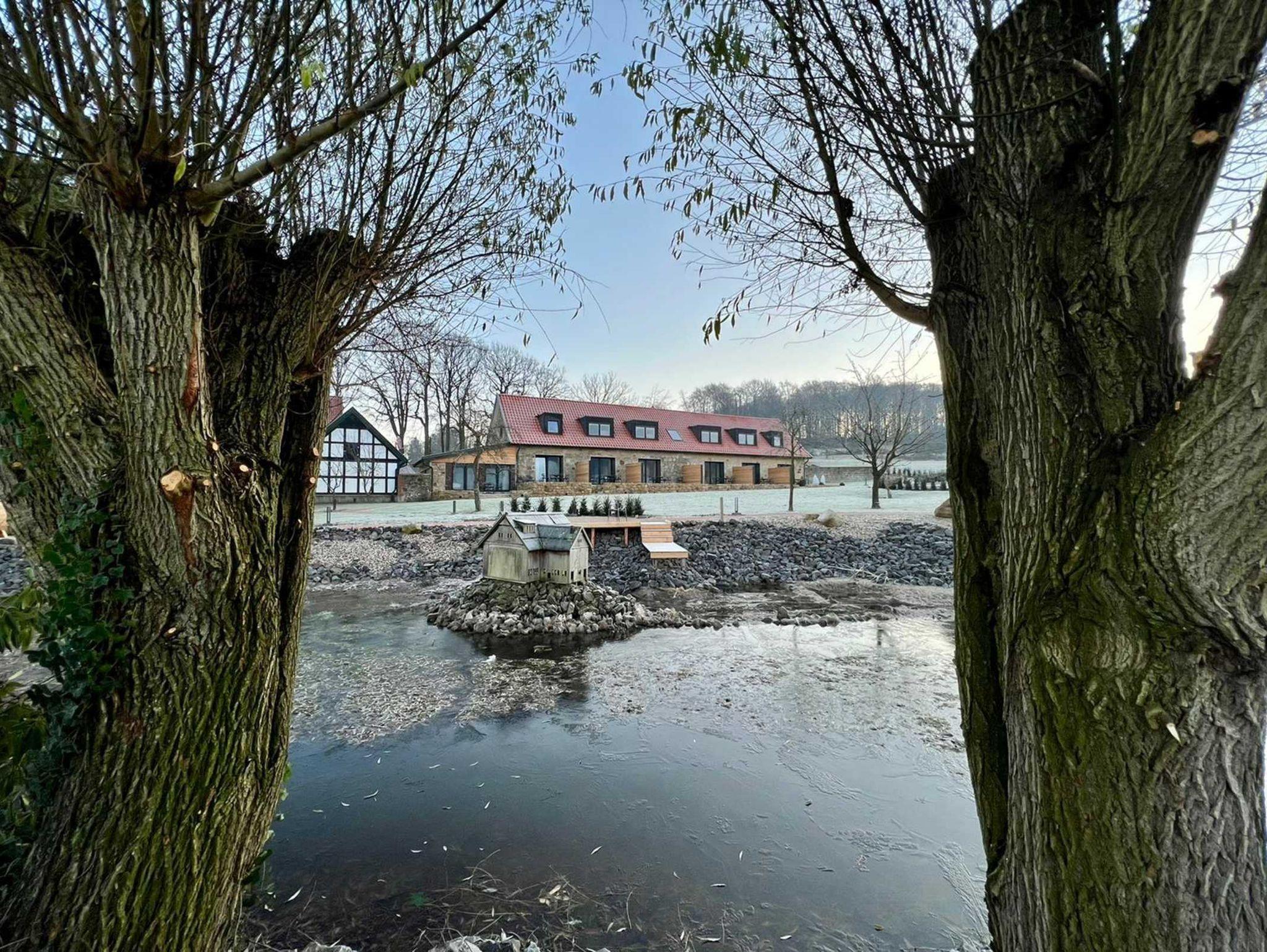 weitläufigen Fischteich, stehen die damals noch landwirtschaftlich