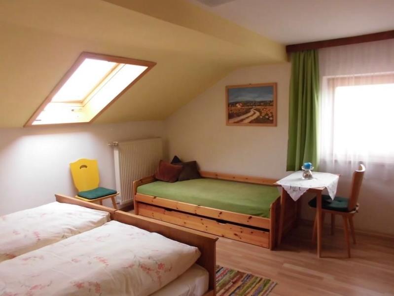 The spacious holiday flat on the upper floor has a fully equipped kitchen, an east-facing balcony where you can enjoy the morning sun. For the evening sunset you can use our sunbathing lawn with unobstructed mountain view and the barbecue possibility on the terrace. Two separate bedrooms offer space for up to 5 people. On request, we can provide another room for additional guests with a double bed.