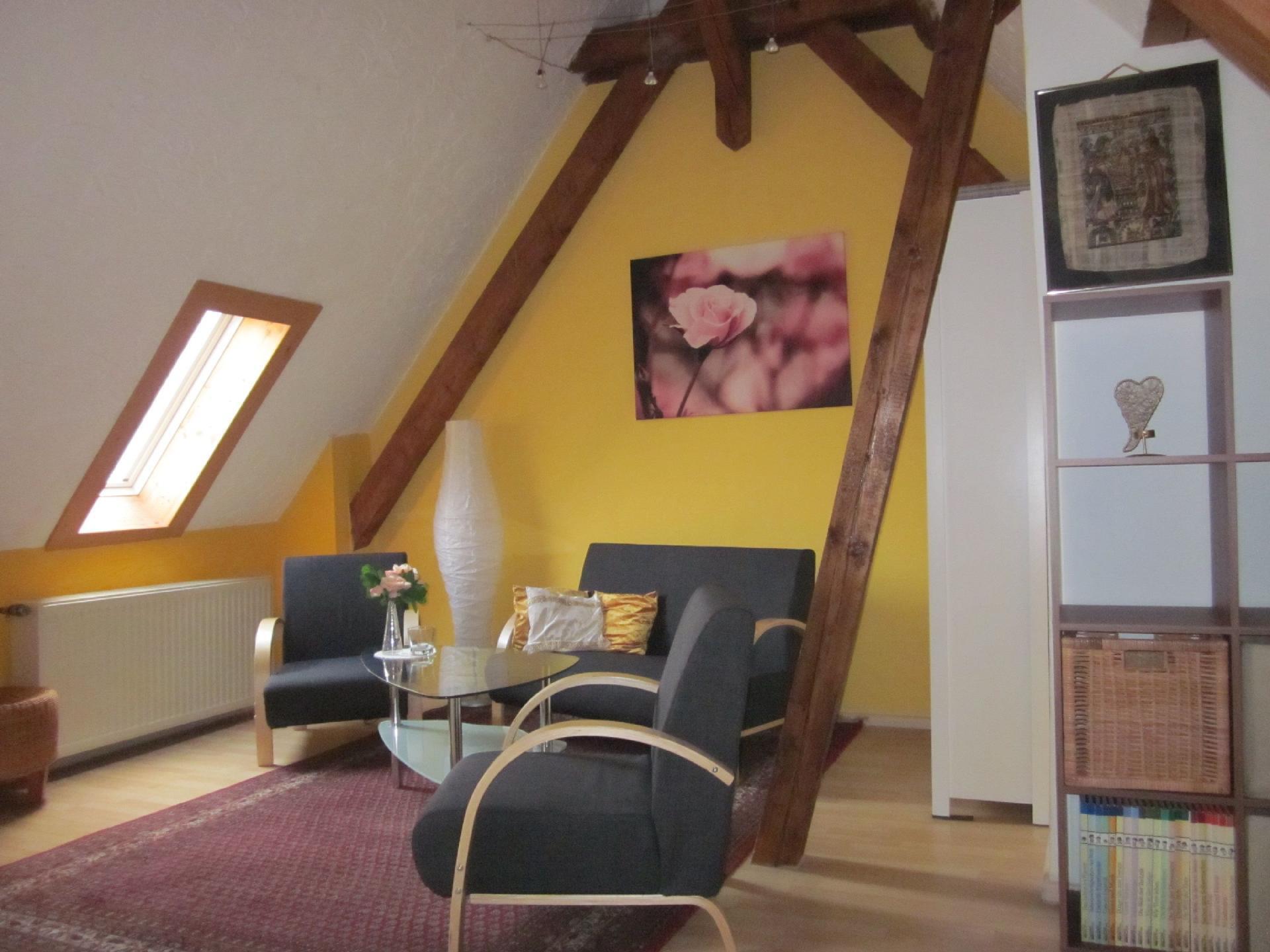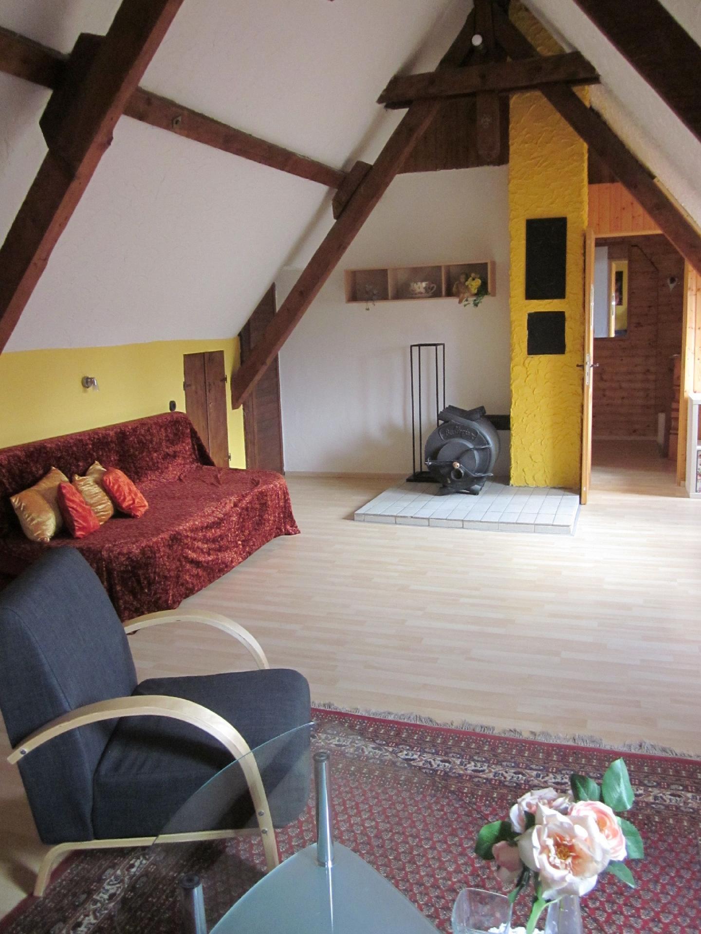 The lovingly renovated holiday flat is on the second floor of the house and is not handicapped accessible! The 70 square metre flat offers space for up to three people and extends over two levels (maisonette flat). There is a bedroom with double bed (160cm wide); the kitchen with complete kitchenette without dishwasher is equipped with microwave oven, coffee machine, fridge with freezer compartment, kettle, egg cooker, toaster and much more. The flat has a bathroom with shower, WC and washbasin. In the living room there is a two-seater sofa and two armchairs with table, a display cabinet, built-in wardrobes, a sofa bed, a Bullerjano stove, as well as satellite TV and CD radio player. All linen is provided (towels, table and bed linen)