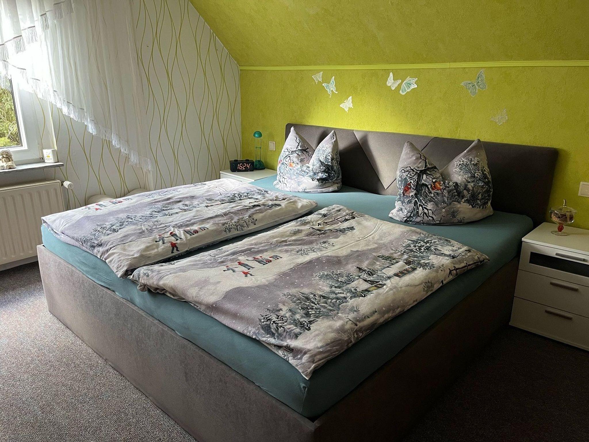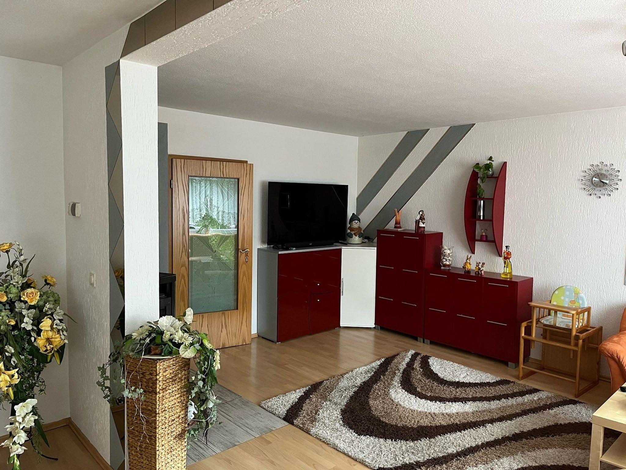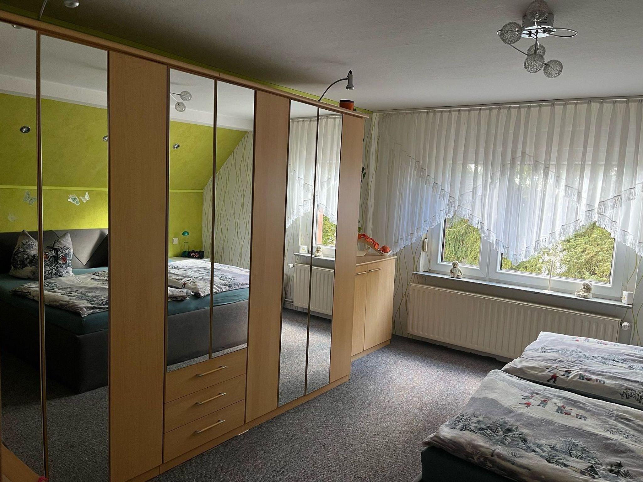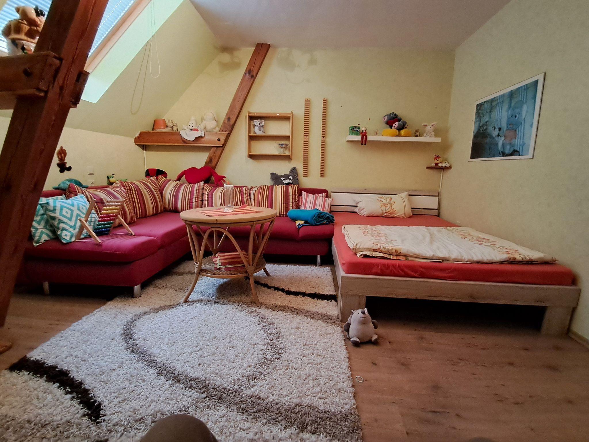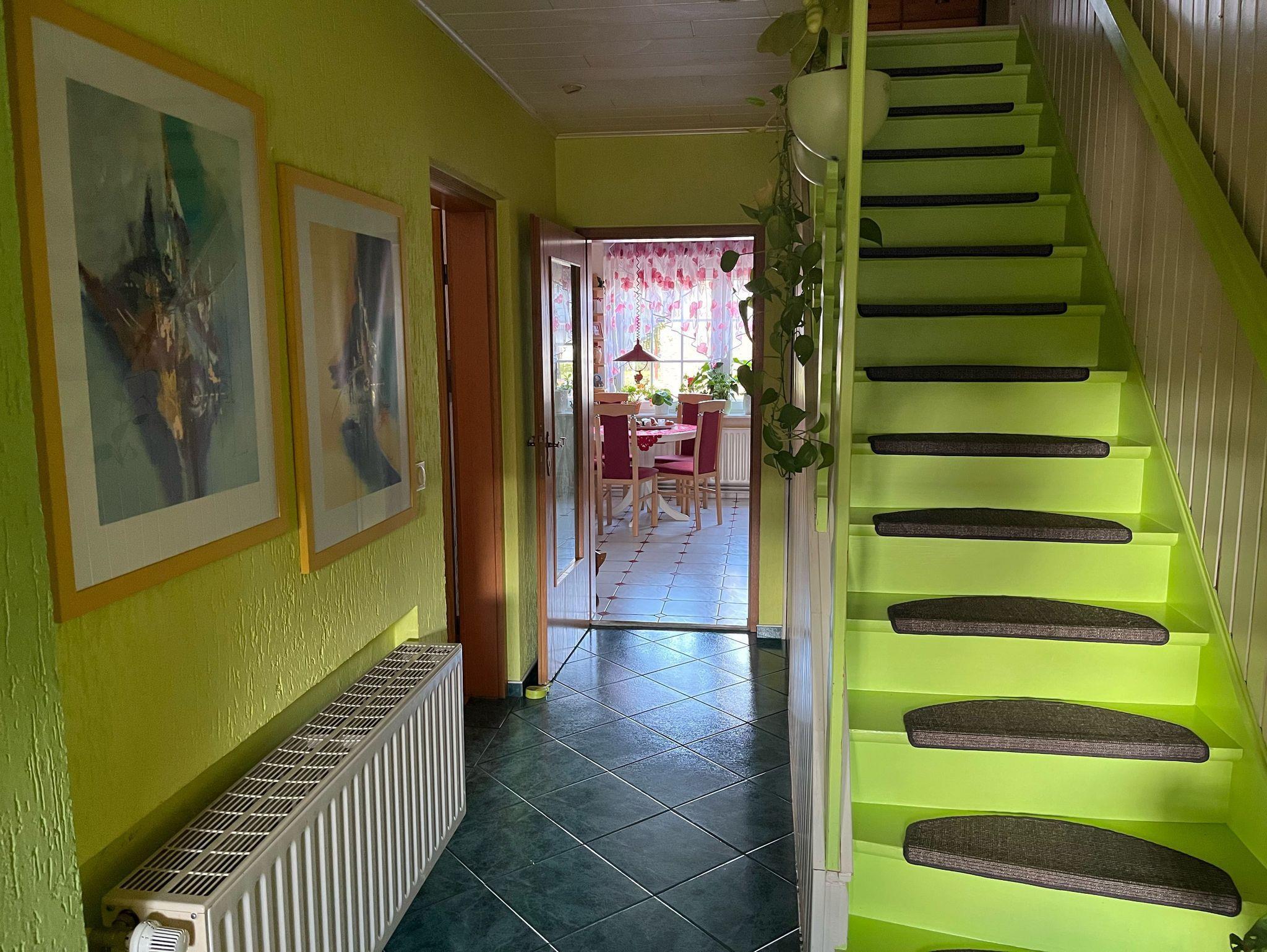 Komfortable Ferienwohnung in der 1. Etage in einer Doppelhaushälfte, mit Terrasse in ruhiger idyllischer Lage. Separater Hof und Hauseingang, mit Parkplatz. Spielplatz ca. 500 m entfernt (auf Anfrage auch Spielgeräte vorhanden).
