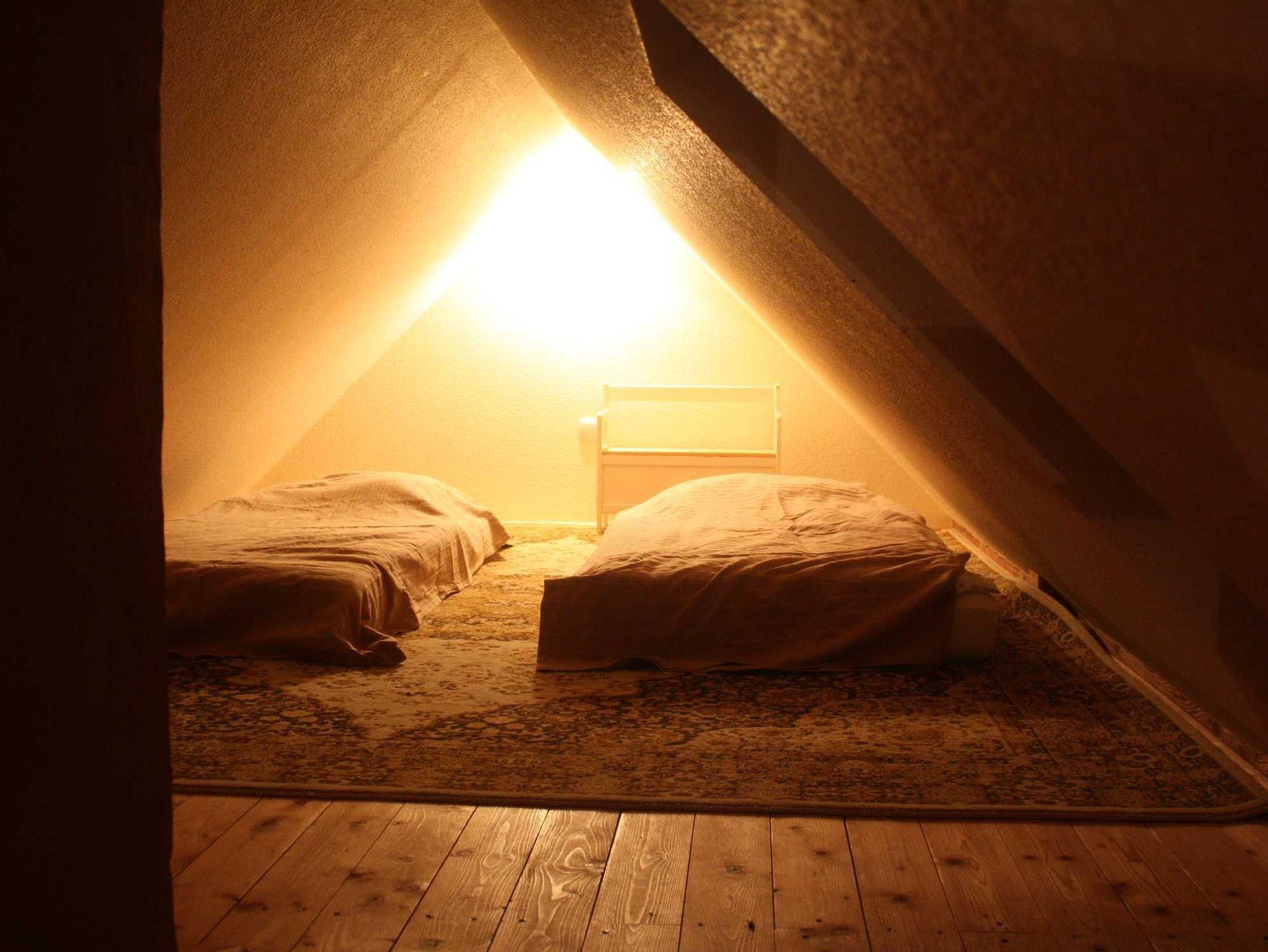 * von dort über eine gut begehbare Treppe erreichbar: der Schlafboden im Maisonettstil