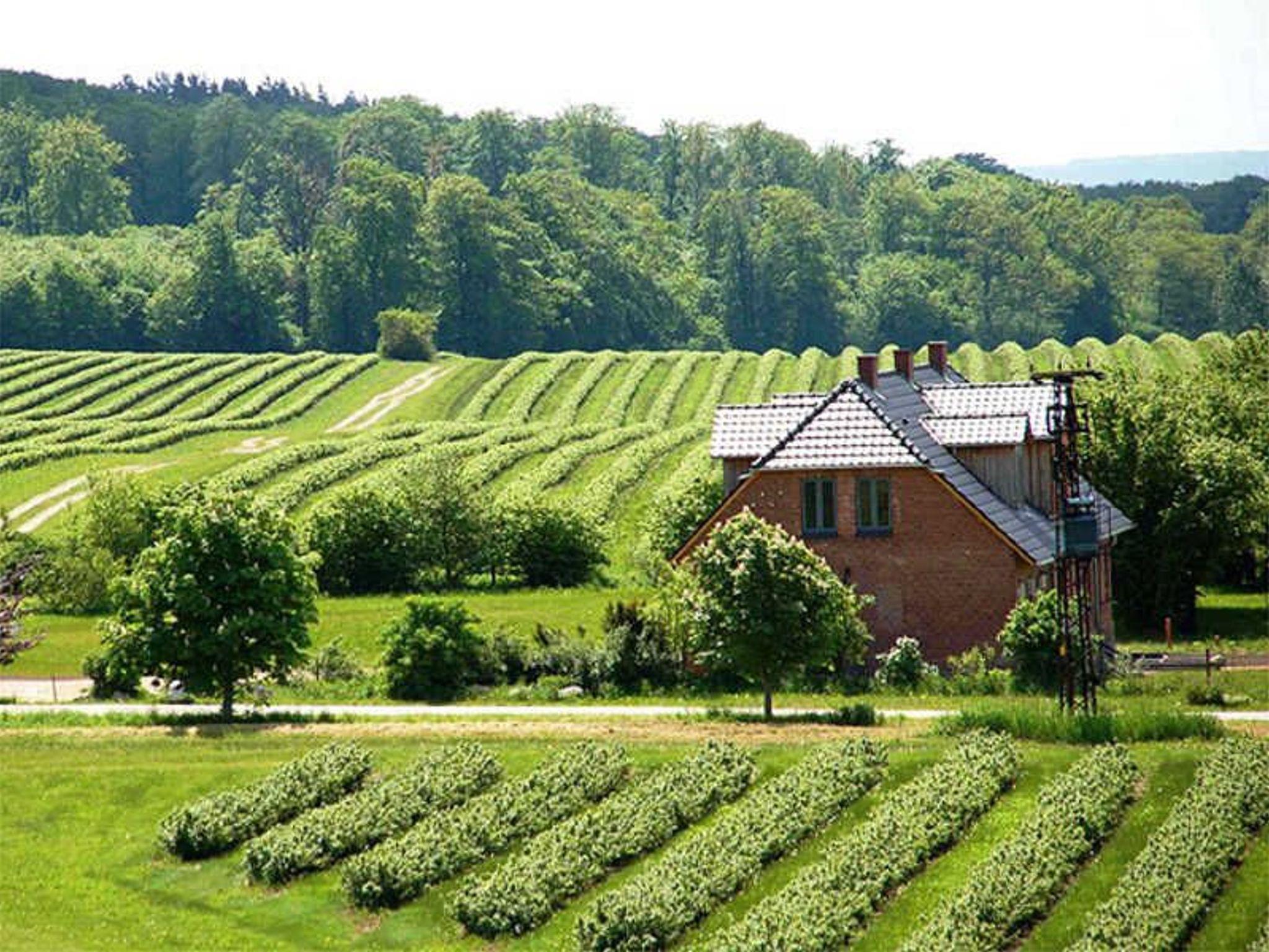 Die umliegenden Wiesen und weiten Felder, sanfte Hügel, Täler und urige Wälder warten darauf, zu Fuß oder mit dem Rad entdeckt zu werden. Schöne klare Seen, wie der nur ca. 1,5 km entfernte Glasower See laden zum Baden ein.
