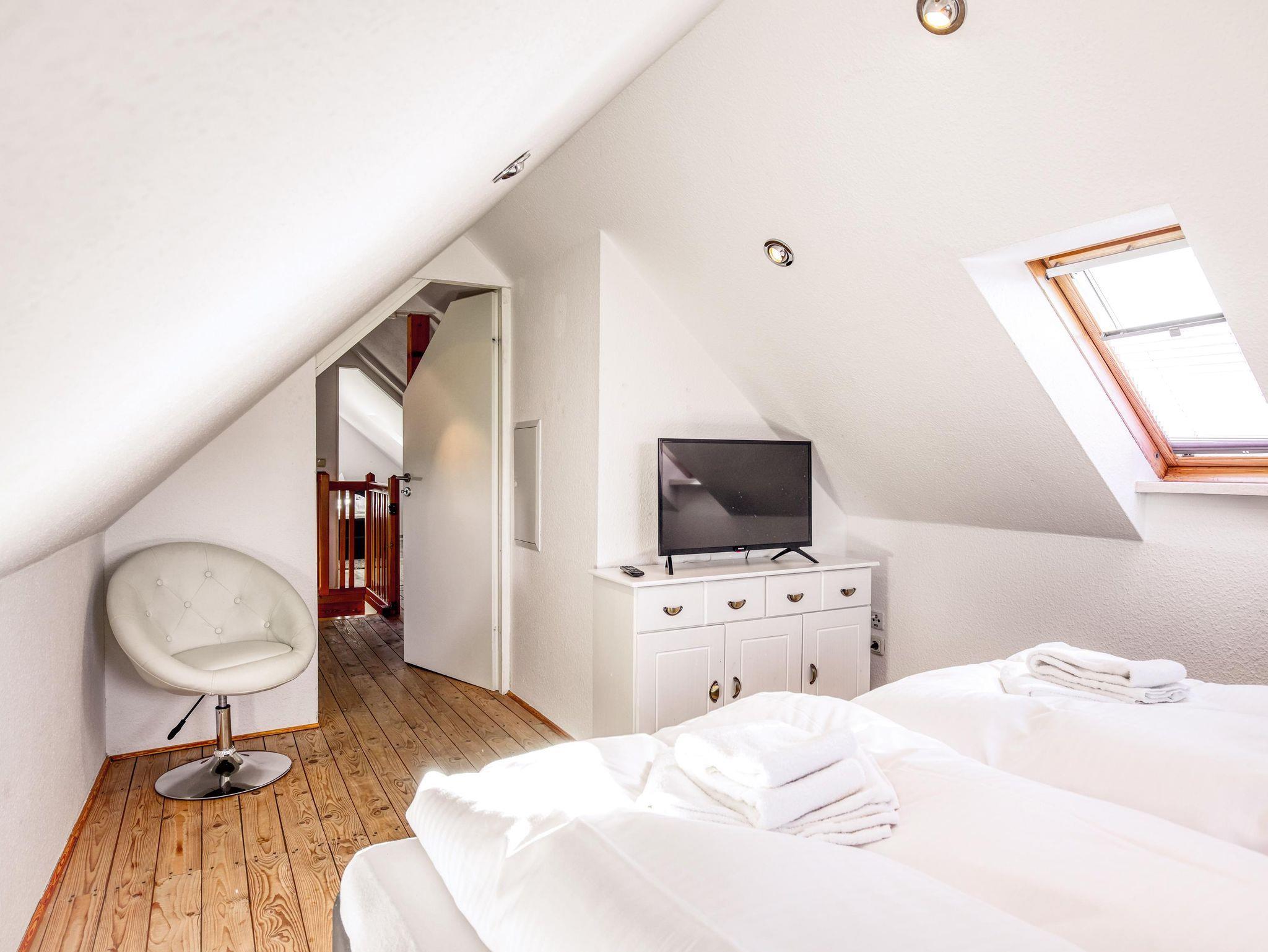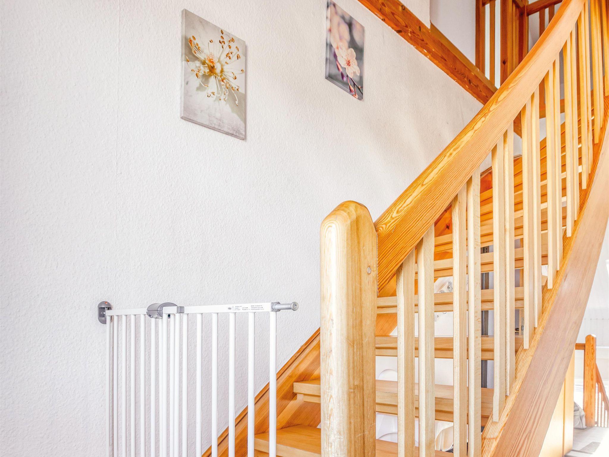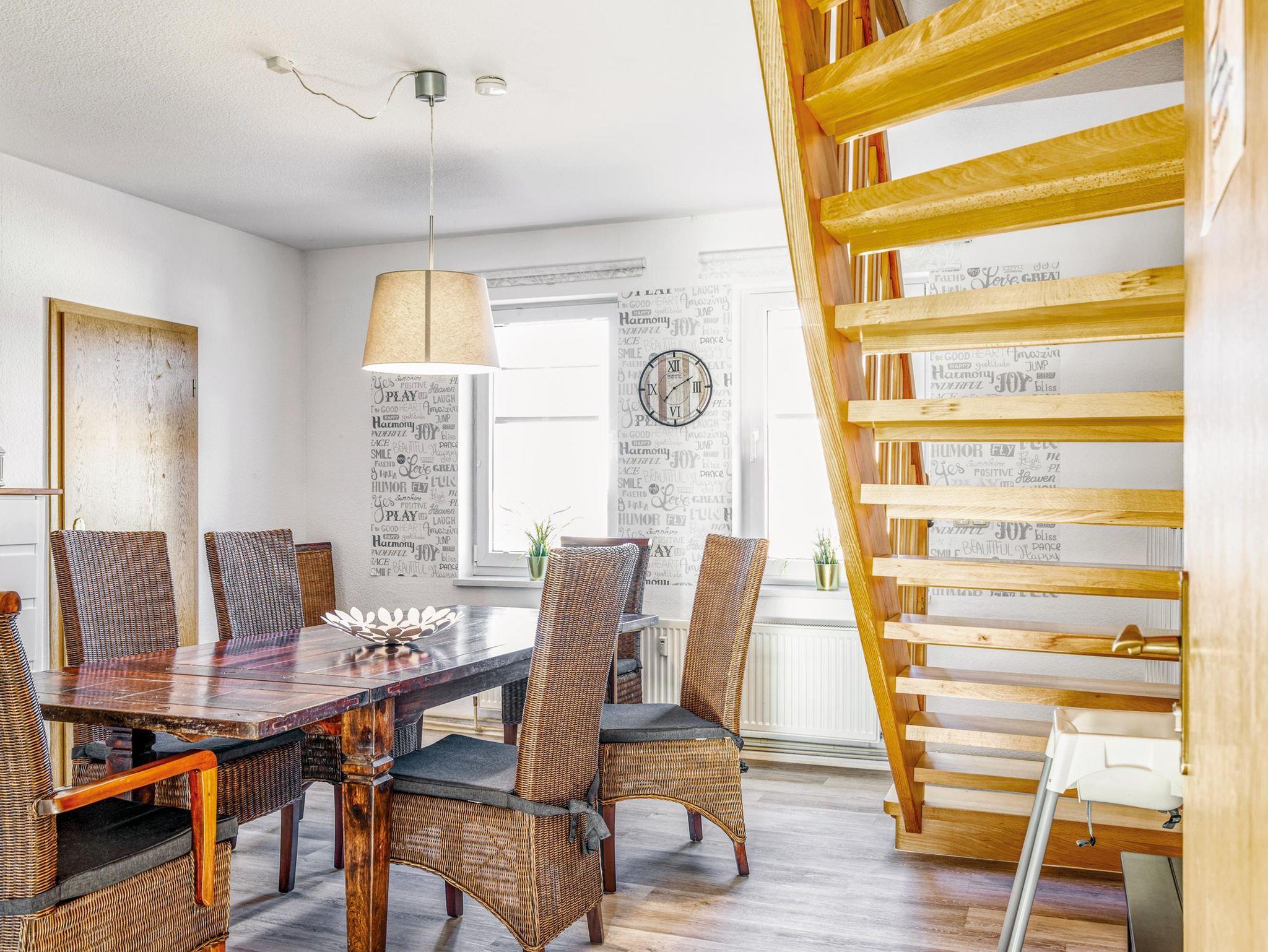 Sehr anspruchsvolle Ferienwohnung im Obergeschoss über 2 Etagen. Bietet Platz für bis zu 8 Personen und doch gibt es einen Wohlfühlfaktor! Separates Wohnzimmer mit drei Sofas und SAT-TV. 2 abschließbare Schlafzimmer und Snuzzelecke in der oberen Etage. 1 Schlafzimmer mit getrennten Betten in der unteren Etage. Große Küche mit Geschirrspüler, Backofen, Mikrowelle, E-Herd, Dunstabzugshaube, Kühlschrank. Küchengeräte: Kaffeemaschine, Wasserkocher, Toaster, Eierkocher. Anspruchsvolles Bad mit Dusche, ebenerdiger Einstieg. Waschmaschine und Trockner auf Anfrage im Keller nutzbar. Außensitzbereich. Parkmöglichkeiten auf der Straße. Bettwäsche/Handtücher in der Erstausstattung vorhanden. Endreinigung, Wasser- und Energiekosten inklusive.