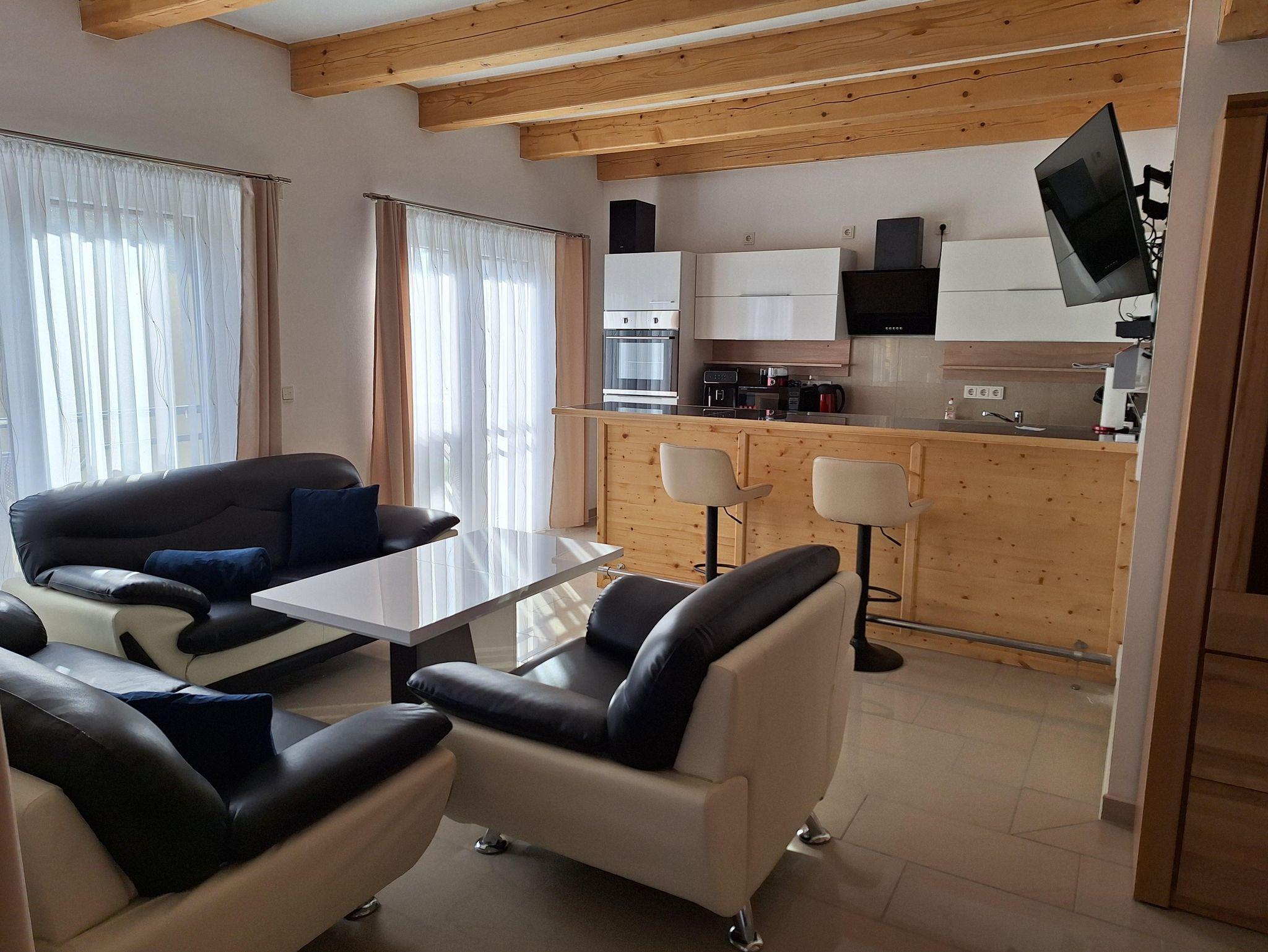 Die Ferienwohnung ist mit allem notwendigen für Ihren Aufenthalt ausgestattet. Es erwarten Sie 2 Schlafzimmer mit 2 Bädern, ein Wohnzimmer mit offener Küche.