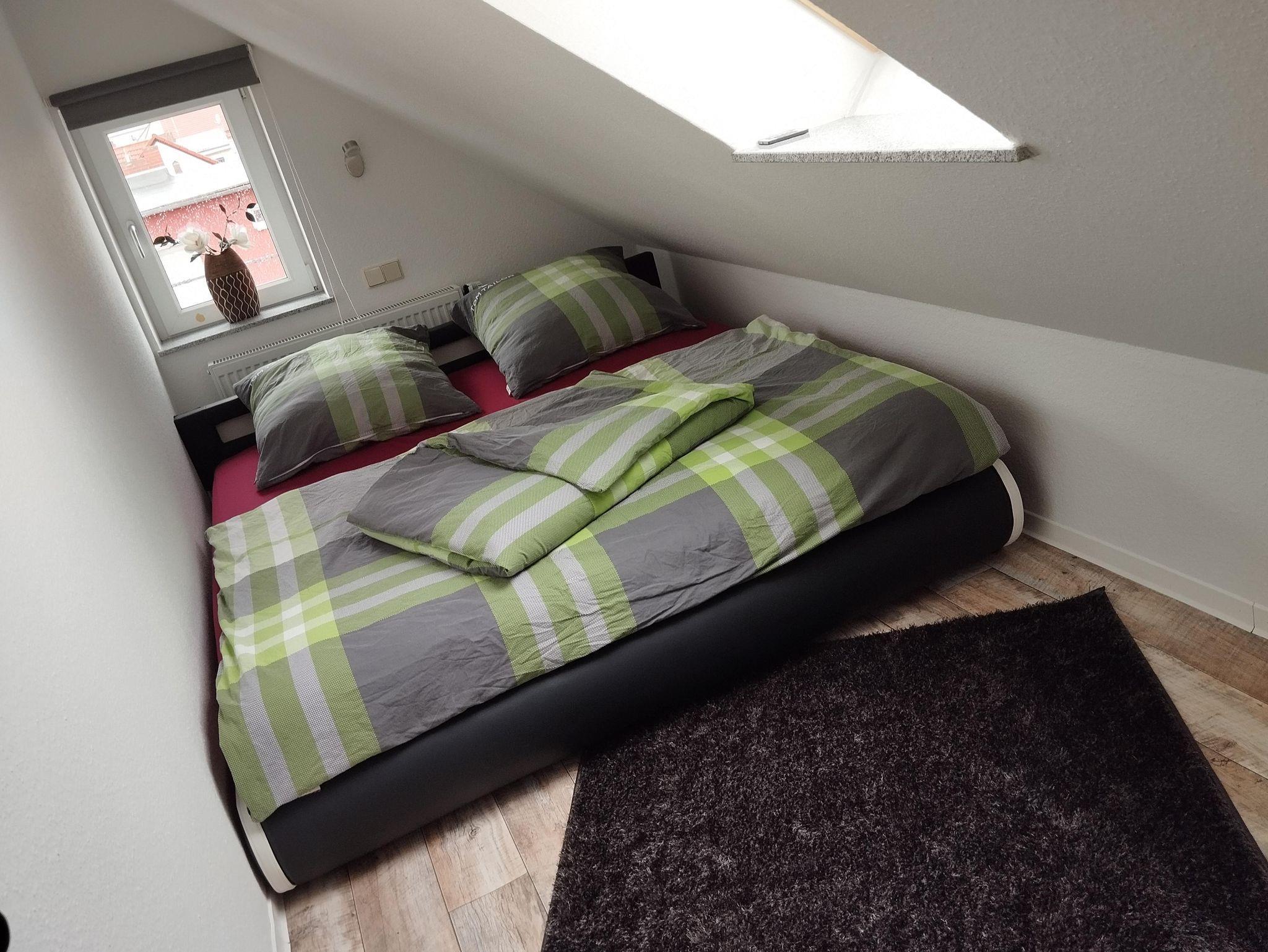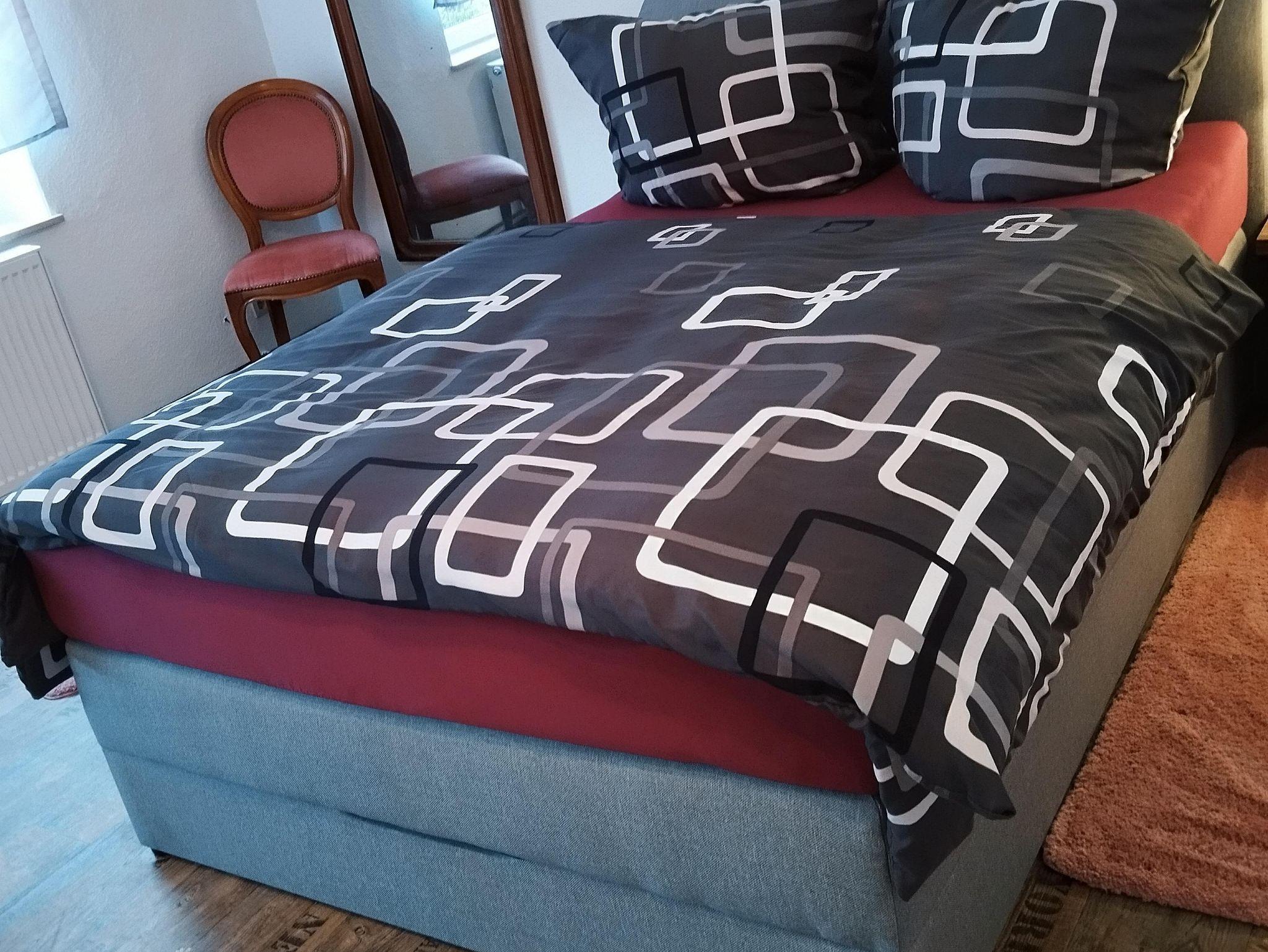 Die Ferienwohnung/Etagenwohnung befindet sich in der 1./2. Etage und bietet auf 78m² Wohnfläche Wohnzimmer mit TV, zwei getrennten Schlafzimmer mit Doppelbett. Eine Aufbettung für 2 weitere Personen im Wohnzimmer ist möglich. Bad mit Badewanne/ WC großzügig gestaltet. Küche/Einbauküche mit E-Herd/Ceranfeld, Kühlschrank, Mikrowelle, Toaster, Wasserkocher, Kaffeemaschine.