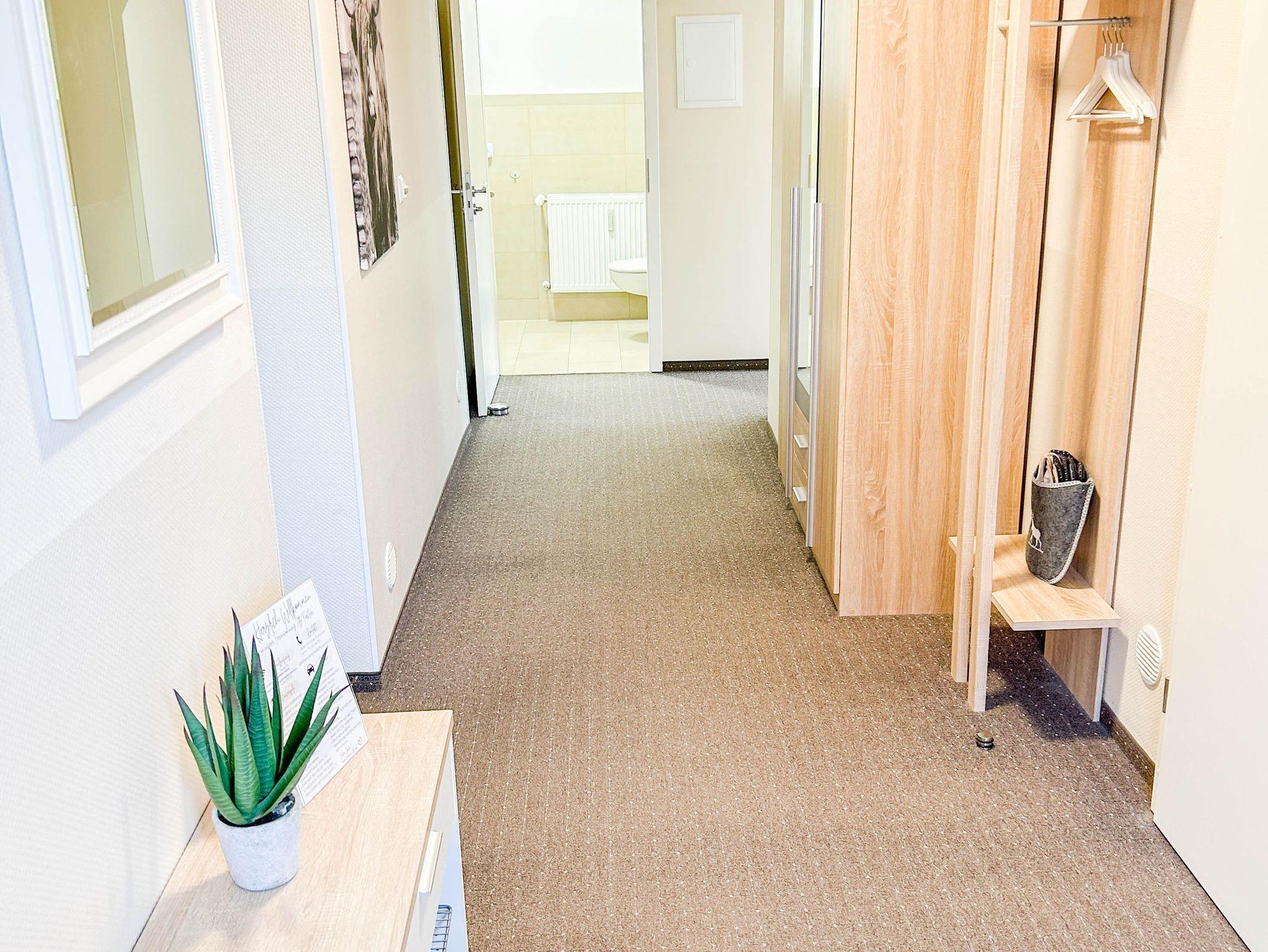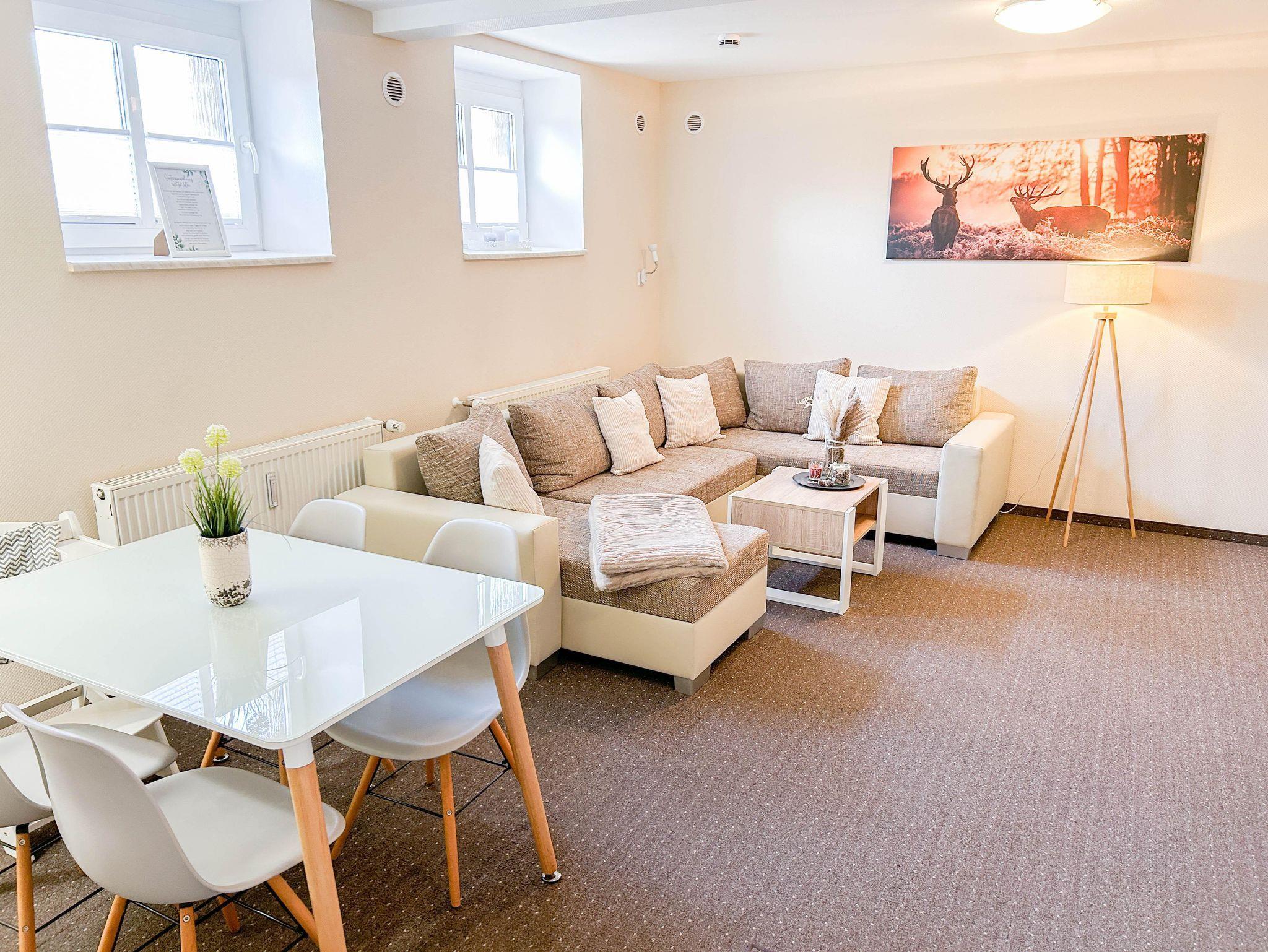Unser komfortables 72 m² Apartment befindet sich im ruhigen Stadtzentrum von Thale und ist ideal für 1-4 Personen. Die Ferienwohnung verfügt über ein komplett ausgestattetes Küchen-Wohnzimmer mit Geschirrspüler, Filterkaffeemaschine, Wasserkocher, Toaster, Cerankochfeld, Ofen, Kühlschrank mit Gefrierfach und Mikrowelle. Der Wohnbereich ist mit einer bequemen Eckcouch und einem großen Fernseher (inklusive Magenta TV) ausgestattet. Die Ferienwohnung hat zwei gemütliche Schlafzimmer, die jeweils mit einem Doppelbett (180x200) und einem Smart-TV ausgestattet sind. Darüber hinaus steht auf Wunsch für die kleinen Gäste ein Reisebett (mit Matratze + Bettlaken und, falls gewünscht, mit Bettwäsche), ein Kinderhochstuhl sowie ein Töpfchen und ein Toilettensitzverkleinerer zur Verfügung. Das Apartment verfügt über eine Terrasse, einen separaten Eingang und einen Parkplatz auf dem Grundstück. Bettwäsche und Handtücher (in der Erstausstattung) sowie WLAN sind inklusive. Nichtraucherwohnung / Haustiere sind nicht erlaubt.