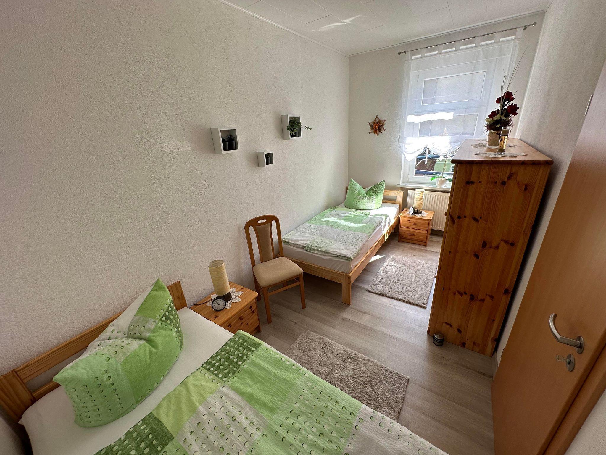 Vermiete komfortable, modern eingerichtete Ferienwohnung in Thale/Harz. Sie verfügt über 2 seperate Schlafzimmer ( 1 Schlafzimmer mit Doppelbett, 1 Schlafzimmer mit 2 Einzelbetten) , gemütliches Wohnzimmer mit TV und Radio/CD/DVD, einer gut ausgestatteten Küche mit Einbauherd + Mikrowelle, Backofen, Geschirrspüler und Kühlschrank. Geräumiges Bad mit DU und WC.