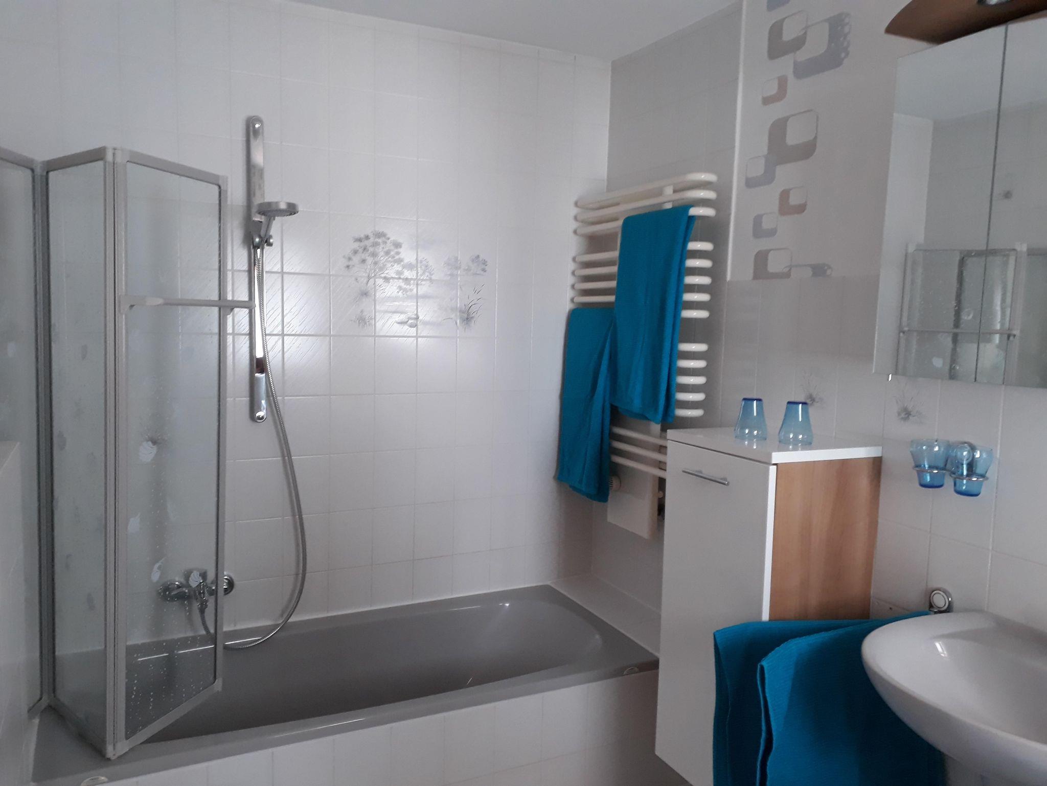 Badezimmer mit Badewanne, Bidet, WC, Fön