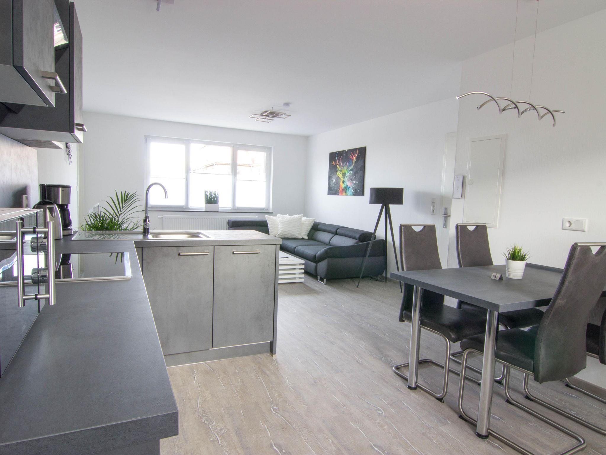 Jede 65 qm große Wohnung besitzt eine komplett ausgestattete Wohnküche mit Geschirrspüler,Kaffeemaschine,Wasserkocher,Toaster,Ceranfeld,Backofen,Kühlschrank mit Gefrierfach u Mikrowelle. Der Wohnbereich ist mit Fußbodenheizung,Eckcouch u Smart-TV(inkl. Magenta-TV)ausgestattet.