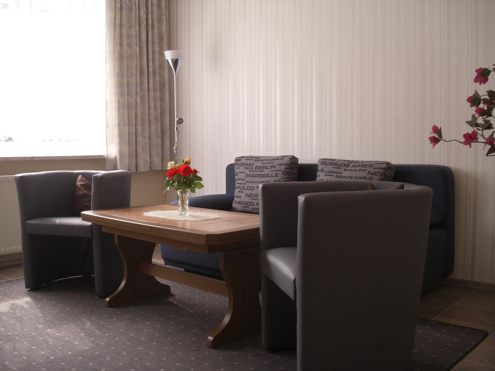 Die Ferienwohnung ist mit ca. 51 Quadratmetern bestens geeignet für 2-3 Personen und befindet sich im Erdgeschoß des Hauses. Die Vermietung erfolgt ganzjährig. Mit Wohnzimmer, Küche mit integriertem Essbereich, Schlafzimmer, Dusche/WC und Flur mit Garderobe ermöglichen wir Ihnen einen entspannten und angenehmen Urlaub. Babybett vorhanden. Das Wohnzimmer ist mit einer gemütlichen Sitzecke ausgestattet und bietet Ihnen natürlich auch Fernsehen und Radio. Eine kleine Auswahl an Gesellschaftsspielen finden Sie ebenfalls hier. Im Schlafzimmer befindet sich ein Doppelbett. Dieses kann selbstverständlich auch einzeln gestellt werden. Außerdem können Sie das Kinderbett nutzen, welches ausziehbar ist und damit Platz für bis zu zwei Kindern bietet. Die Küche entspricht dem komfortablem Urlaubsniveau mit Kühlschrank, Elektroherd, Spüle, Kaffeemaschine, Wasserkocher, Toaster usw., selbstverständlich mit separaten Eßplätzen. Ihre Fahrräder können im Grundstück abgestellt werden. Das Mitbringen von Haustieren ist nur nach vorheriger Absprache erlaubt.