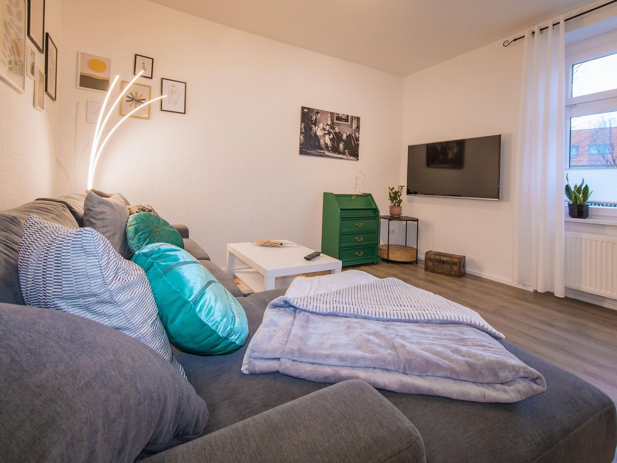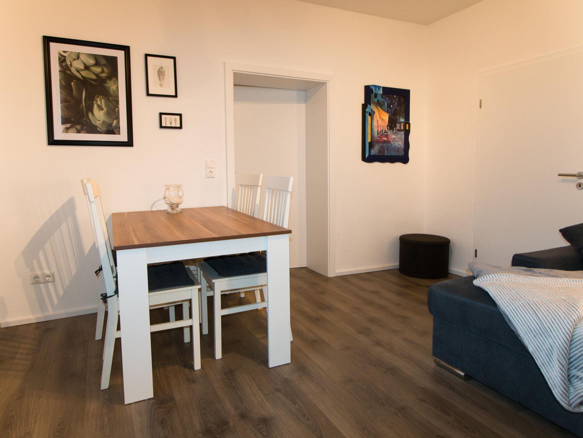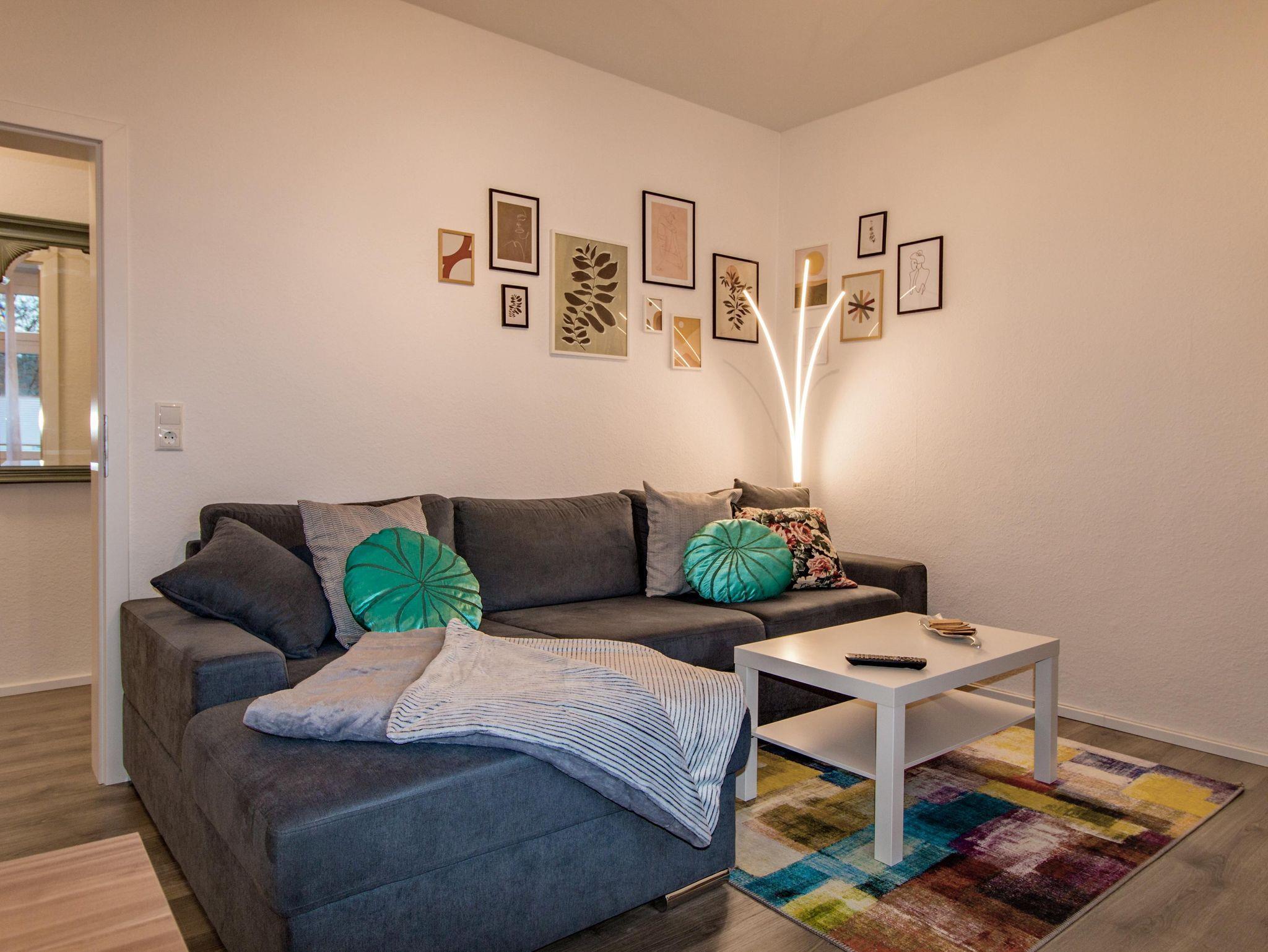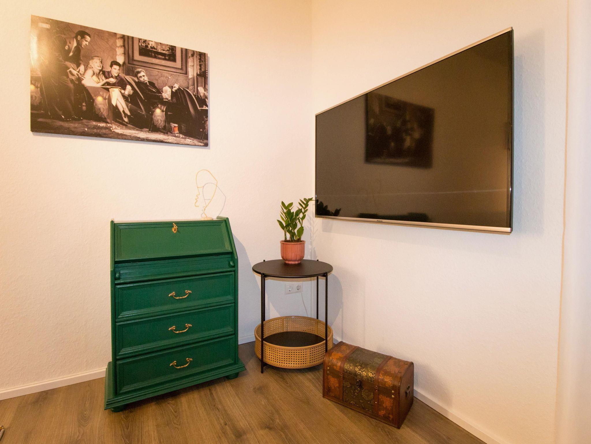 Das Wohnzimmer wurde mit viel Liebe zum Detail eingerichtet und bietet eine Schlafmöglichkeit für 2 Personen durch eine Couch, die mit nur wenigen Handgriffen in eine Schlafcouch umfunktioniert werden kann. Im Wohnzimmer befinden sich ein Smart-TV und ein Esstisch für 6 Personen.