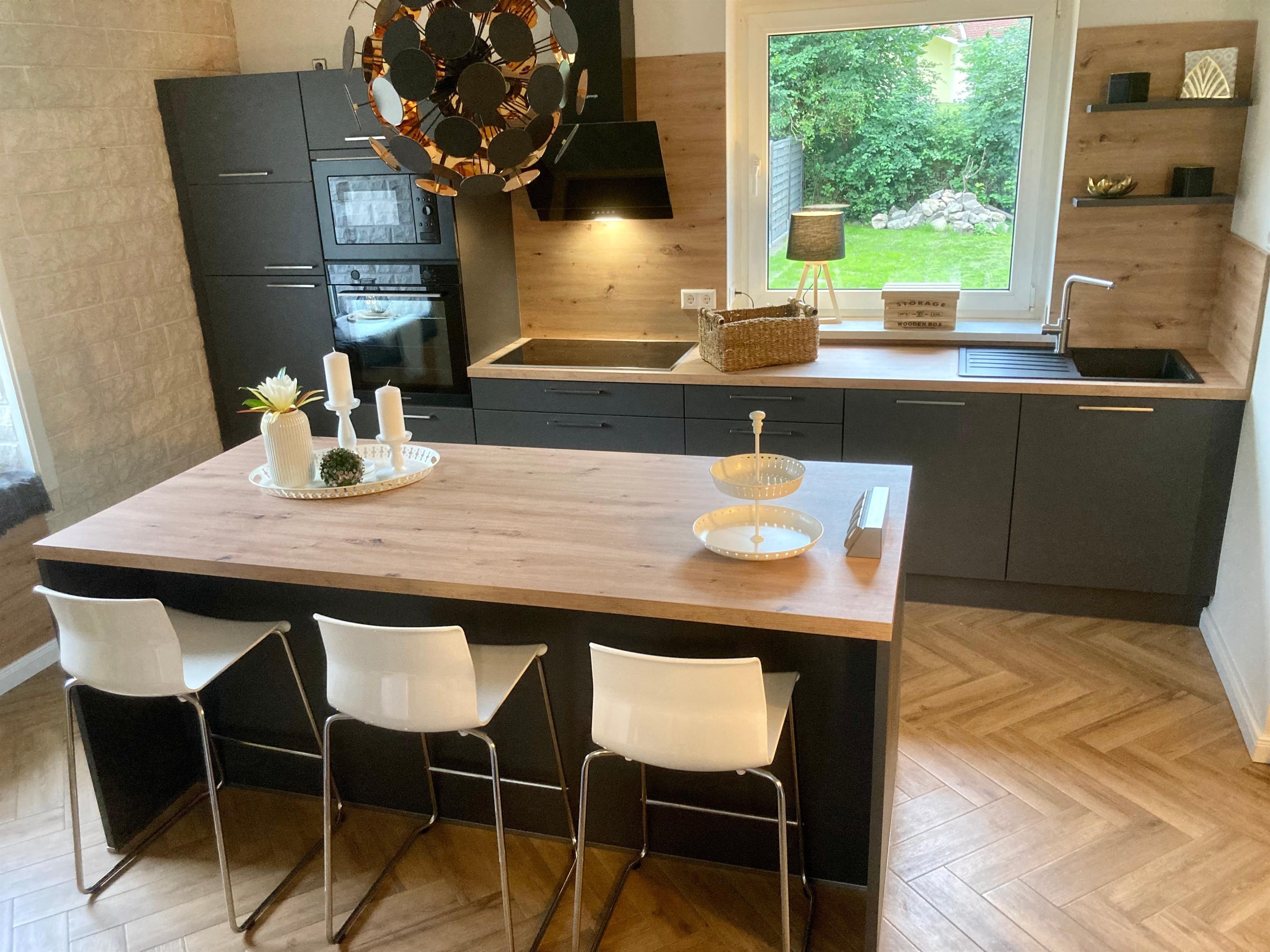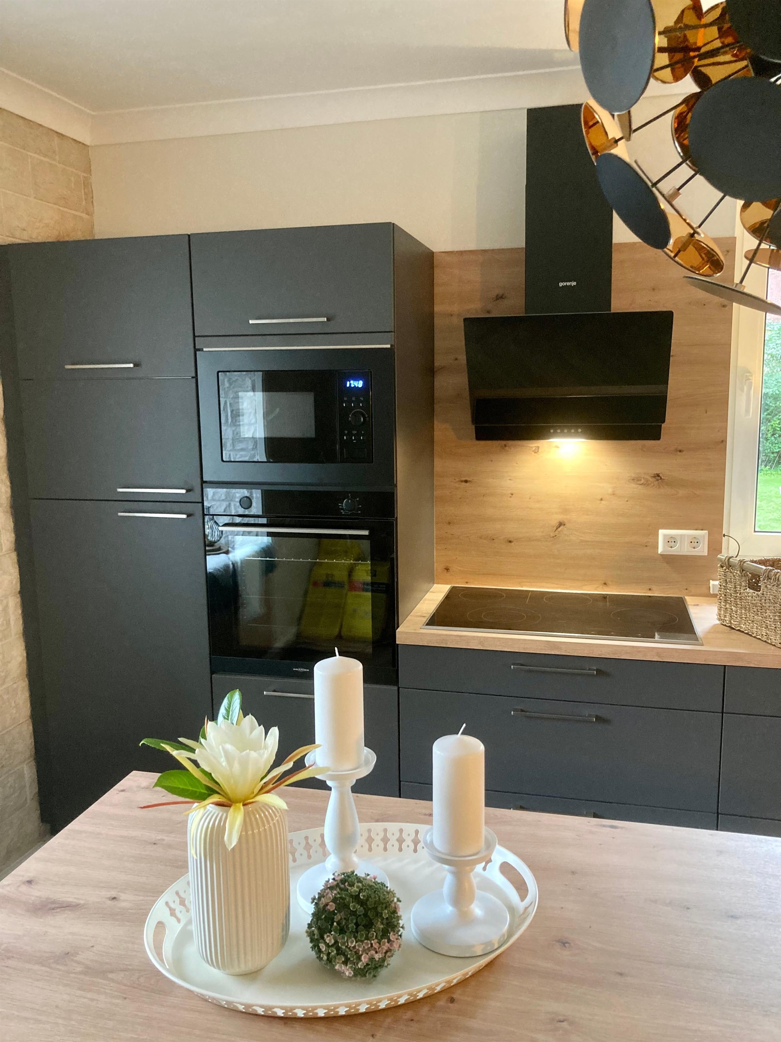 * Moderne, voll ausgestattete Küche mit hochwertigen Geräten (Spülmaschine, Backofen, Induktionskochfeld, Kühlschrank mit Gefrierfach, Kaffeemaschine, Toaster, Wasserkocher, u.v.m.)