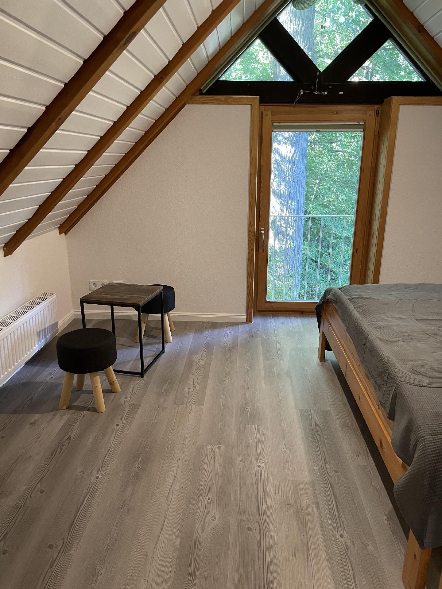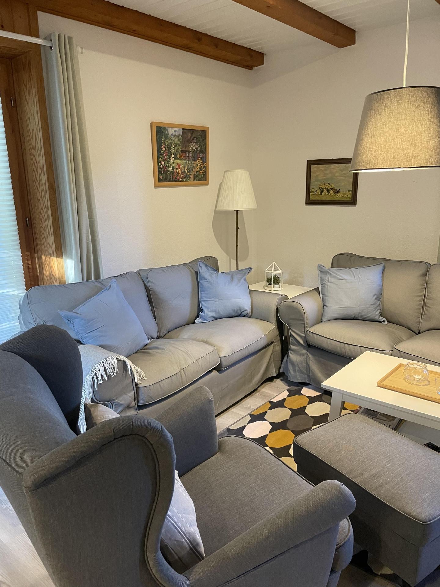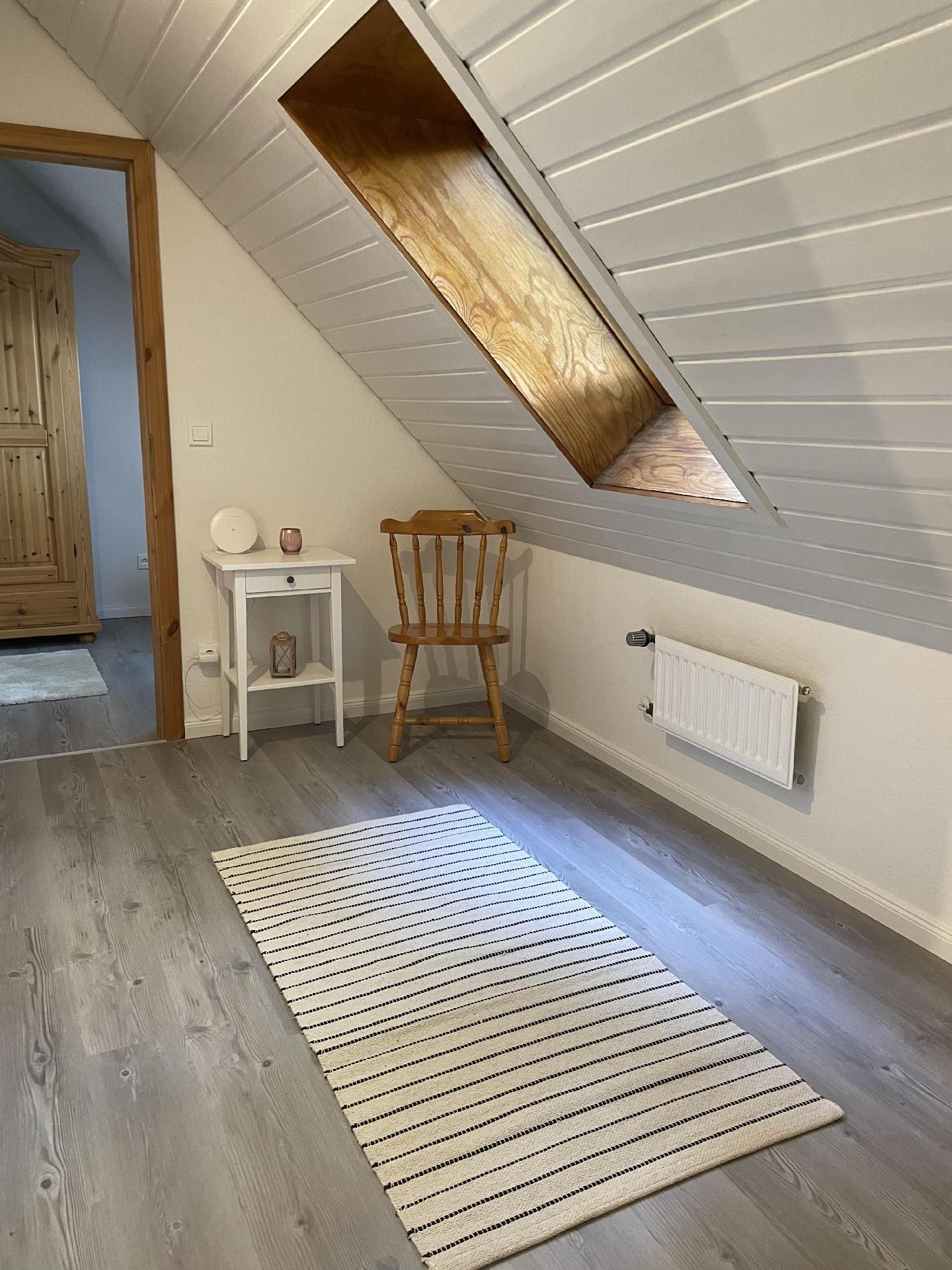 The ground floor has a very cosy and spacious living room with a fireplace stove, a rustic kitchen and dining corner, satellite TV, wireless Internet access and a stereo system. There is a very well-equipped kitchen with a dishwasher, fridge with freezer compartment, stove with oven, toaster, coffee machine and an electric mixer. The separate bedroom is furnished with a double bed (180 x 200cm) and there is also a little storage room. A child’s bed is available on request. The shower room with a private sauna with seating for four people provides a feeling of well-being. There is also a separate WC with a washbasin. The attic has a rustic living and sleeping room with cosy sloped ceilings paneled with wood, a sleeping corner with a double bed (180 x 200cm), a lounge corner with comfortable seating and another separate bedroom with two single beds (90 x 200cm), as well as a shower room with a WC. There is a shelf with interesting literature and board games. All the rooms have gas central heating and the living room, hallway, shower room an WC on the ground floor are fitted with under-floor heating.