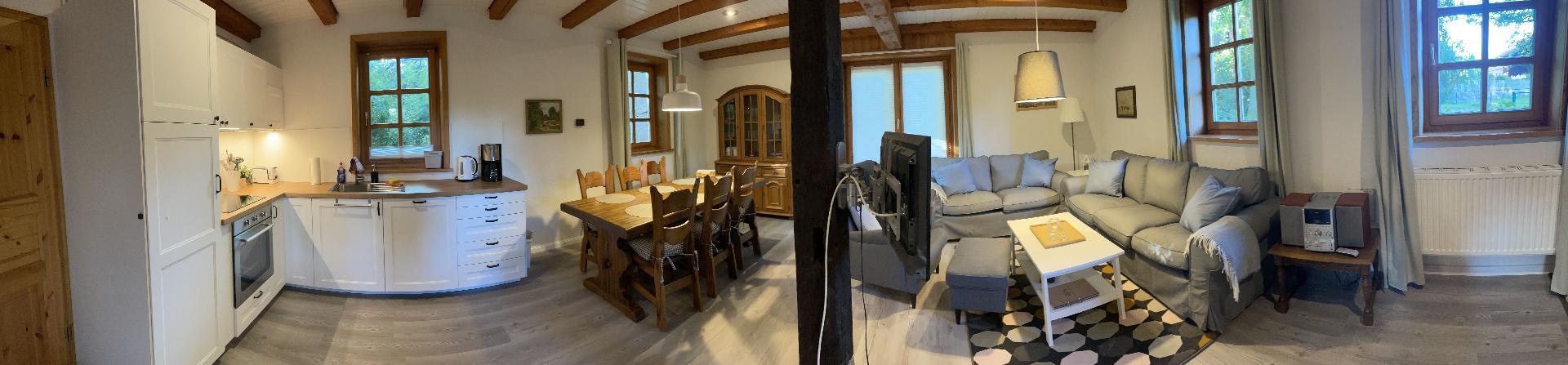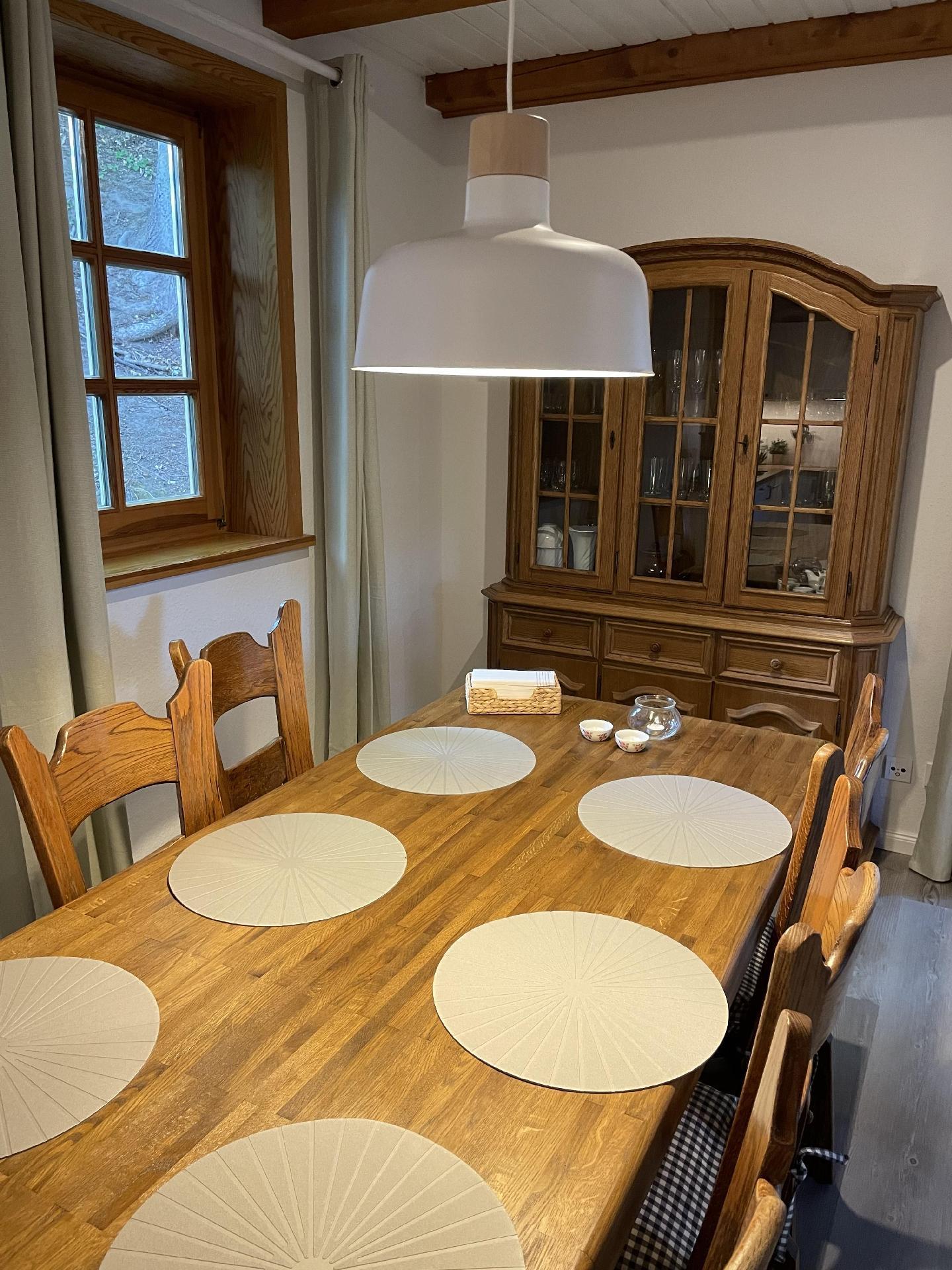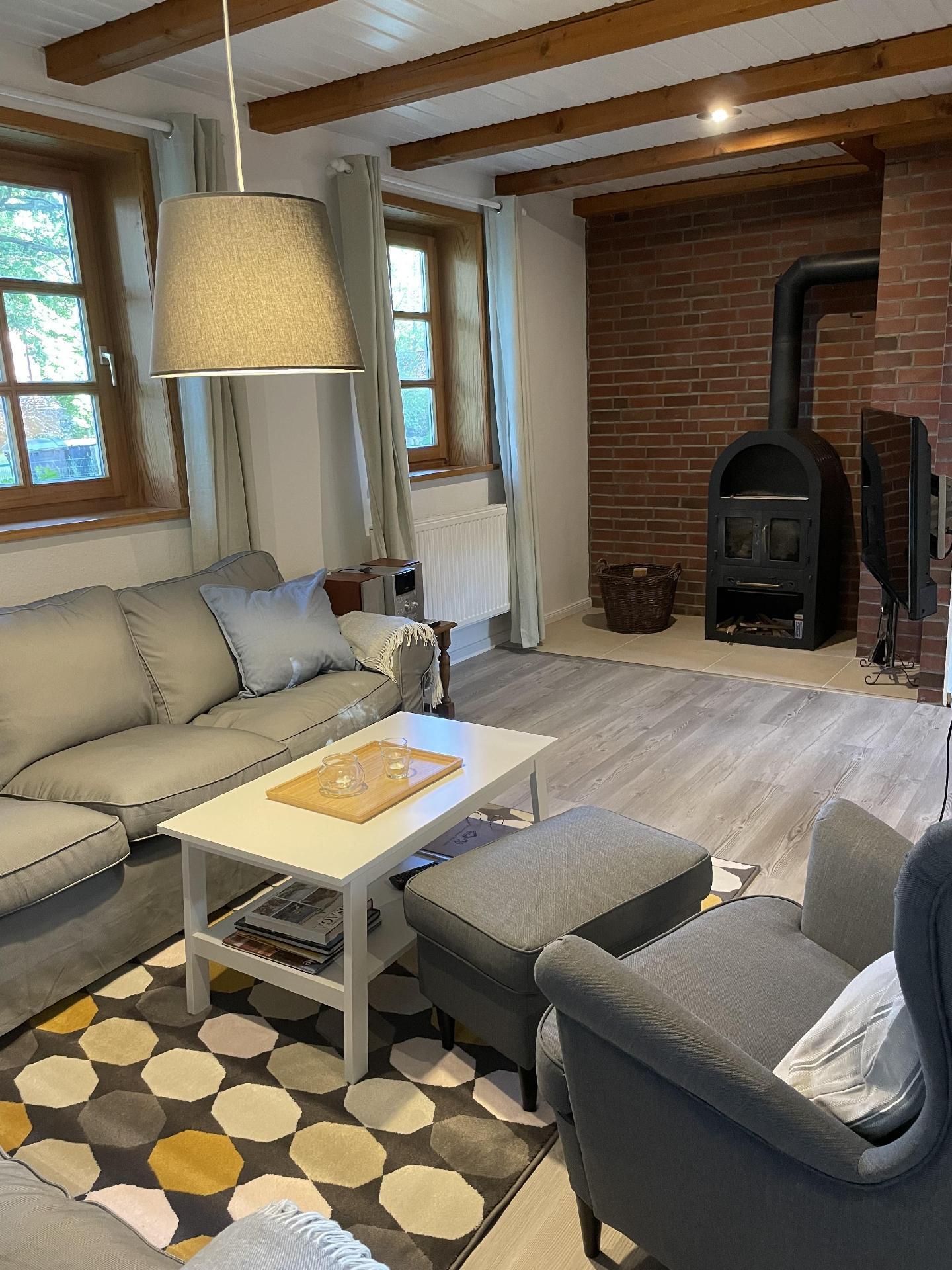 The holiday house was restored in the old timber-framed style. It has a rustic country interior with mostly wooden ceilings with some exposed beam structures and new, comfortable furnishing with a rustic atmosphere, ideal for a large family. It enjoys a quiet and rural location surrounded by nature.