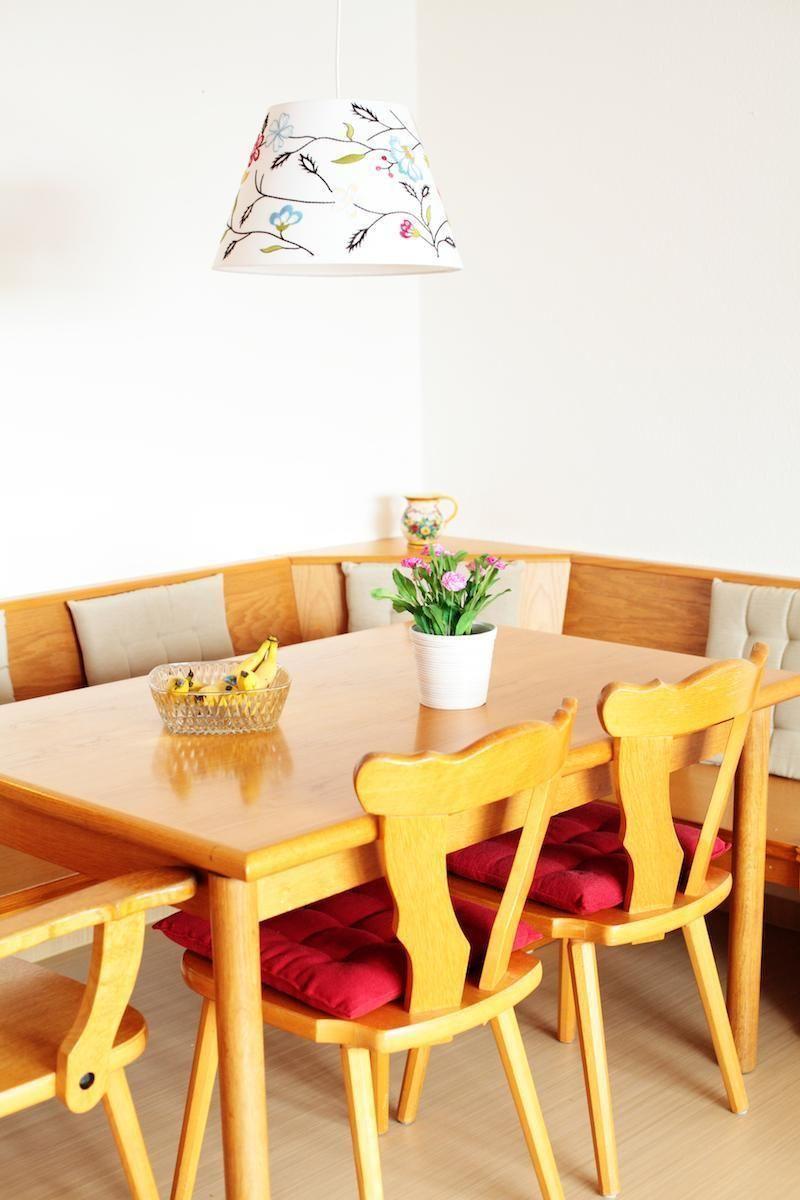 With six beds and a cot, the flat can accommodate a maximum of seven people. From the living room terrace you have a wonderful view of the Allgäu mountains. The bedroom windows open into large, bright light wells. Washing machine and tumble dryer are available in the house. Please bring your own bed linen, towels and tea towels. For small children there are two high chairs, a cot, 70x140 cm with removable bars, a buggy and a sledge for general use. Internet is not available in the flat.