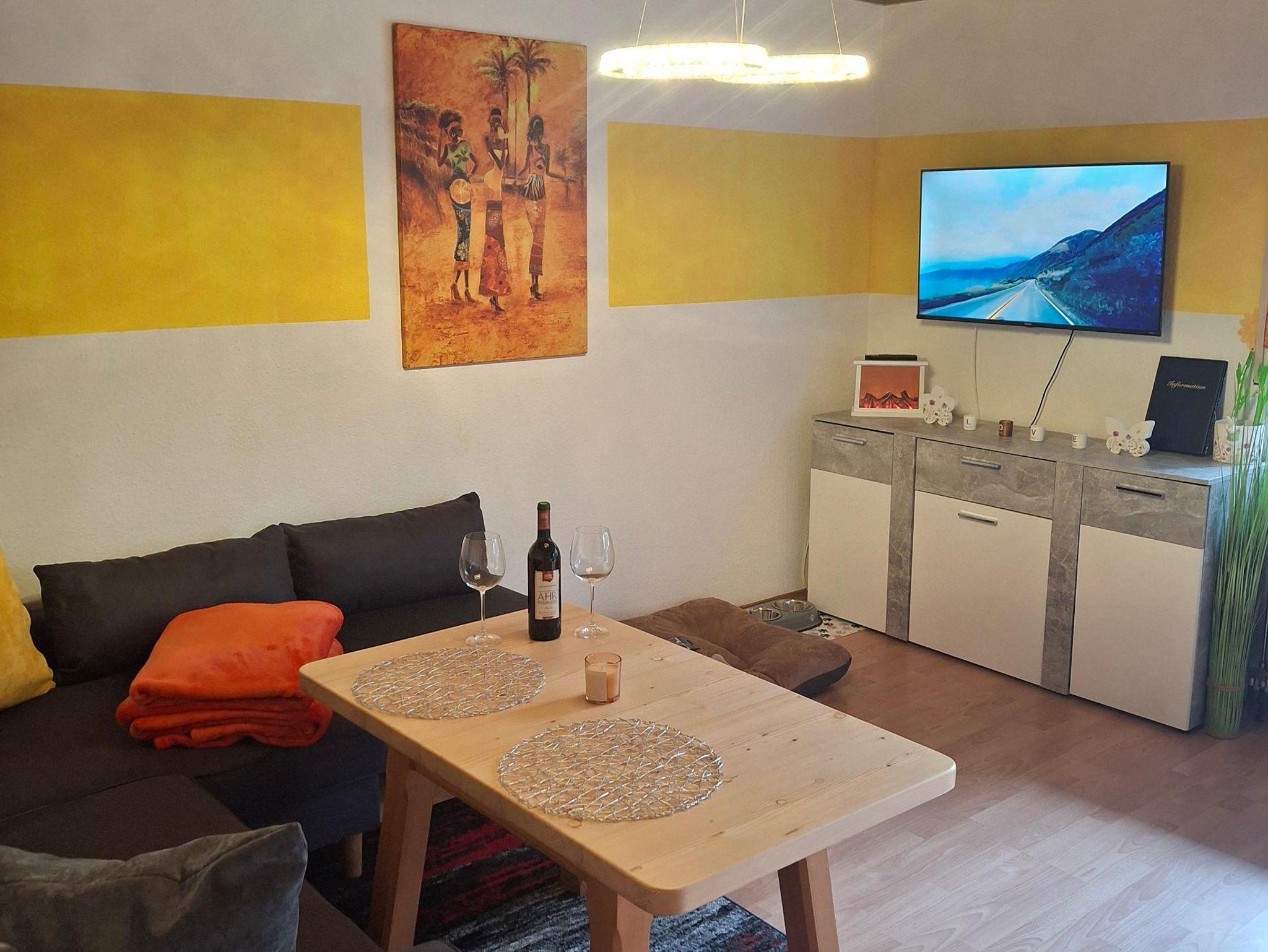 Die Wohnung befindet sich im 1 Stock. Sie ist ausgestattet...1 Flur... 1 Schlafzimmer mit Boxspringbett...1 Bad mit Dusche...1 Wohn - Küche voll ausgestattet und ein sehr schöner Balkon mit Berg und Waldblick.
