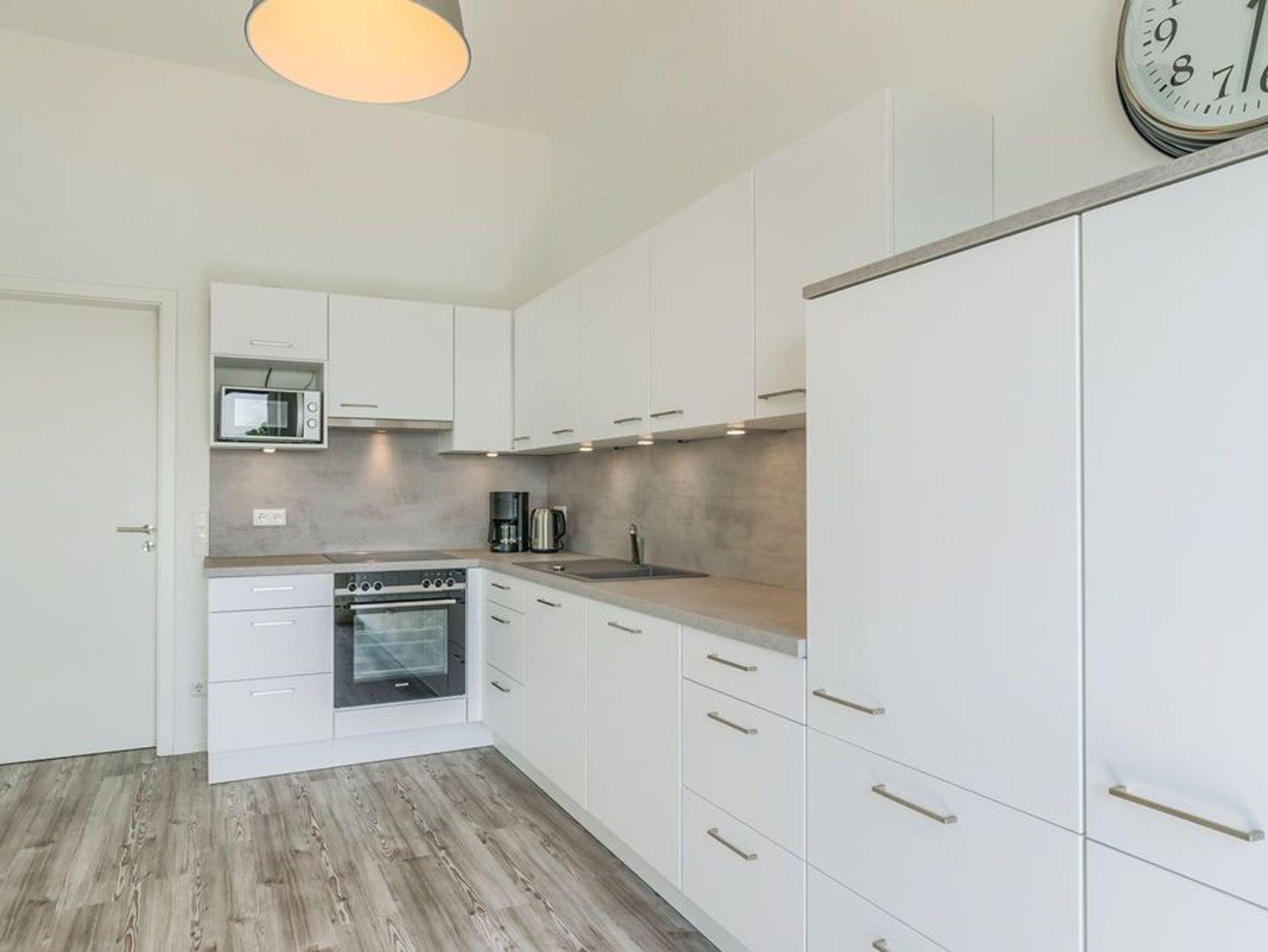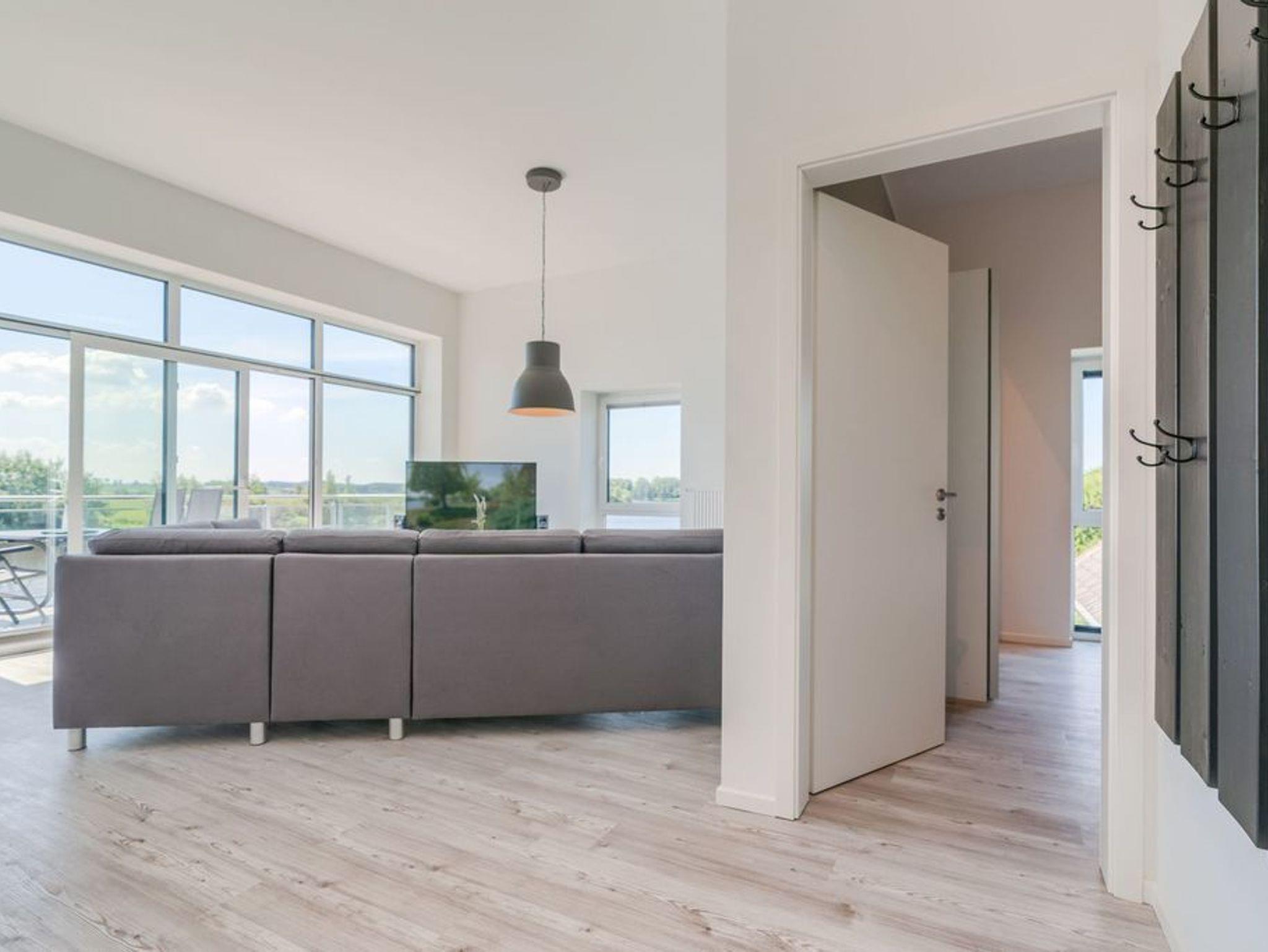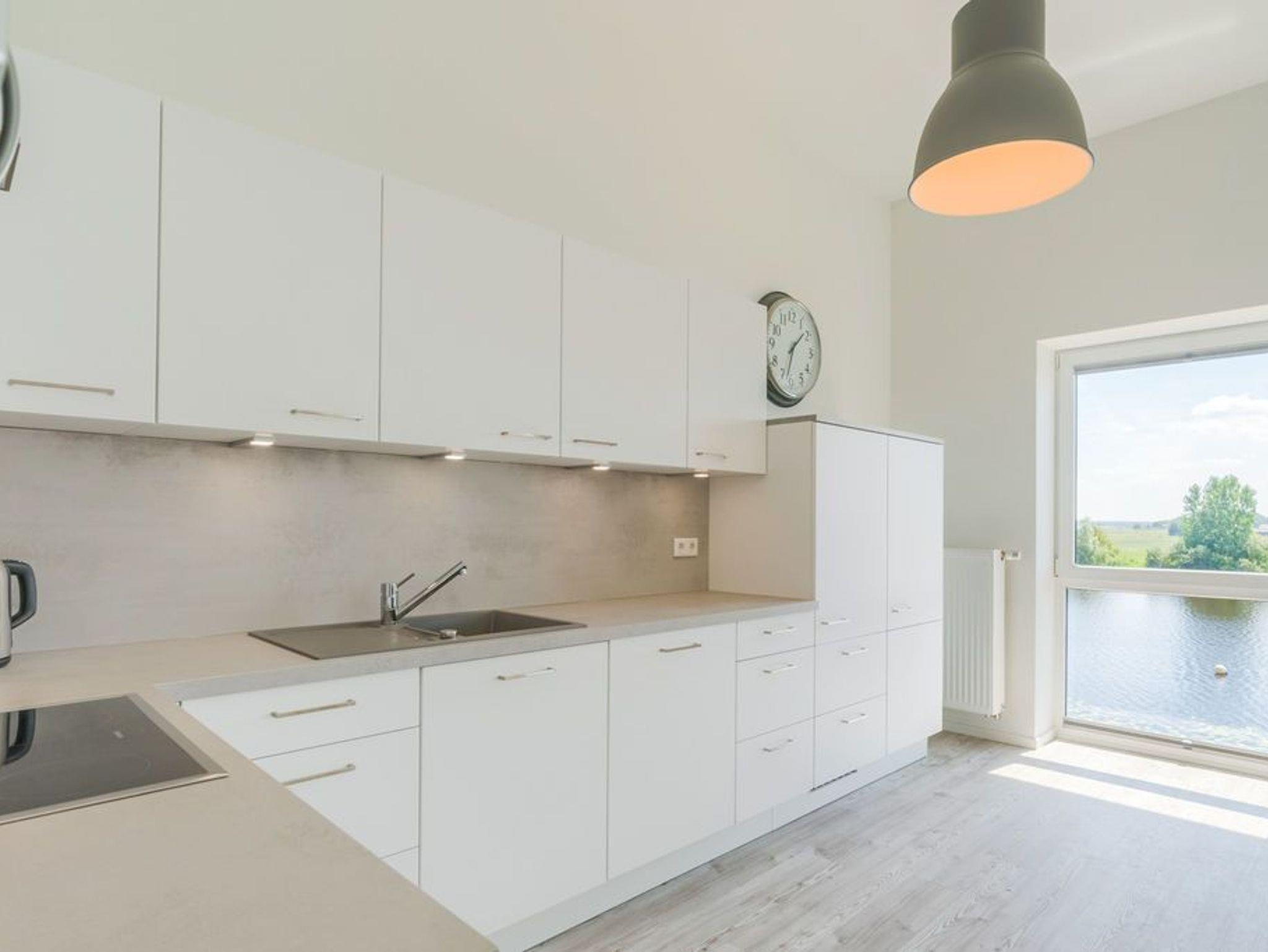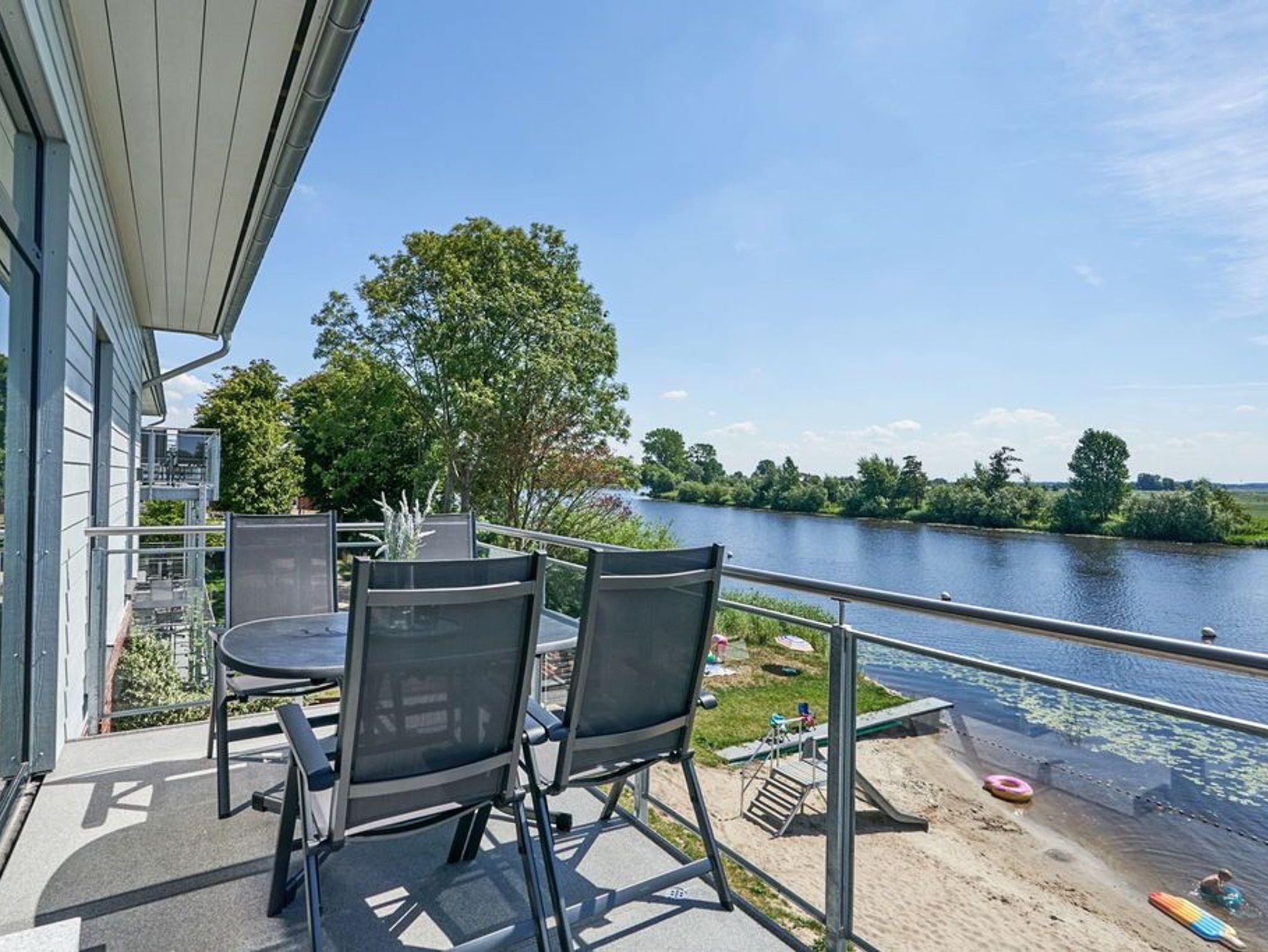 Der gemeinsame Wohn- und Essraum verfügt über eine komfortable Einbauküche mit Geschirrspüler, die alle Wünsche erfüllt. Am großen Esstisch finden Sie für 6 Personen ausreichend Platz. Hier können Sie gemeinsame Spieleabende und ausgedehnte Mahlzeiten verbringen, während Sie draußen auf der Eider die Boote entlang ziehen sehen.