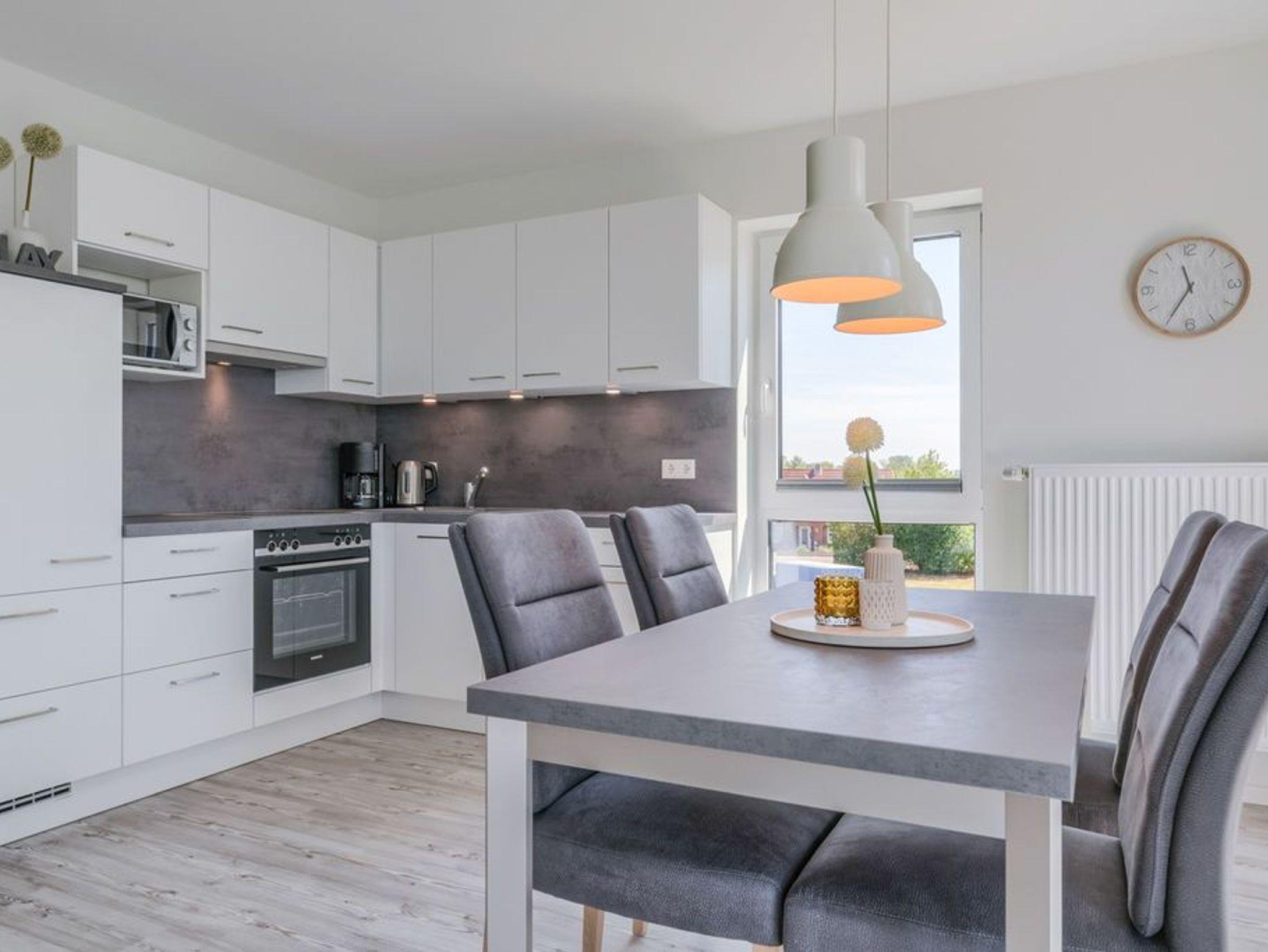 In der komfortablen Einbauküche finden Sie alles, was Sie zum Zubereiten Ihrer Lieblingsspeisen benötigen und während Sie bei einem aromatischen Kaffee Ihr Frühstückstoast genießen, begleitet Sie die aufgehende Sonne durch die ebenfalls bodentiefen Fenster nach Osten und Süden bis in den späten Nachmittag hinein.