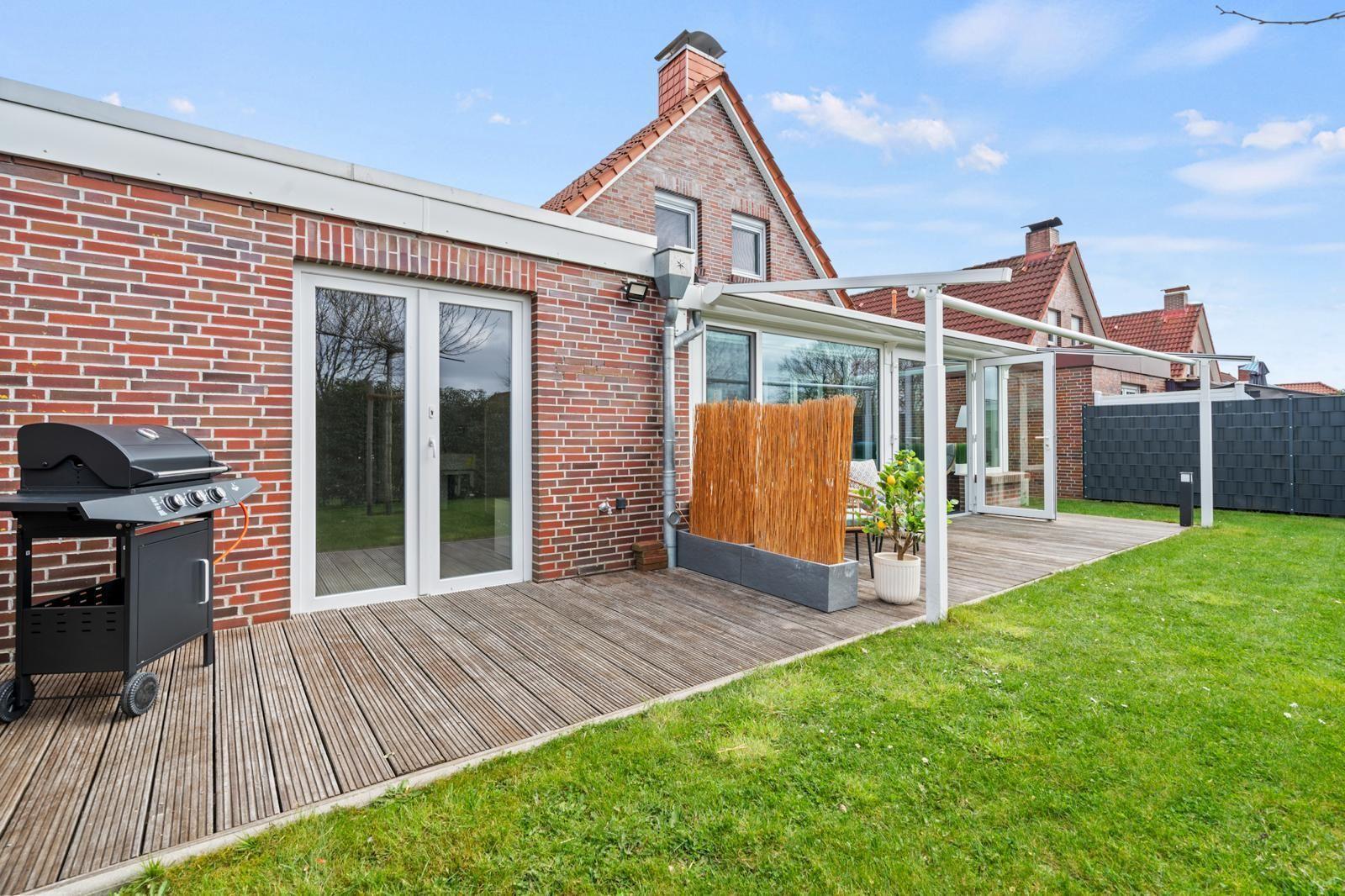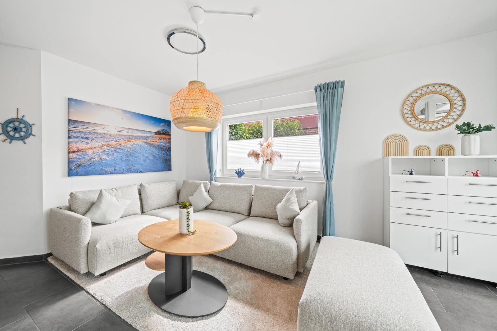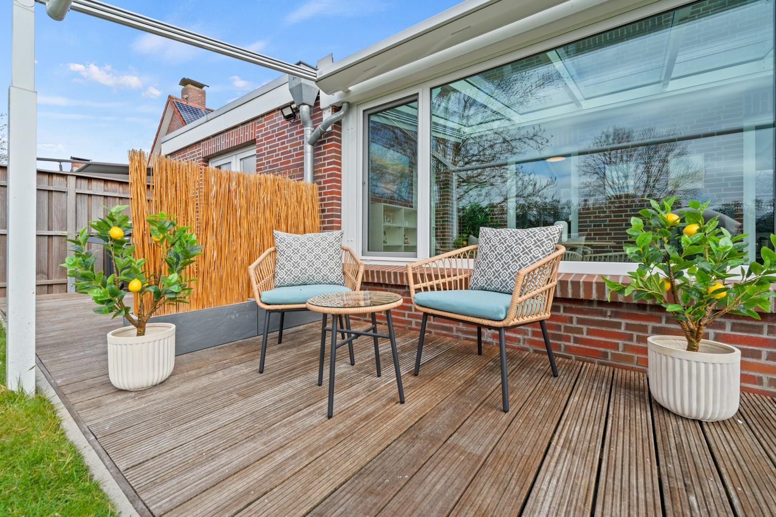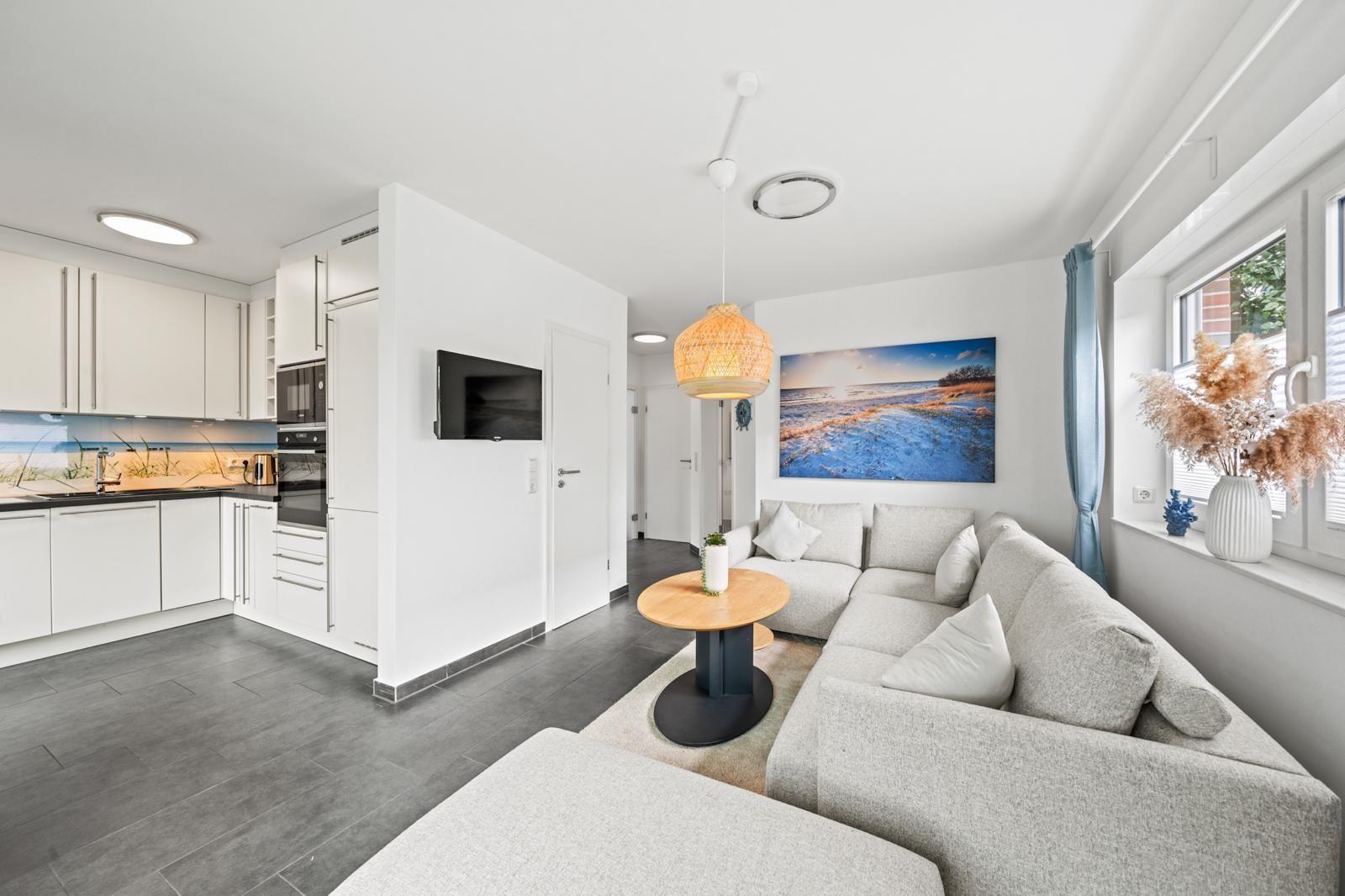 The interior of the 105 m² holiday home offers a modern yet cosy ambience. Two bedrooms and two bathrooms ensure plenty of privacy, while the well-equipped kitchen leaves nothing to be desired. A particular highlight is the cosy living area, which flows seamlessly into a conservatory and the adjoining terrace, creating an inviting space for relaxing and socialising.