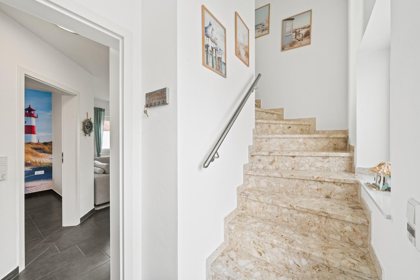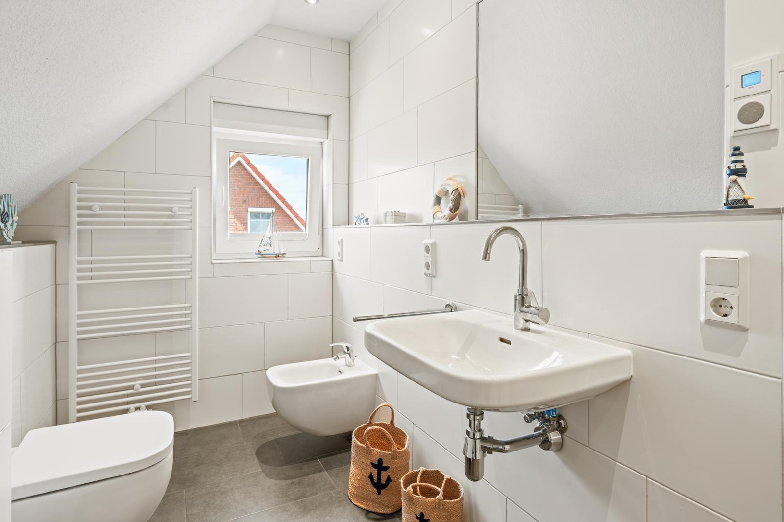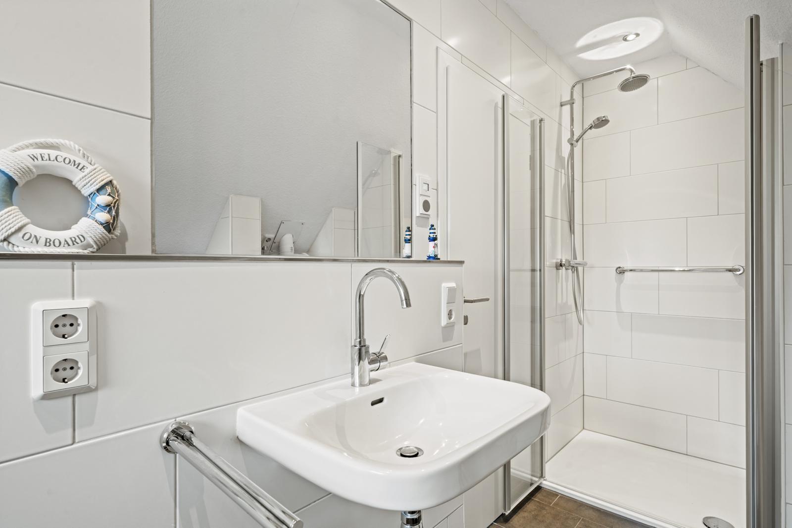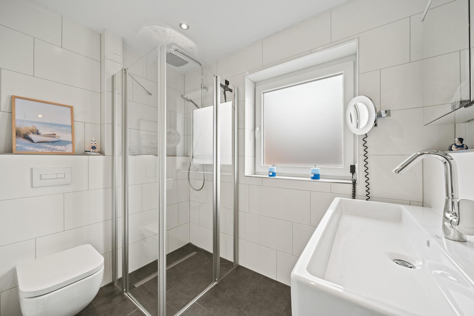 The interior of the 105 m² holiday home offers a modern yet cosy ambience. Two bedrooms and two bathrooms ensure plenty of privacy, while the well-equipped kitchen leaves nothing to be desired. A particular highlight is the cosy living area, which flows seamlessly into a conservatory and the adjoining terrace, creating an inviting space for relaxing and socialising.