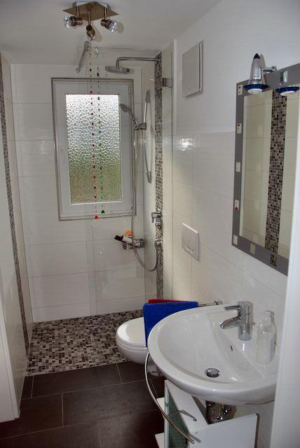Das Schlafzimmer ist mit einem Doppelbett (140x200cm, durchgehende Matratze) und das Badezimmer mit Fenster ist mit einer großzügigen, ebenerdigen Dusche, Waschtisch, WC und Föhn ausgestattet.