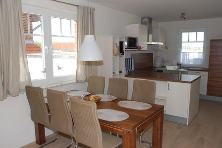Die integrierte Küche ist hochwertig und voll ausgestattet. Sie verfügen über alle technischen Geräte, die Sie für einen sorgenfreien Urlaub mit Selbstversorgung benötigen. dazu gehören z.B. ein Kühlschrank mit Gefrierfach, ein Geschirrspüler, eine Mikrowelle, ein Herd mit Backofen und diverse Kleingeräte, wie Kaffeemaschine, Wasserkocher und Toaster.