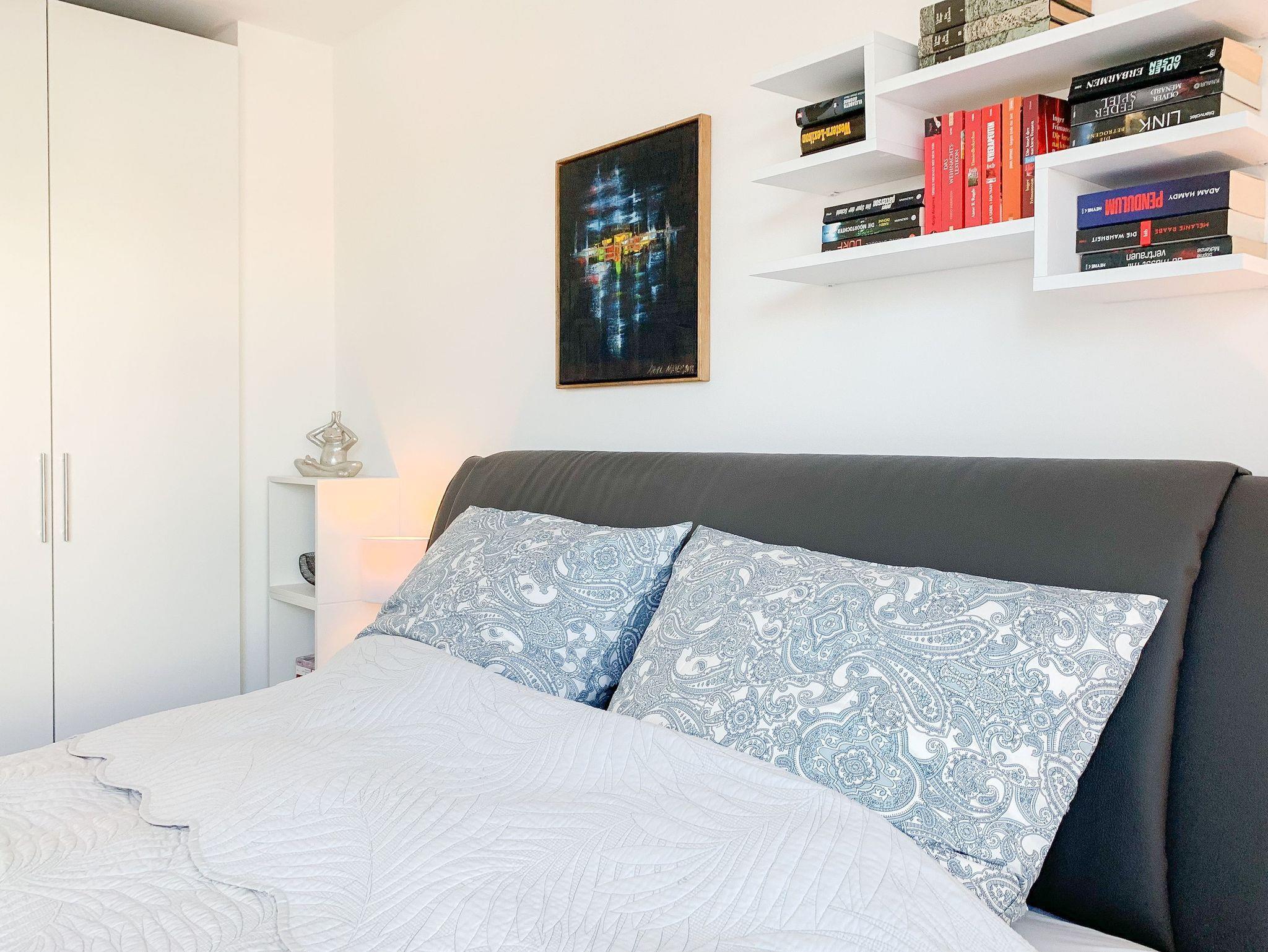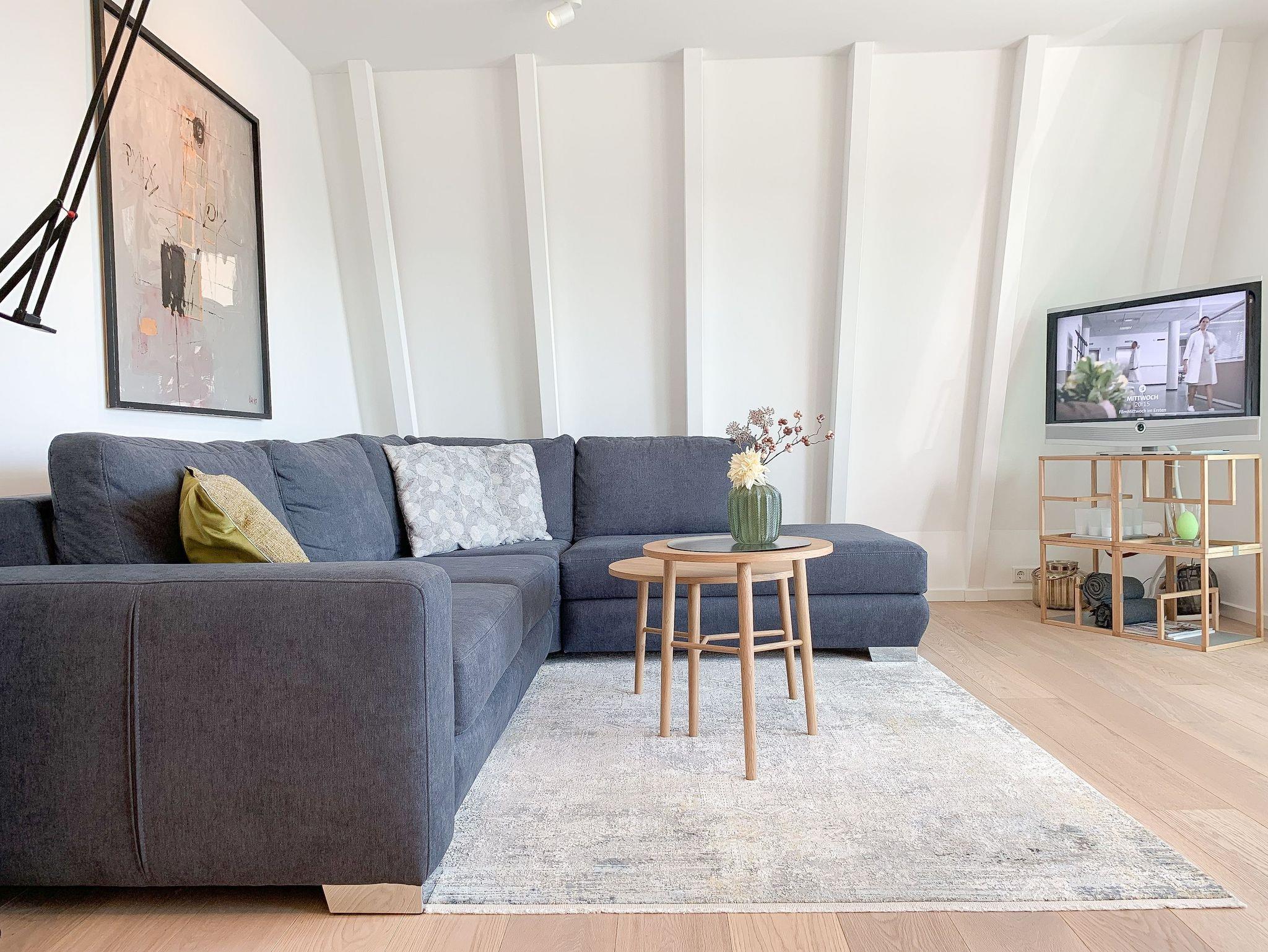 Durch das Zusammenspiel von Farben und hochwertigen Materialien mit viel Liebe zum Detail ist es gelungen eine wunderbare Atmosphäre zu schaffen. Echtholzparkett und Fußbodenheizung sorgen für ein angenehmes Raumklima und große Fensterflächen, alle mit elektrischen Außenjalousien versehen, für lichtdurchflutete Räumlichkeiten. Es erwartet Sie ein kombinierter Wohn- Essbereich mit hochwertigem Schlafsofa und integrierter Einbauküche. Der großzügige Südbalkon ist mit exklusiven Garten- und Loungemöbeln ausgestattet und mit einem Deckenheizstrahler versehen, um den Außenbereich auch an kühleren Abenden nutzen zu können. Vor dem Schlafzimmer, ausgestattet mit einem Boxspringdoppelbett und TV, befindet sich ein weiterer Balkon, um die Morgensonne bei einer Tasse Café zu genießen. Das Bad ist luxuriös und verfügt über eine großzügig angelegte Walk In Dusche.